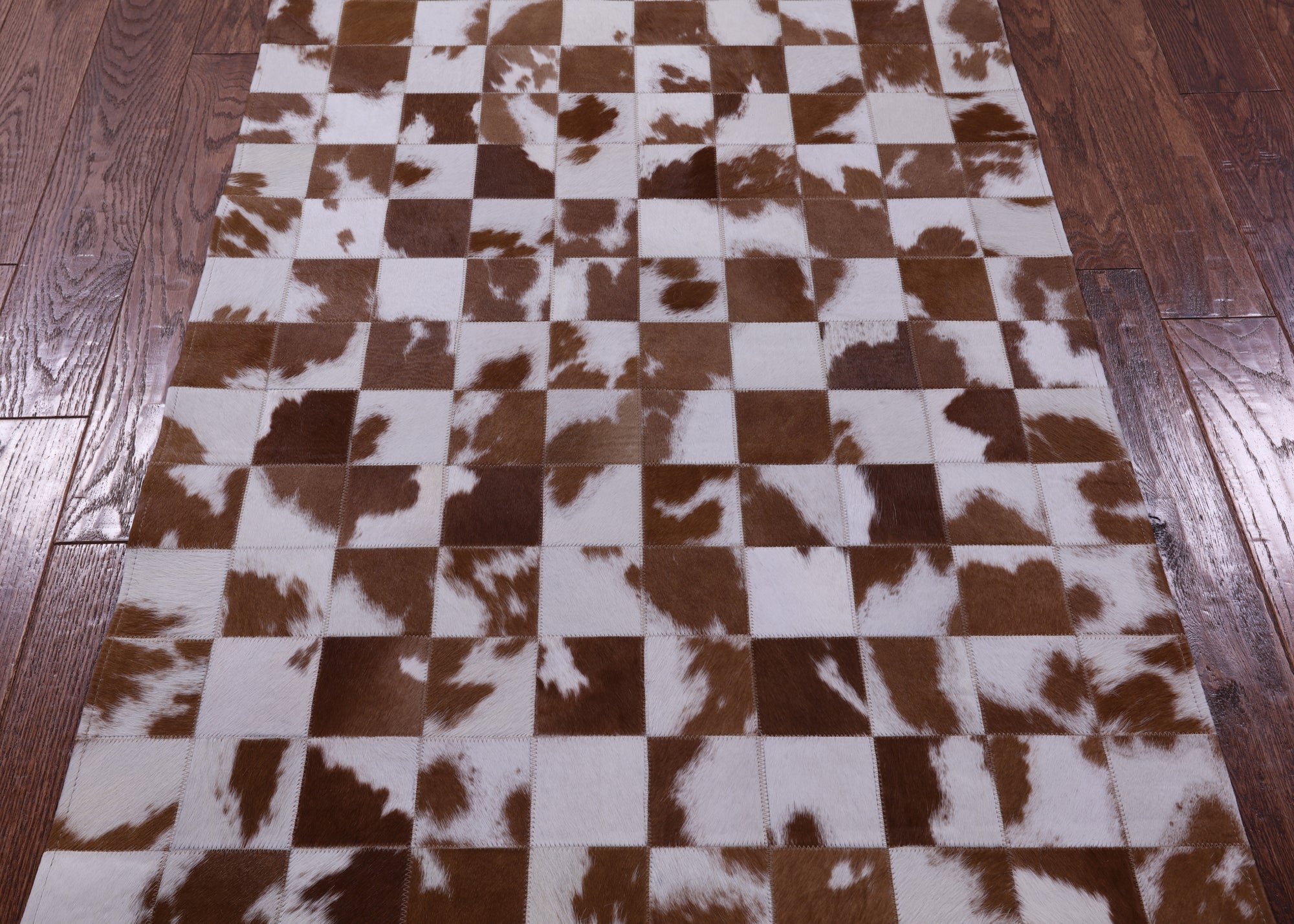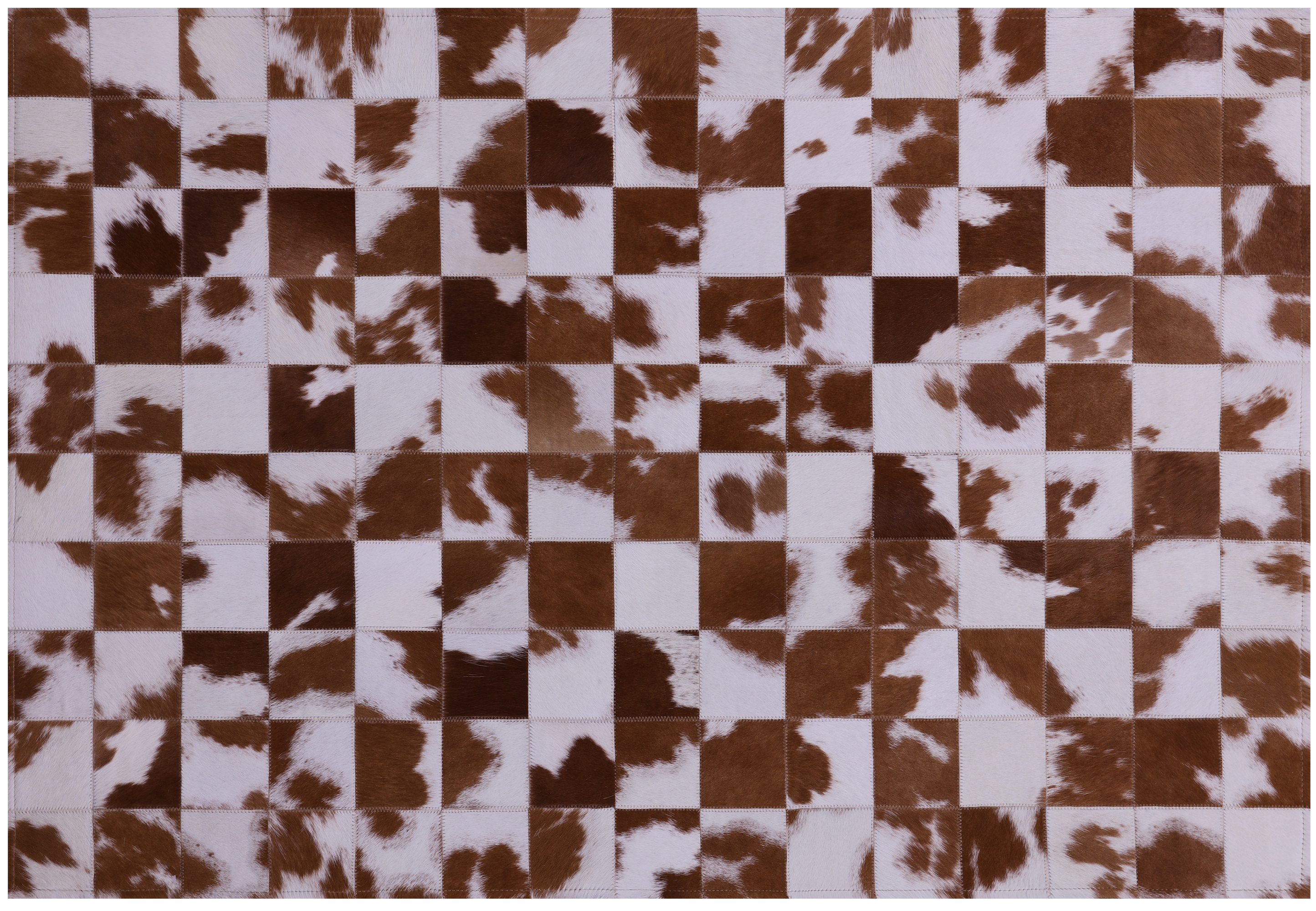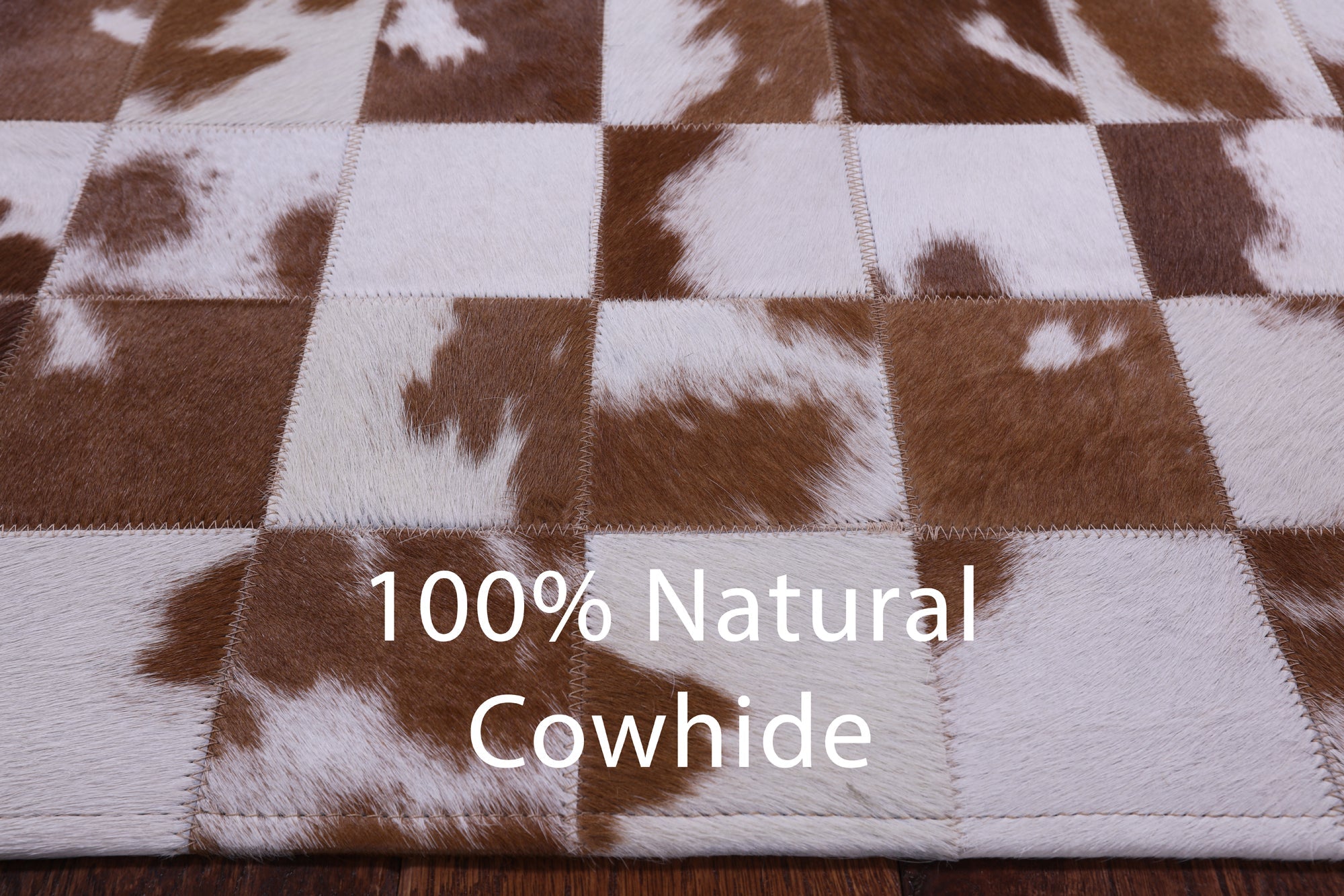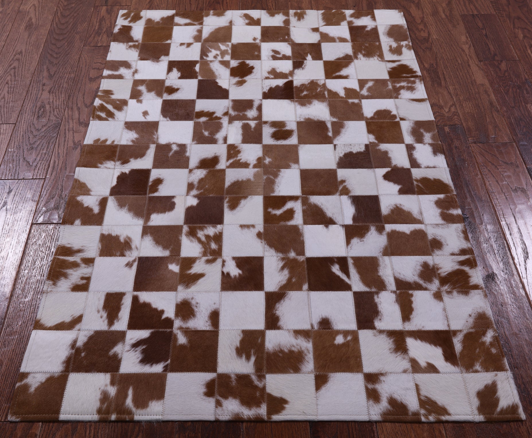 3' 3" X 4' 10" Brown & White Natural Cowhide Hand Stitched Rug - C3399 is backordered and will ship as soon as it is back in stock.
