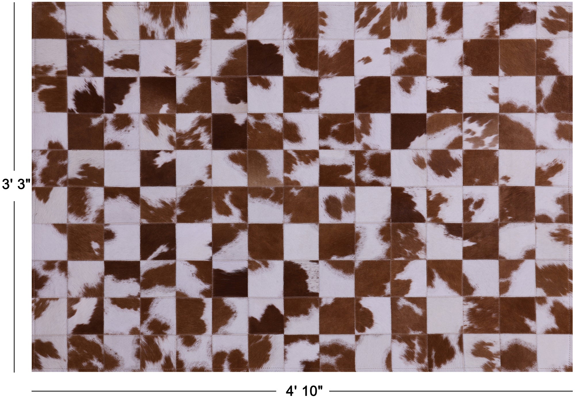 3' 3" X 4' 10" Brown & White Natural Cowhide Hand Stitched Rug - C3399