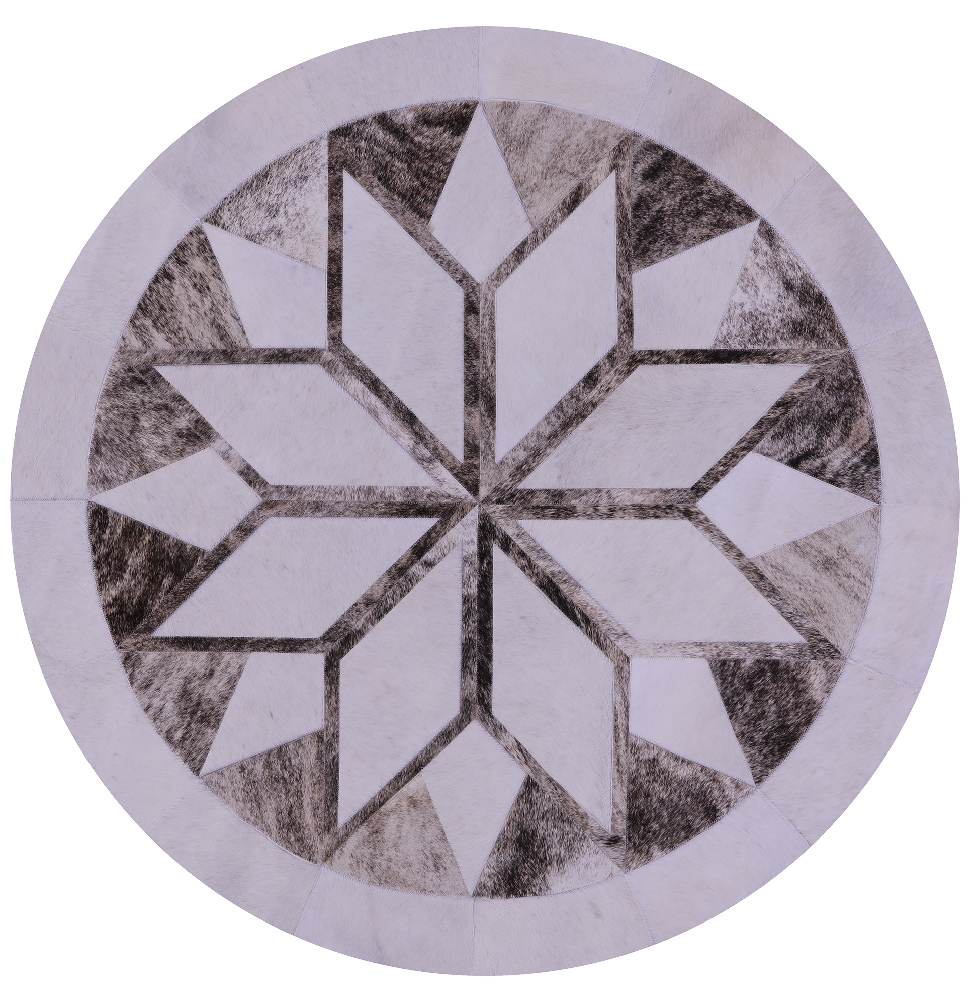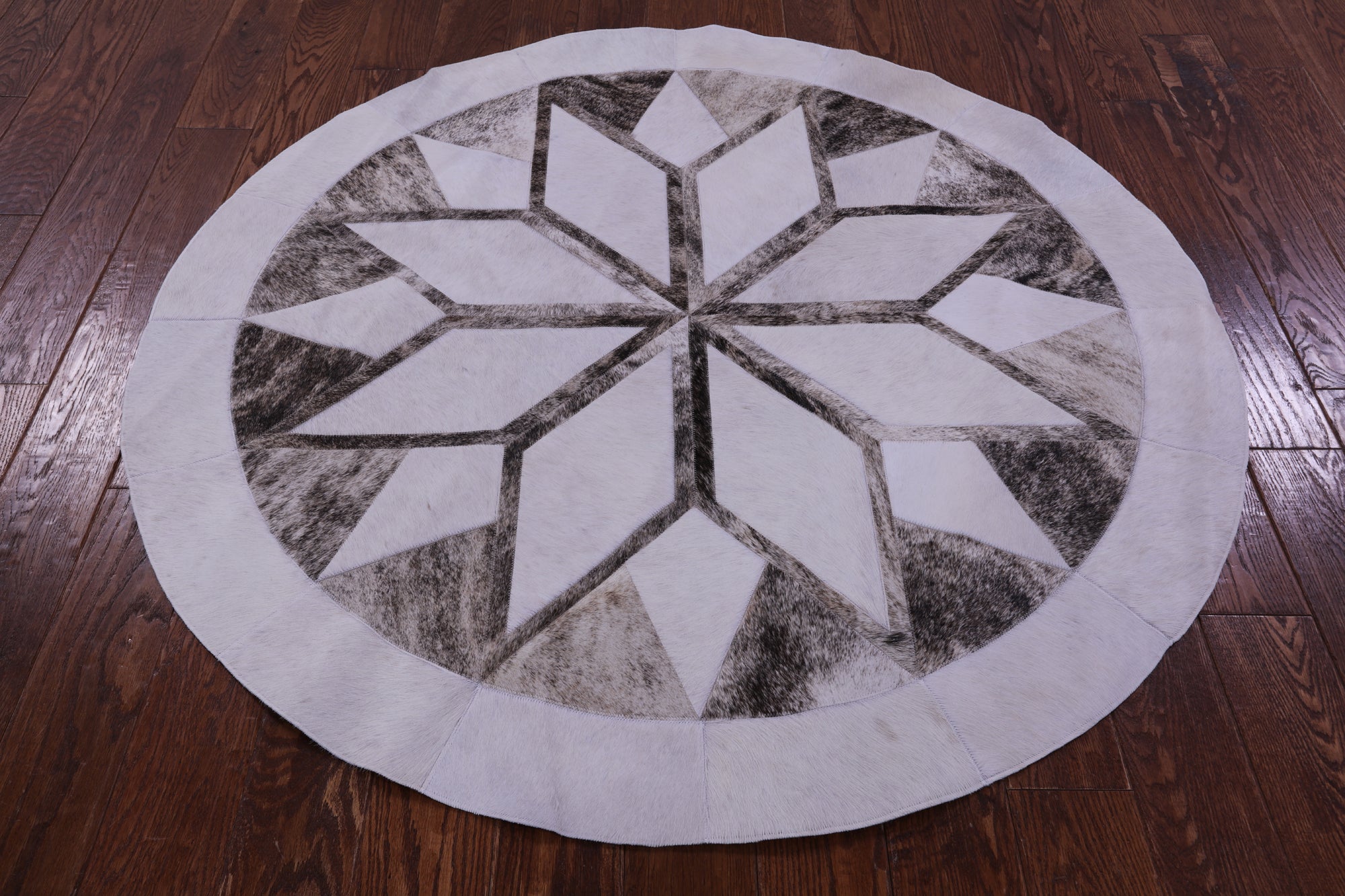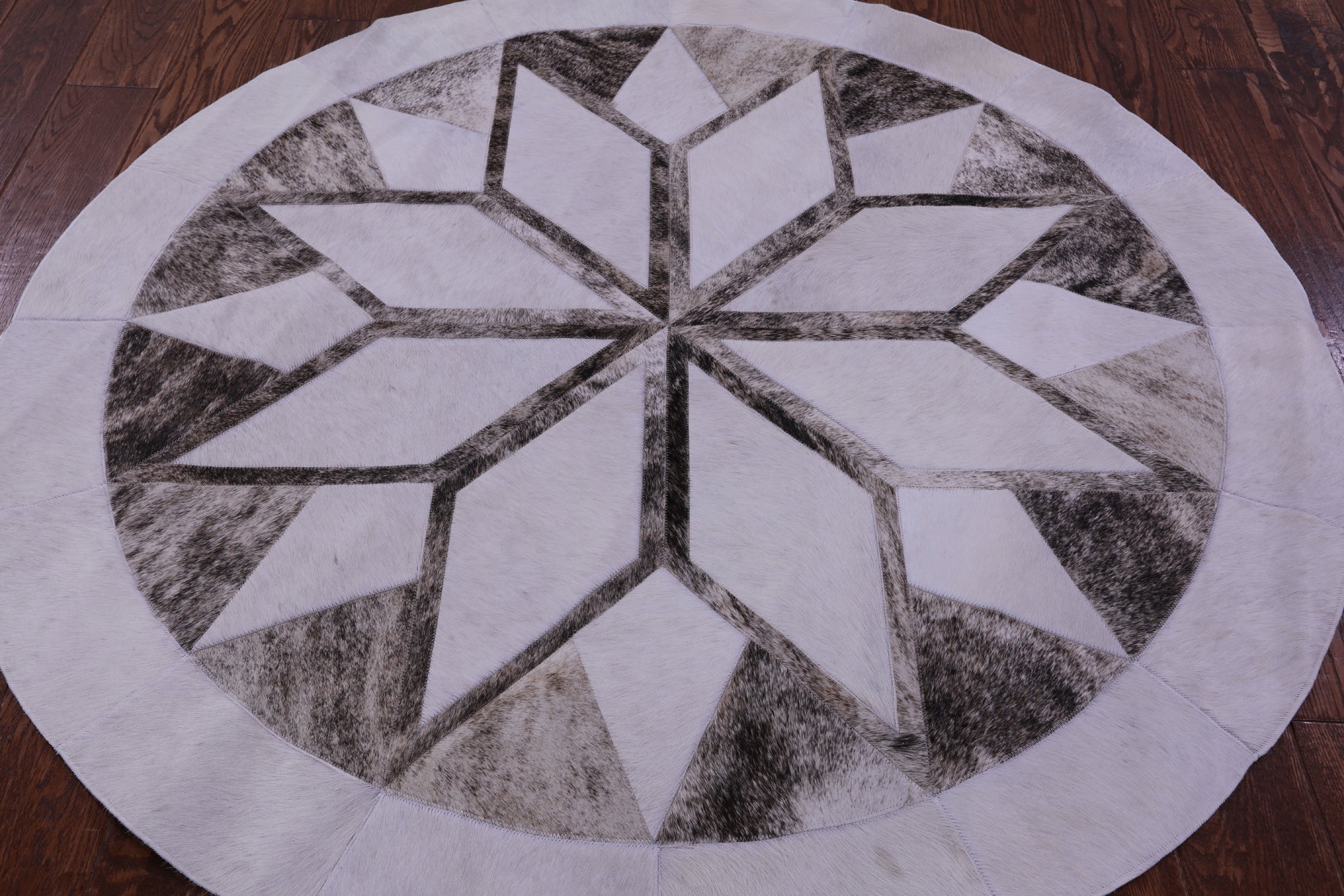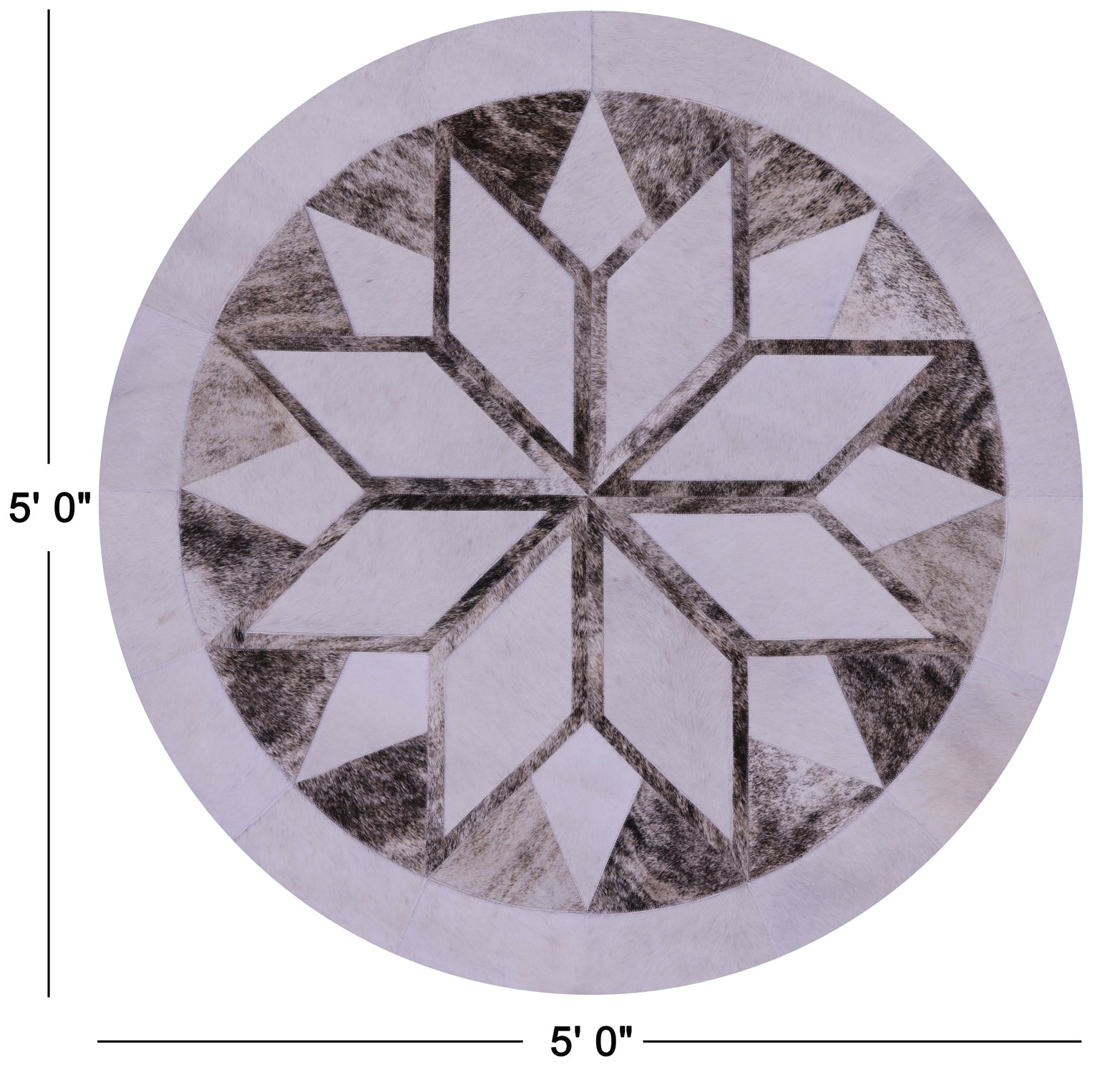 5' 0" X 5' 0" Brown & White Round Natural Cowhide Hand Stitched Rug - C3536