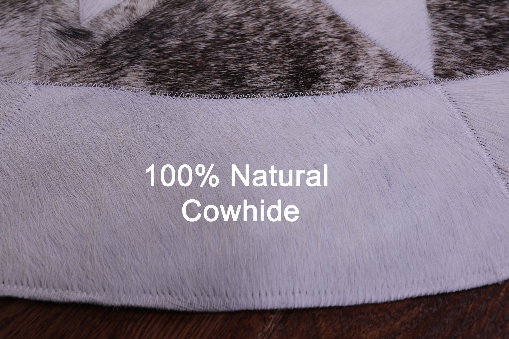 5' 0" X 5' 0" Brown & White Round Natural Cowhide Hand Stitched Rug - C3536 is backordered and will ship as soon as it is back in stock.