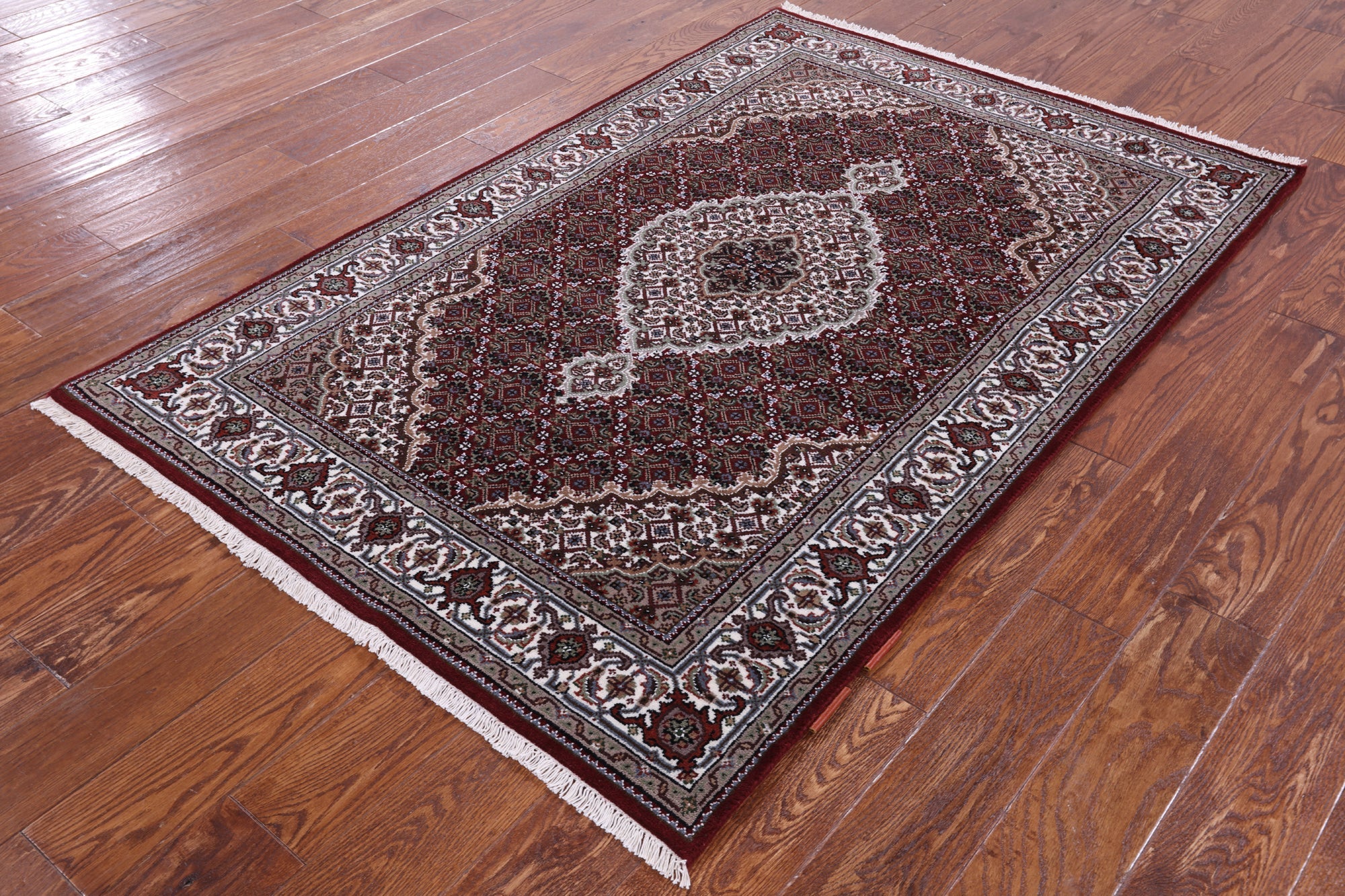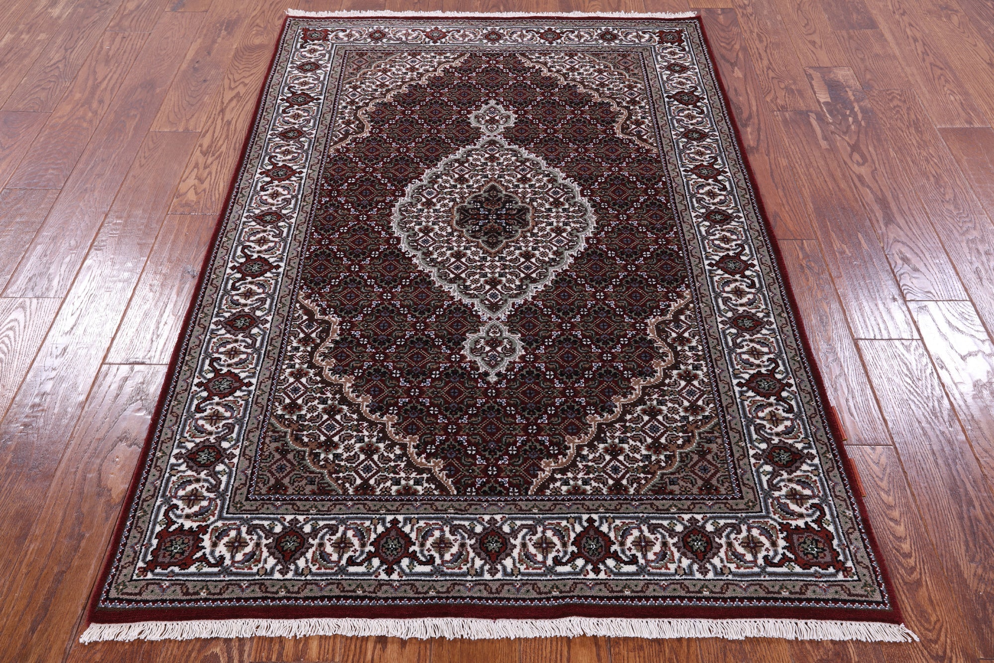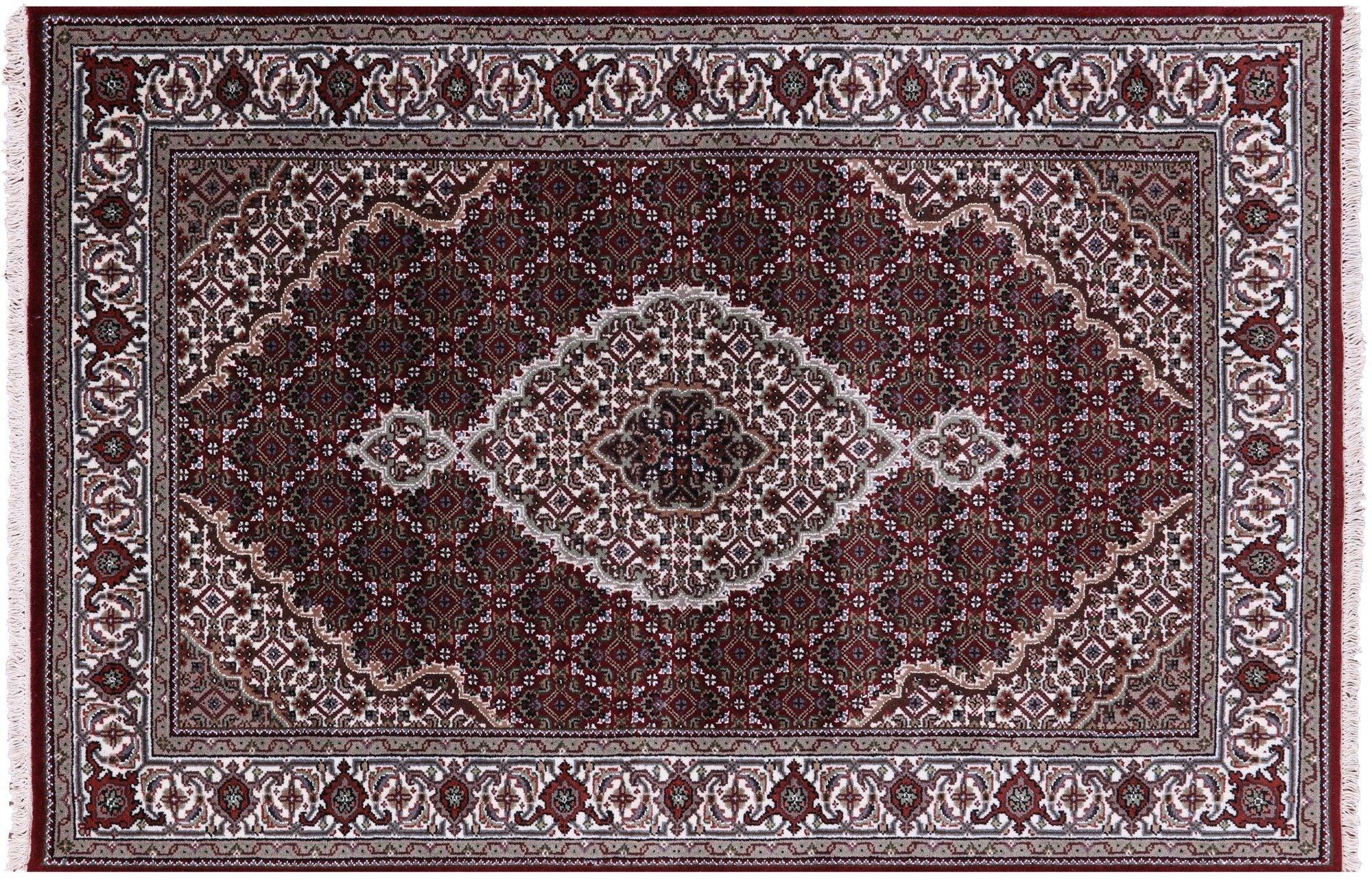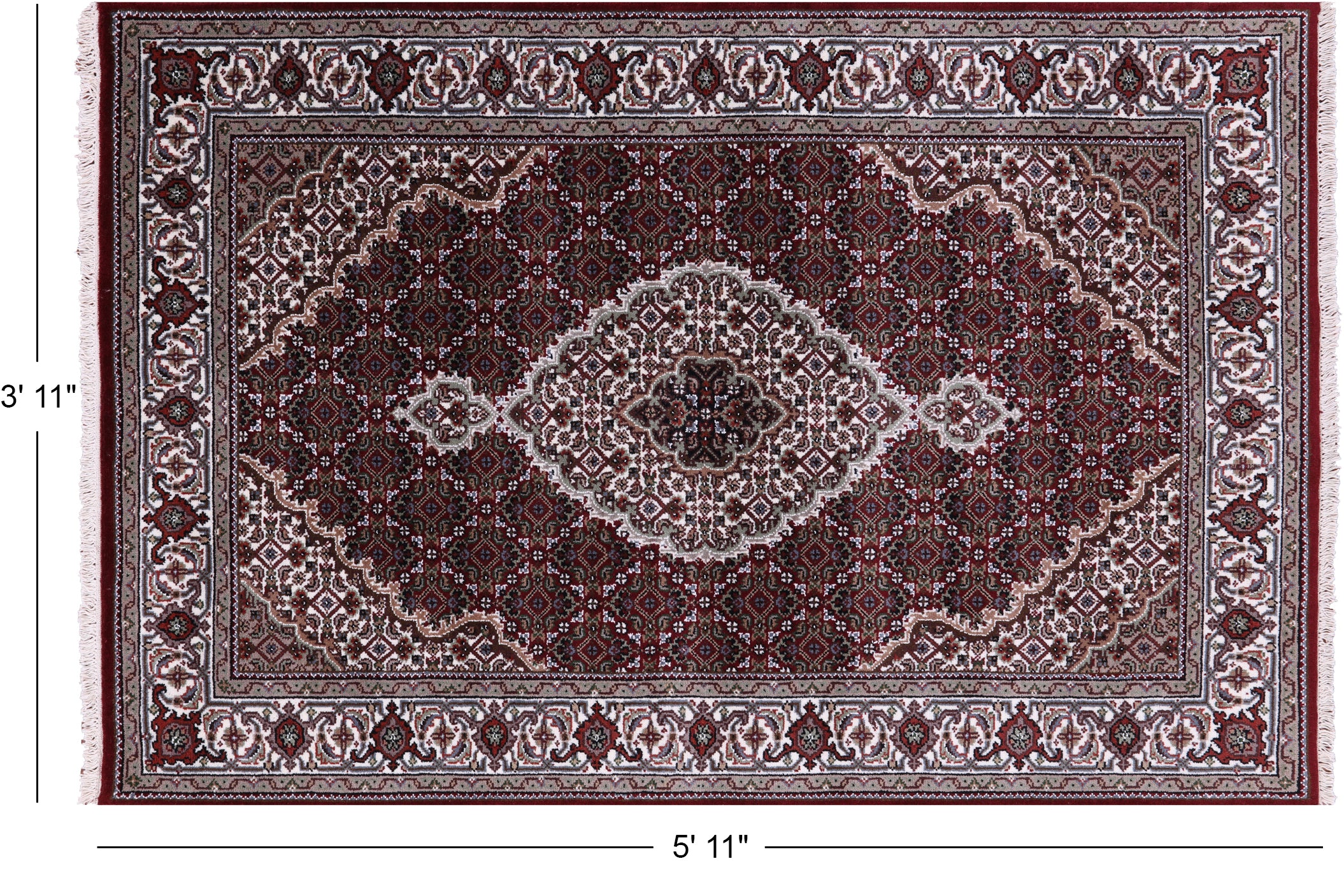 Burgundy Wool & Silk Persian Tabriz Handmade Rug 3' 11" X 5' 11" - Q8932