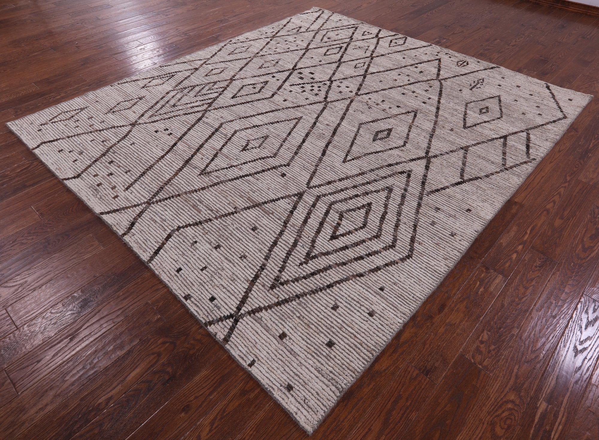 Clearance 8' 5" X 9' 7" Moroccan Hand Knotted Wool On Wool Rug - Q16171