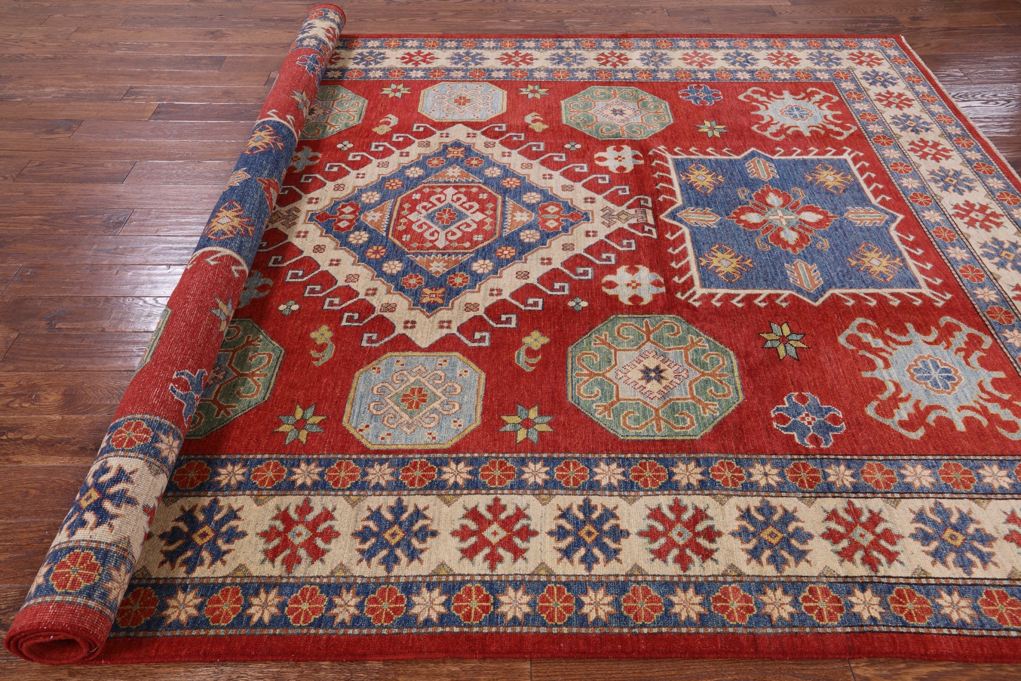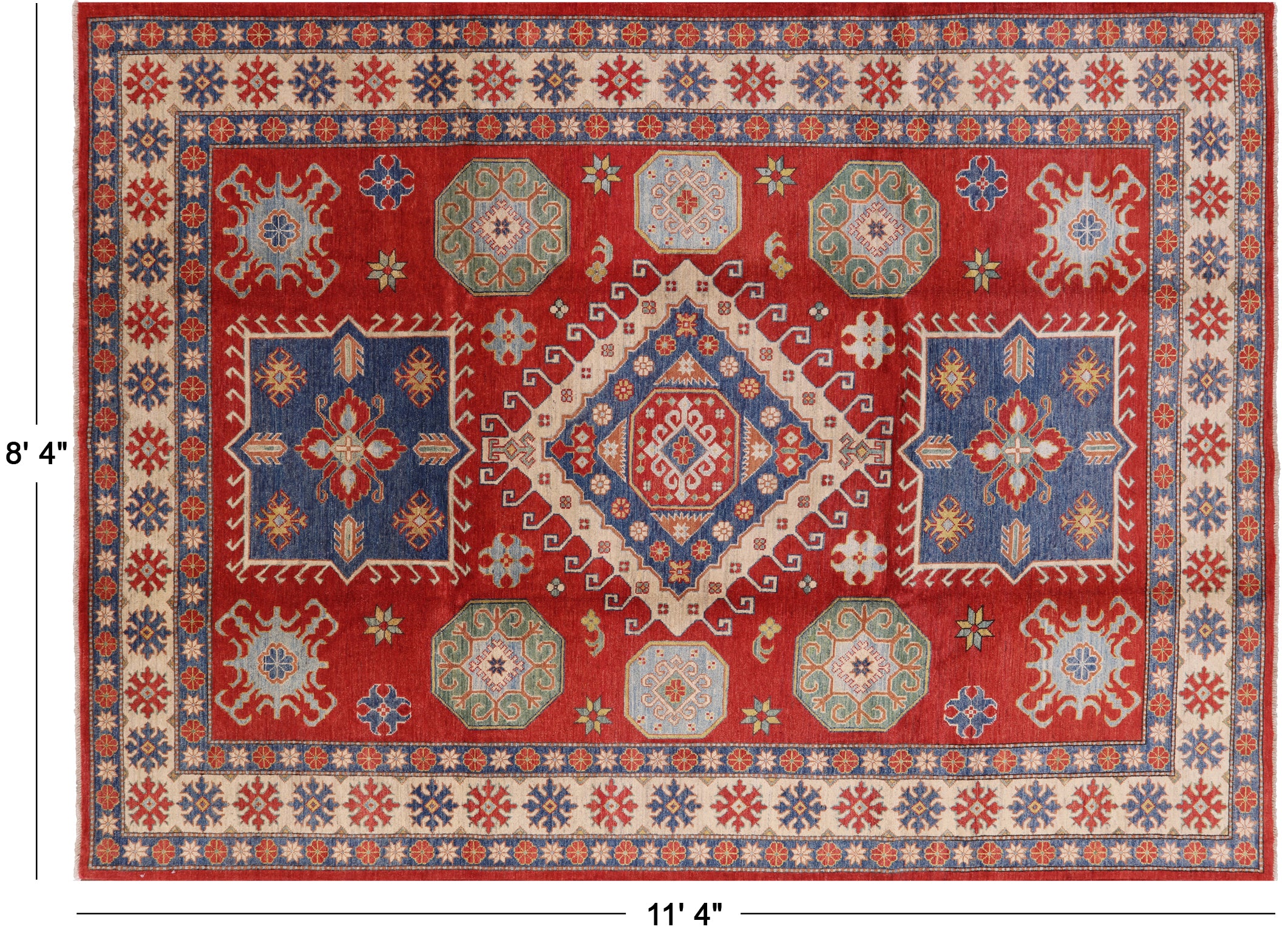 Clearance Red 8' 4" X 11' 4" Hand-Knotted Kazak Area Rug - H7397