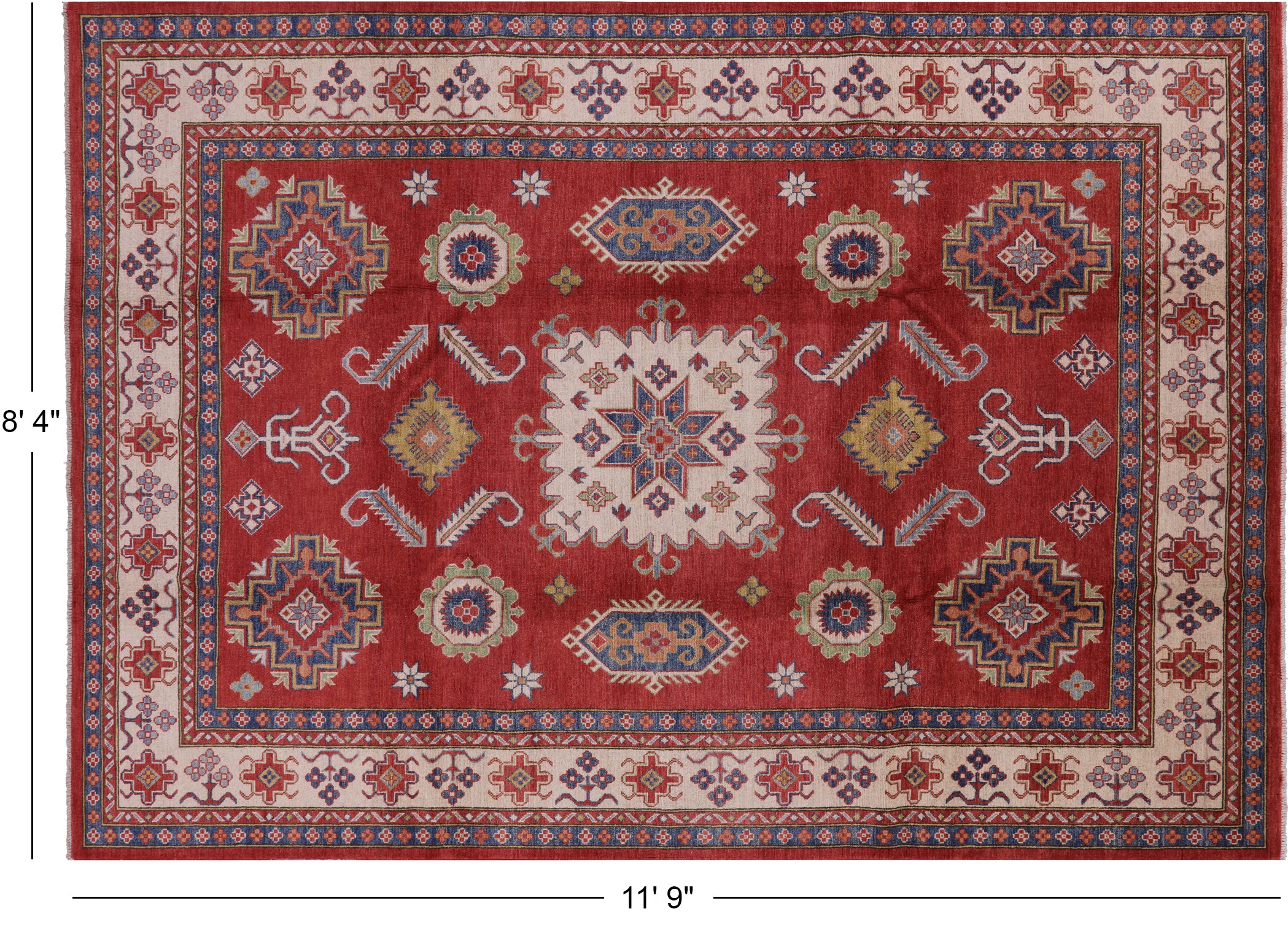 Clearance Red Kazak Hand-Knotted Wool Rug 8' 4" X 11' 9" - P5738