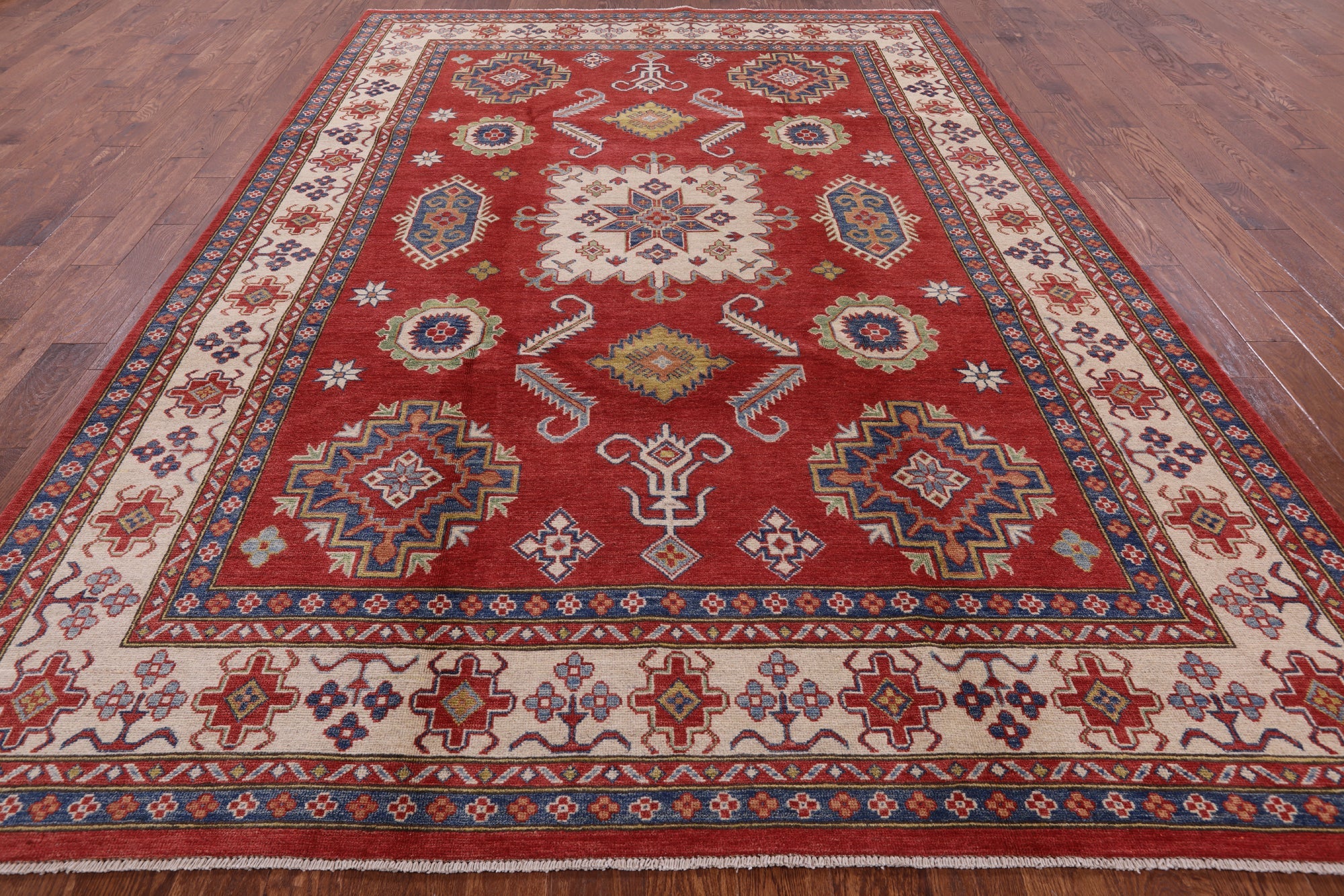Clearance Red Kazak Hand-Knotted Wool Rug 8' 4" X 11' 9" - P5738 is backordered and will ship as soon as it is back in stock.