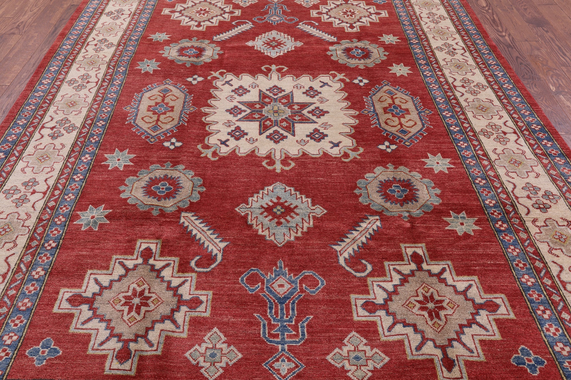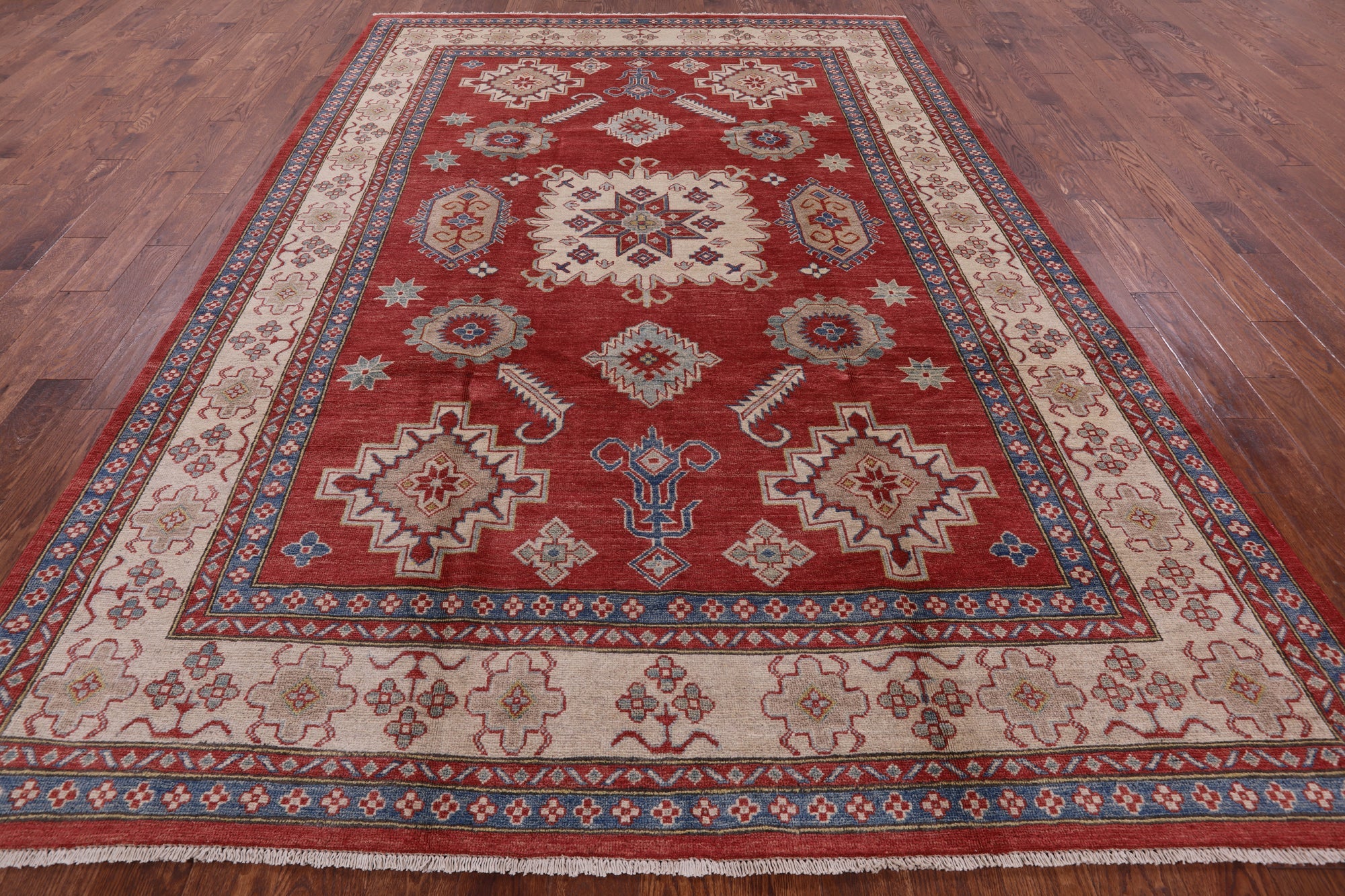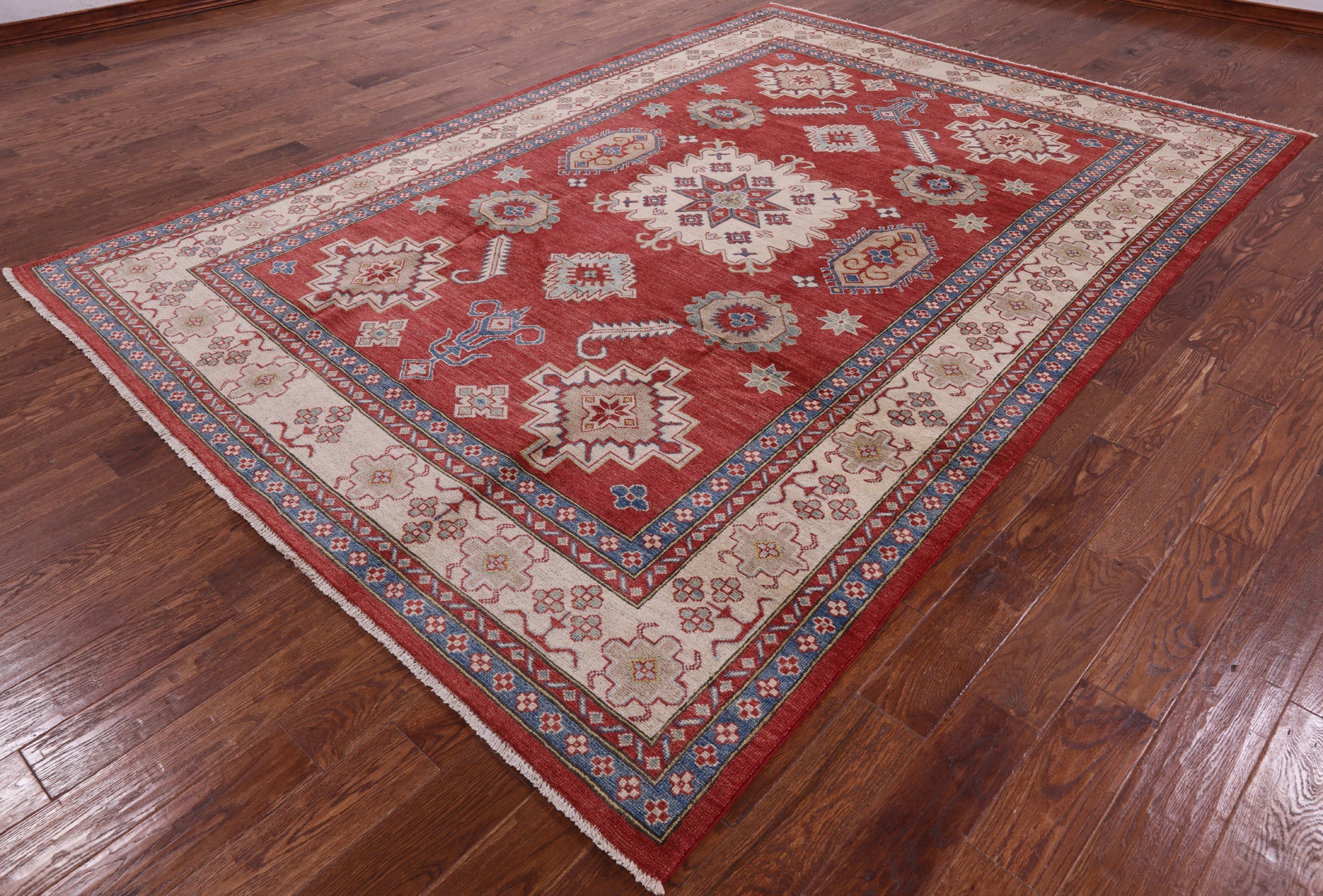 Clearance Red 7' 10" X 11' 3" Kazak Hand Knotted Wool Rug - P5931 is backordered and will ship as soon as it is back in stock.