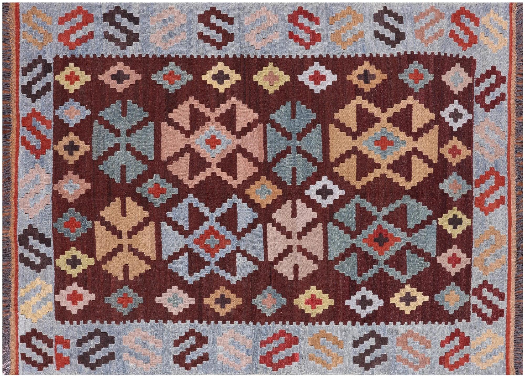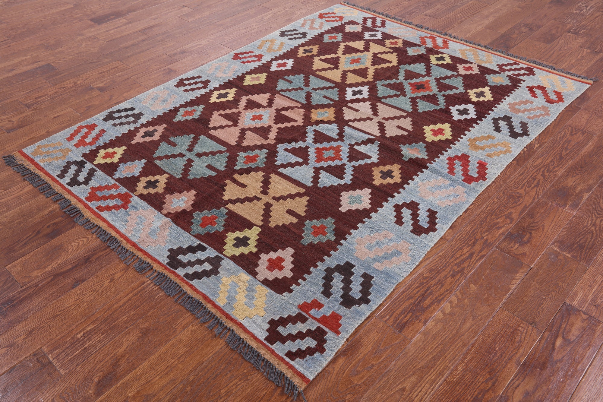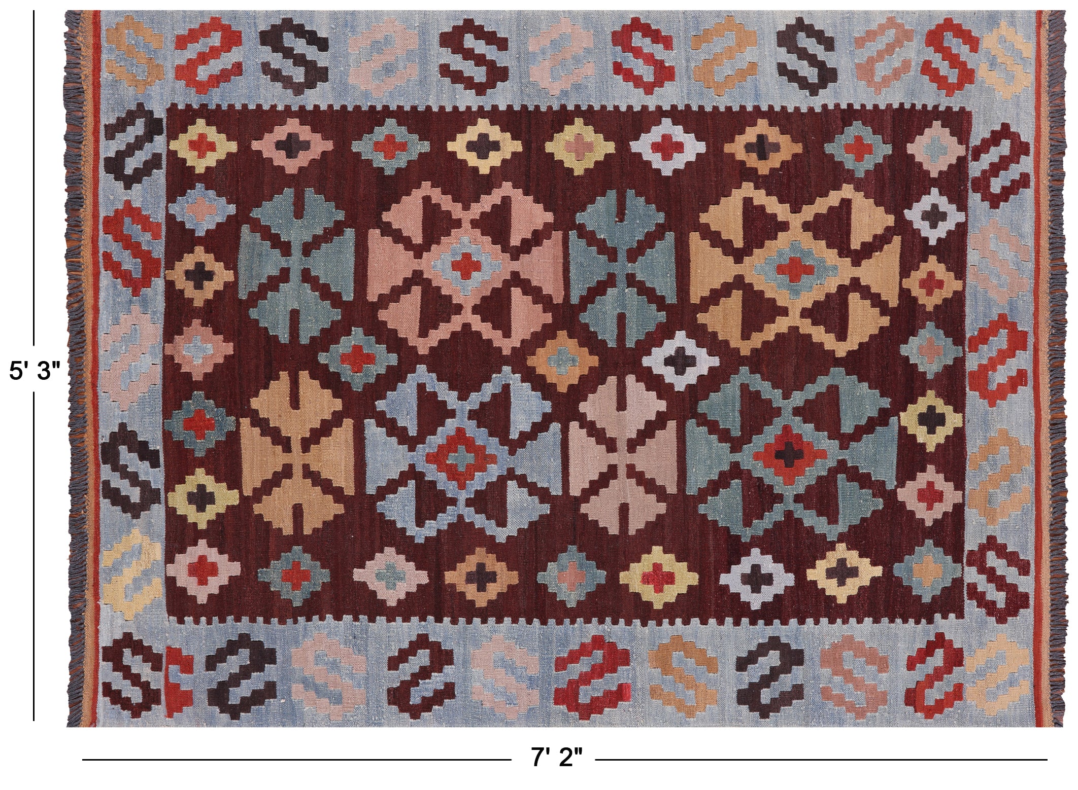 5' 3" X 7' 2" Flat Weave Kilim Wool on Wool Rug - P179
