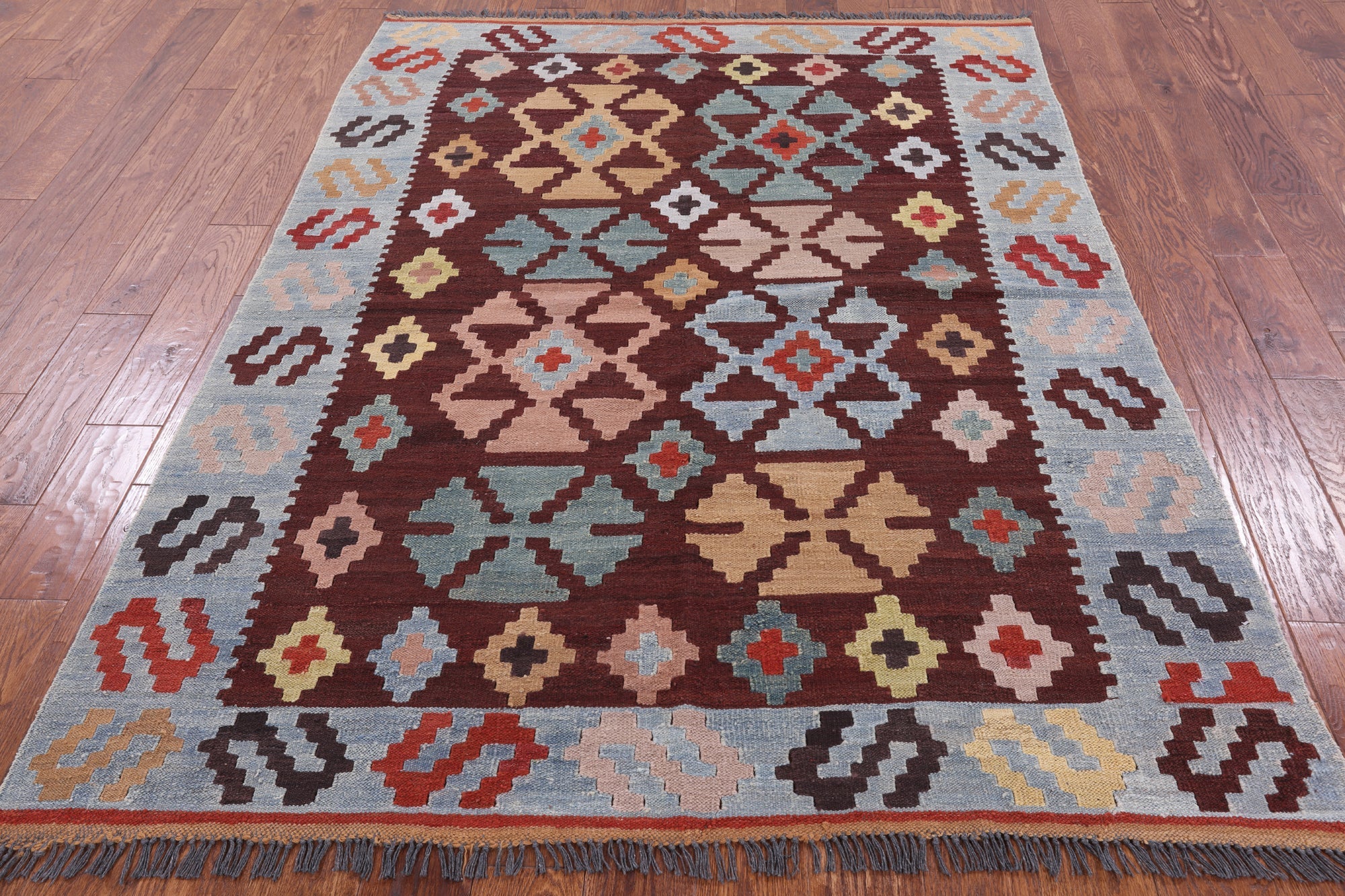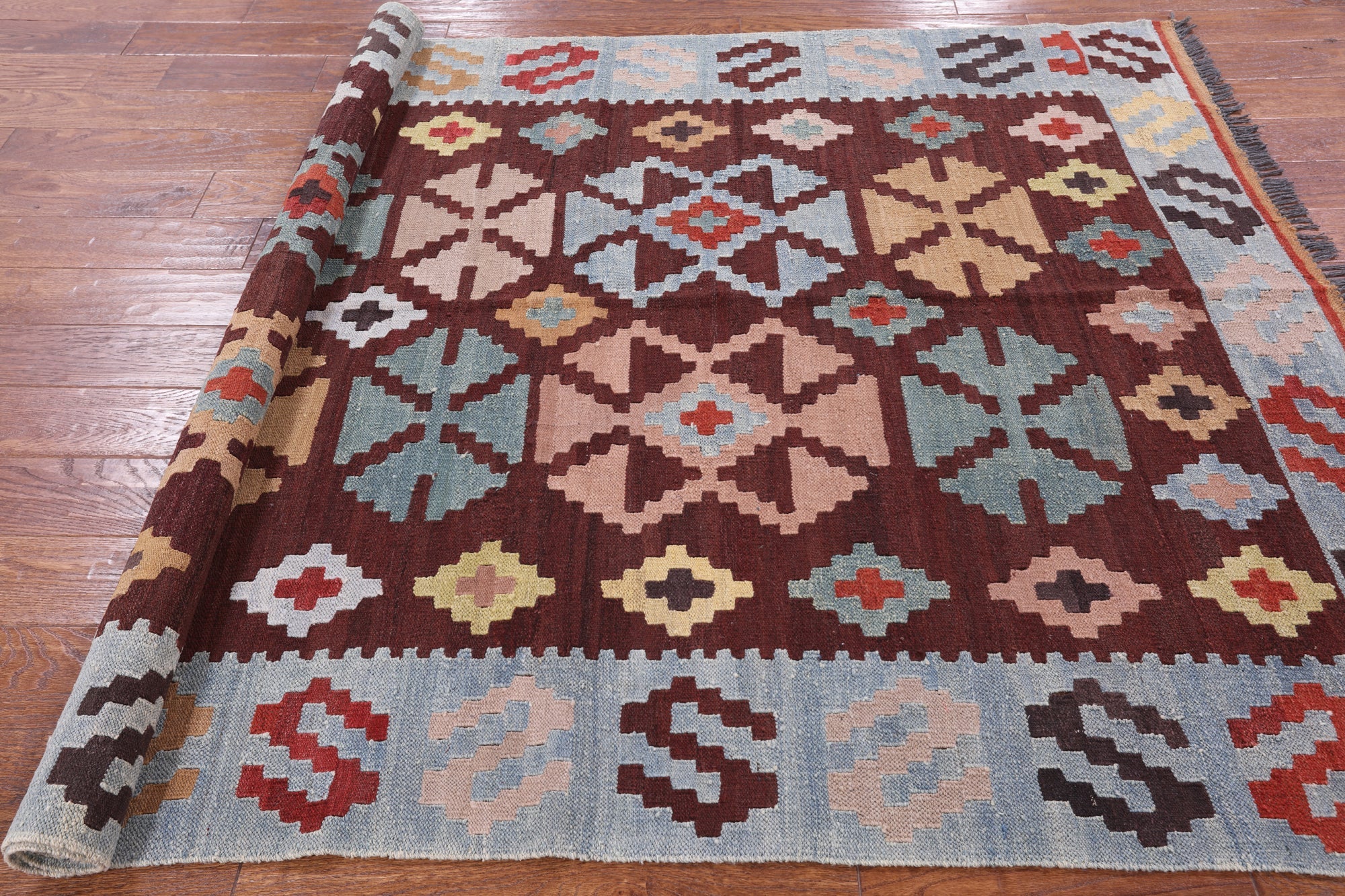 5' 3" X 7' 2" Flat Weave Kilim Wool on Wool Rug - P179 is backordered and will ship as soon as it is back in stock.