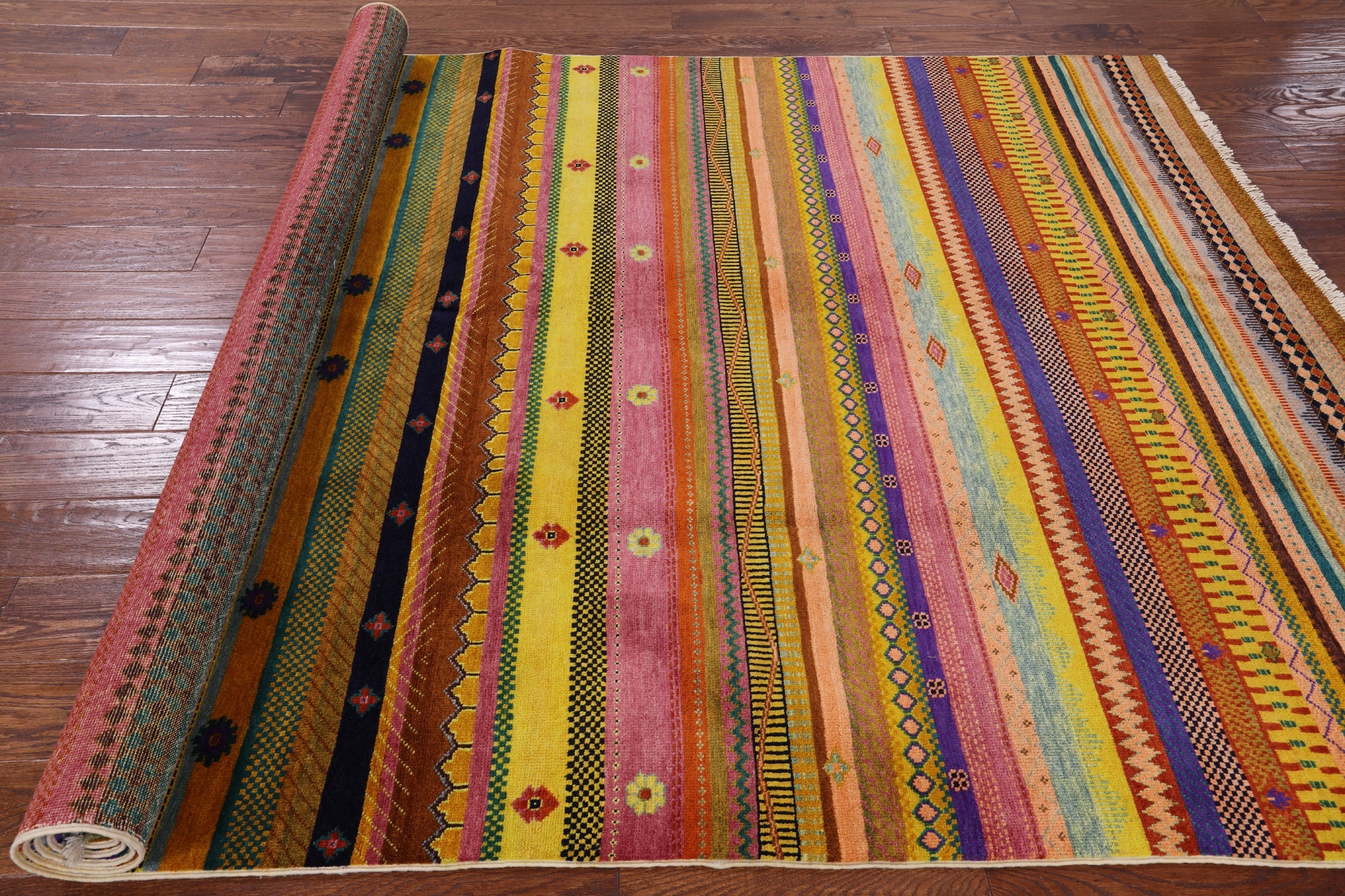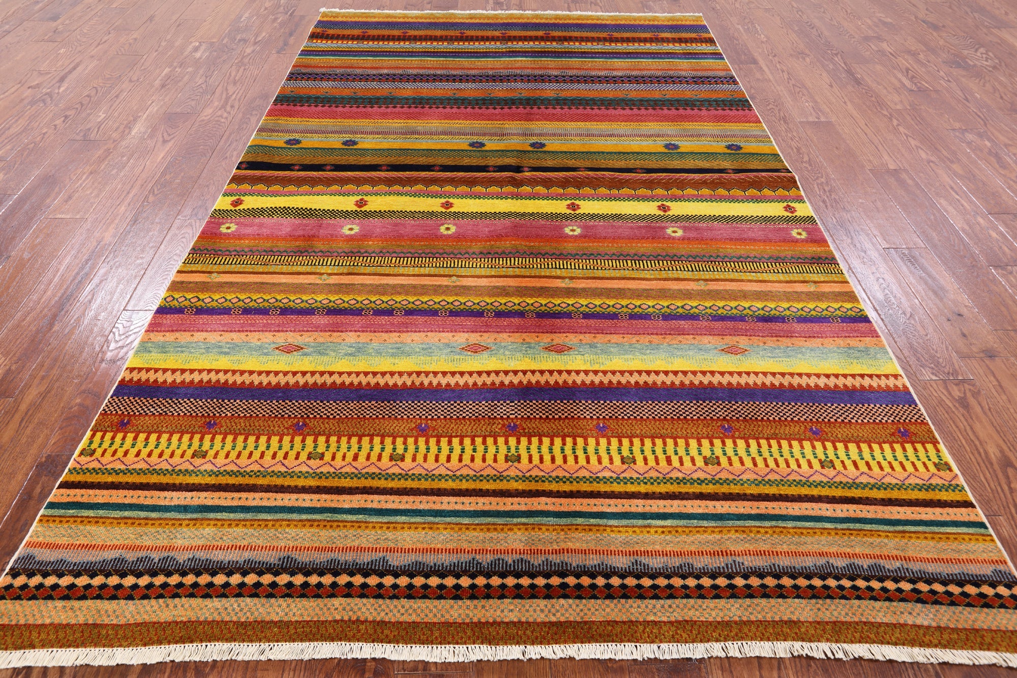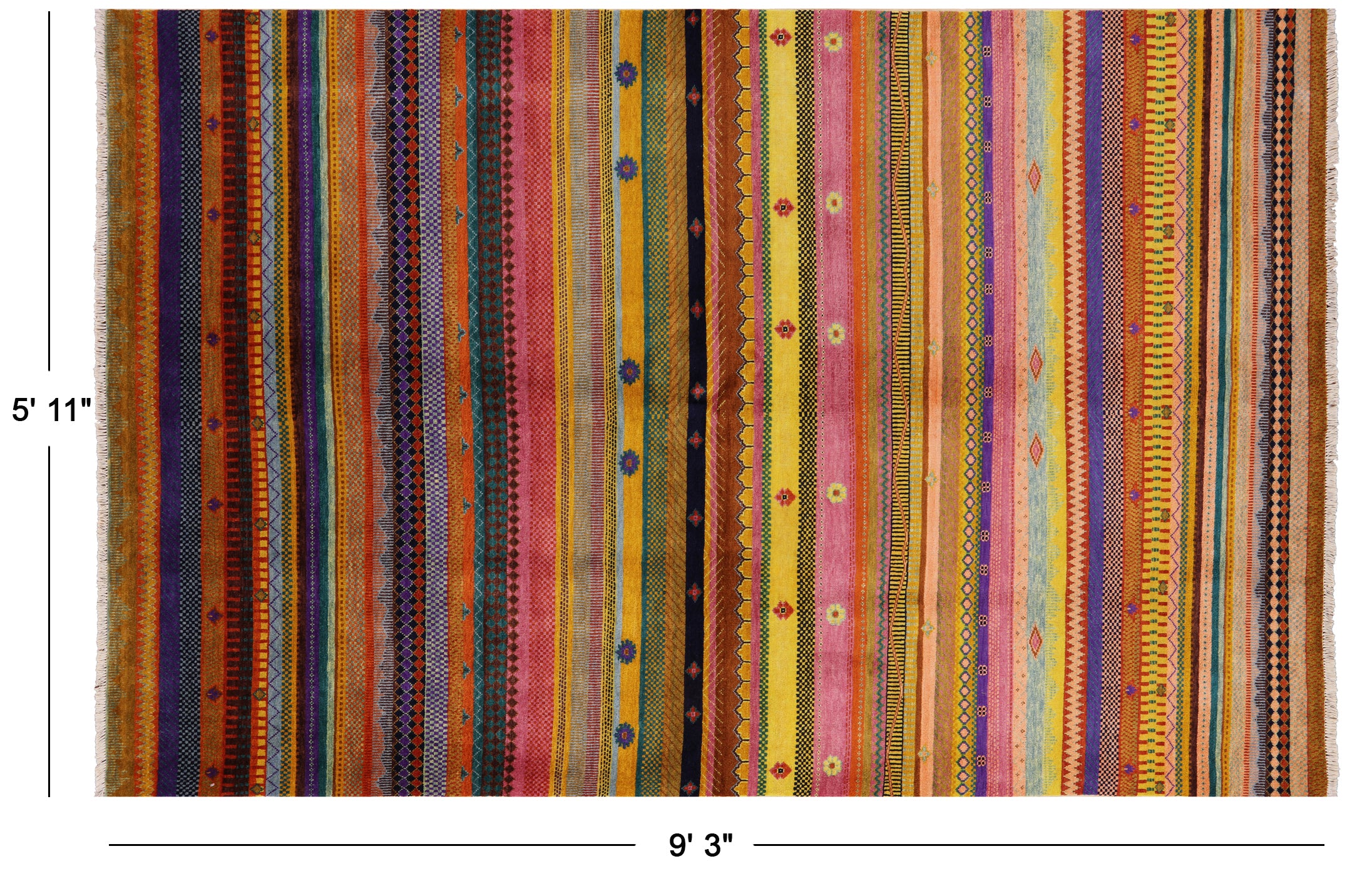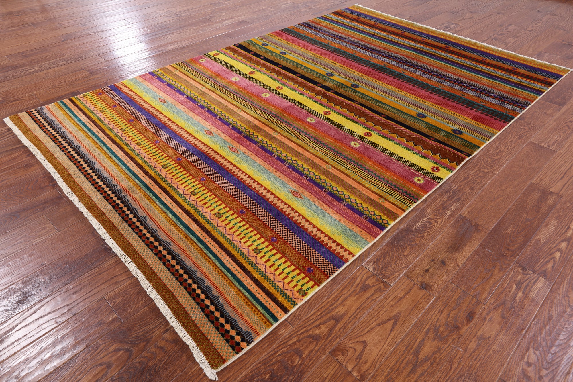 5' 11" X 9' 3" Gabbeh Loribaft Hand Knotted Wool Rug - P7413 is backordered and will ship as soon as it is back in stock.