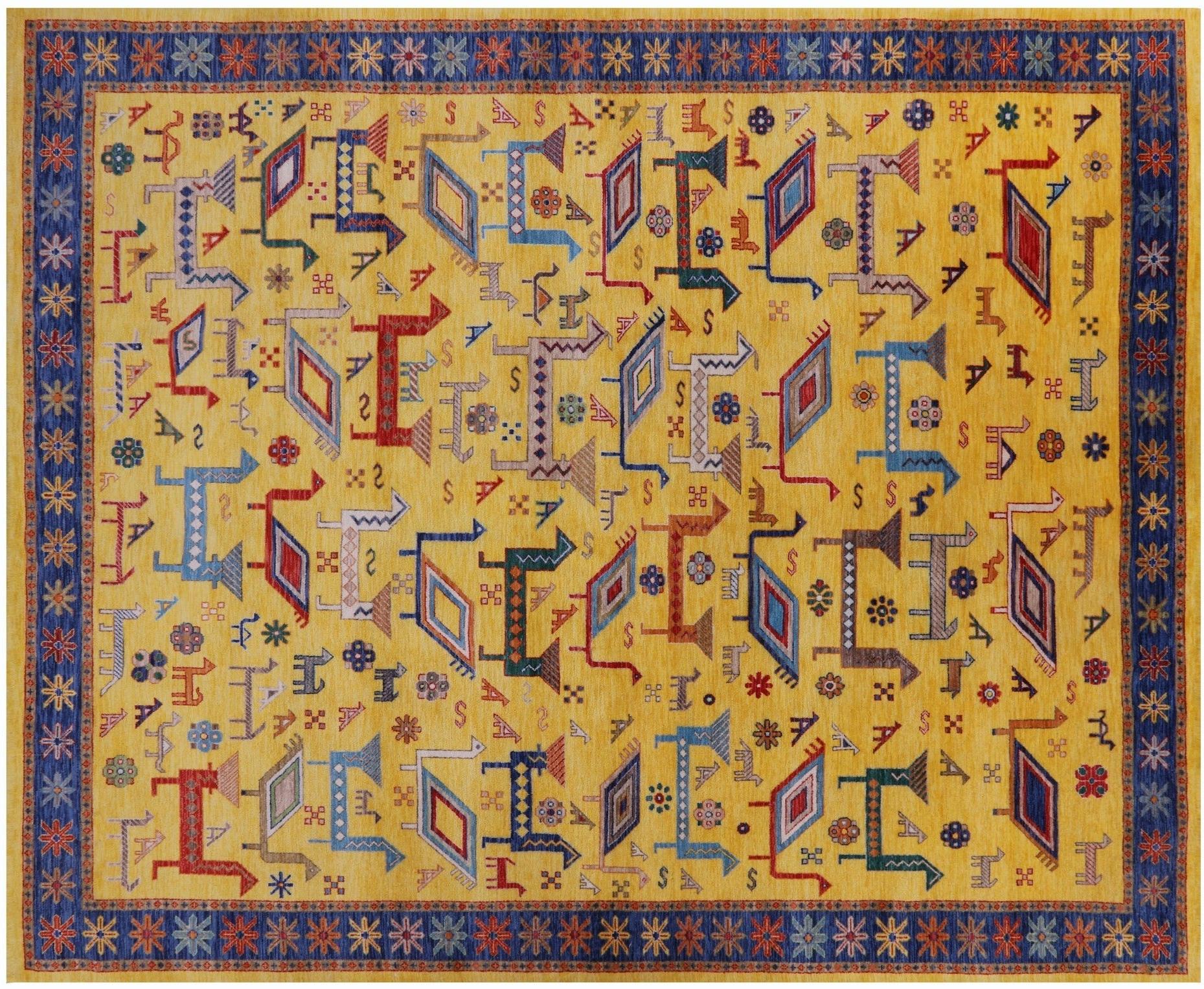 Gold 8' 1" X 9' 11" Persian Gabbeh Tribal Handmade Wool Rug - Q20086