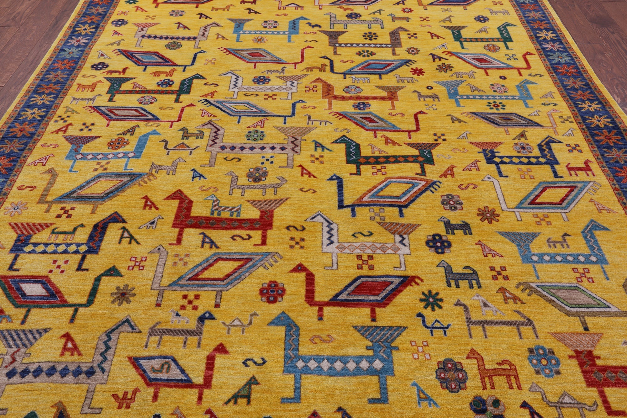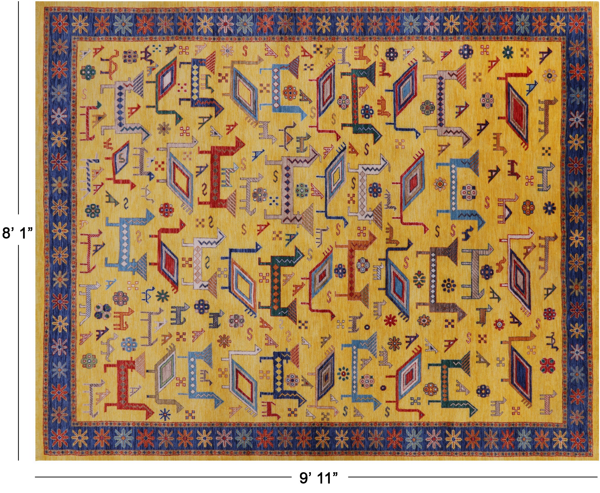 Gold 8' 1" X 9' 11" Persian Gabbeh Tribal Handmade Wool Rug - Q20086 is backordered and will ship as soon as it is back in stock.