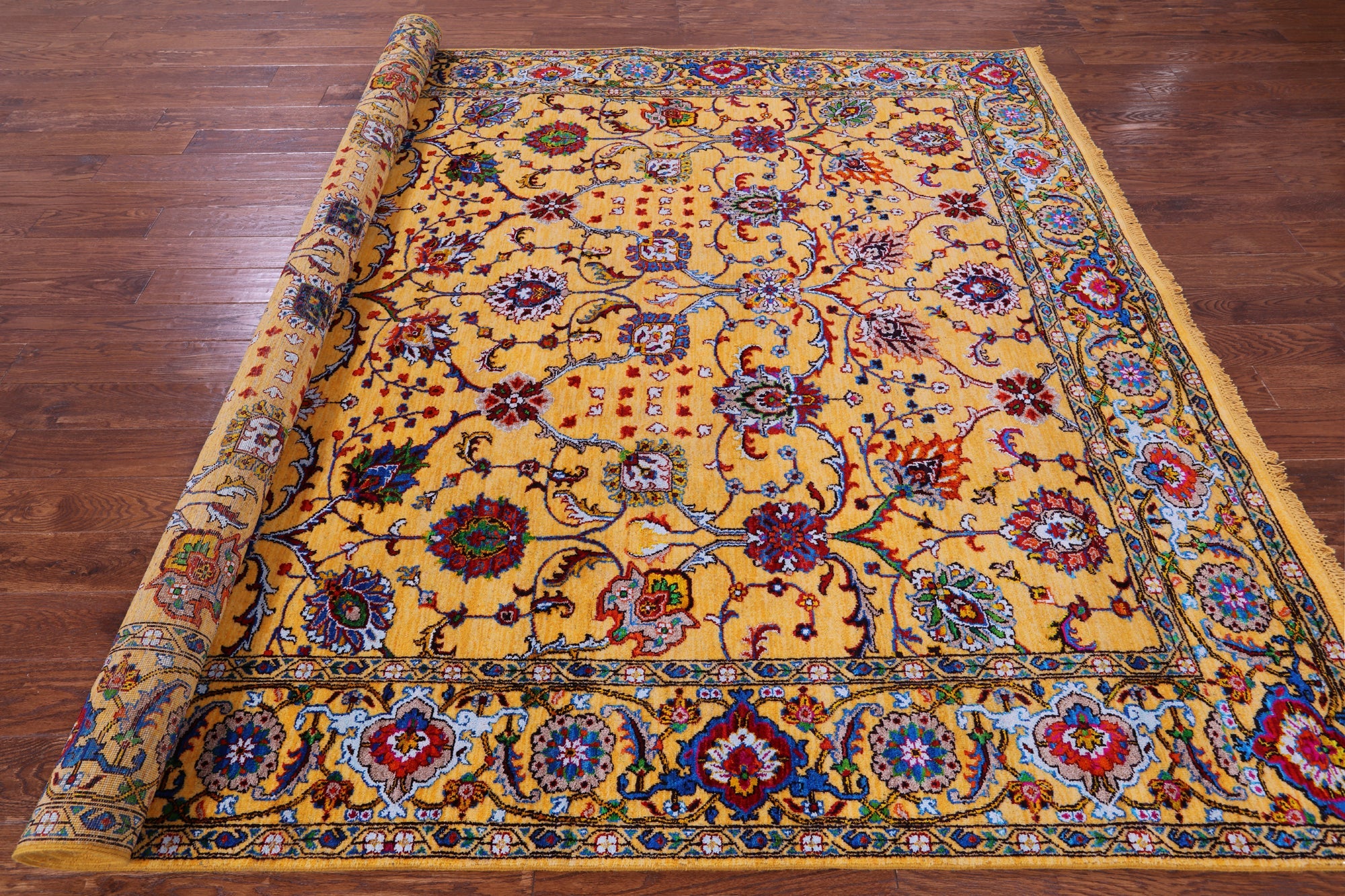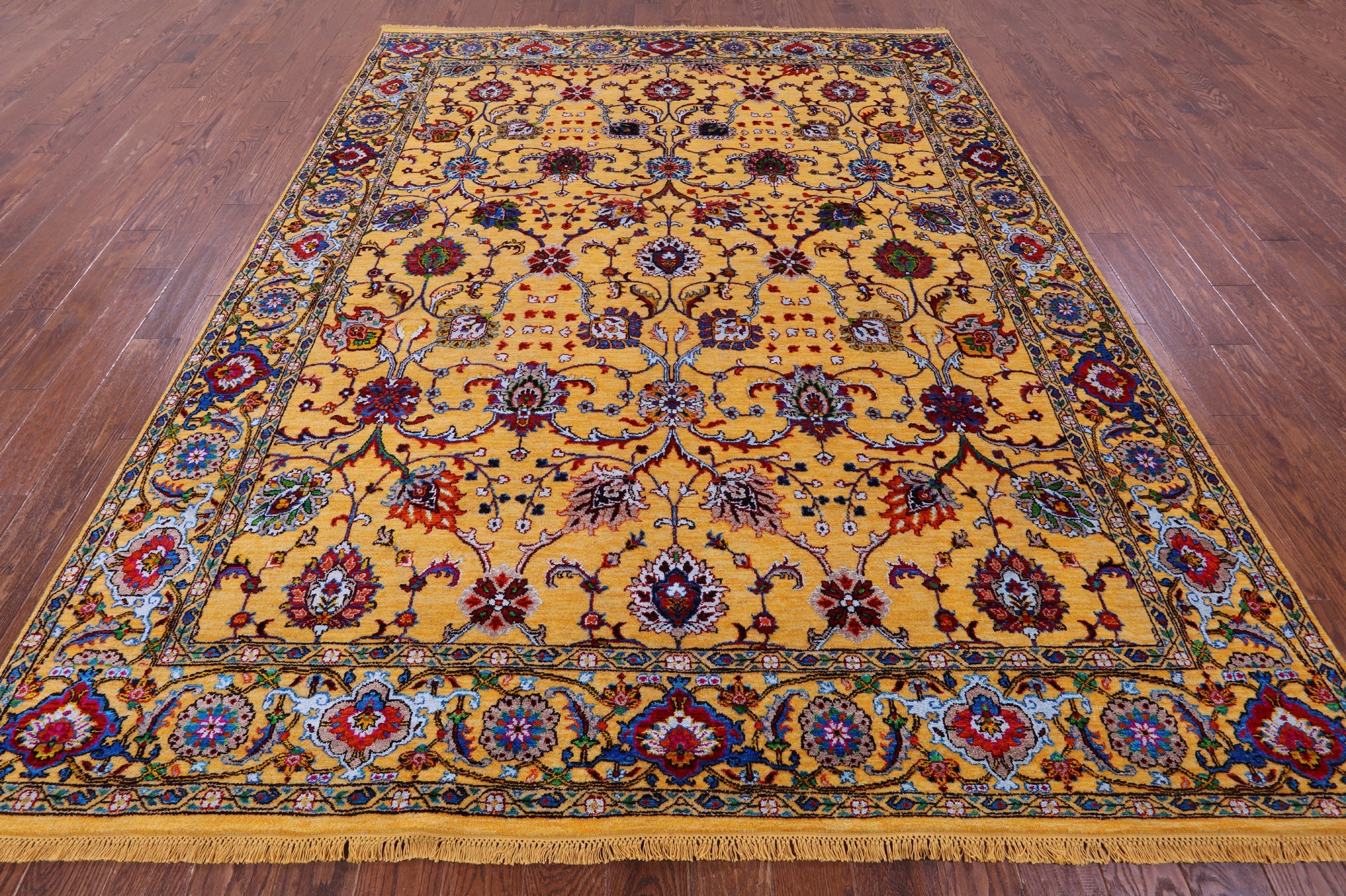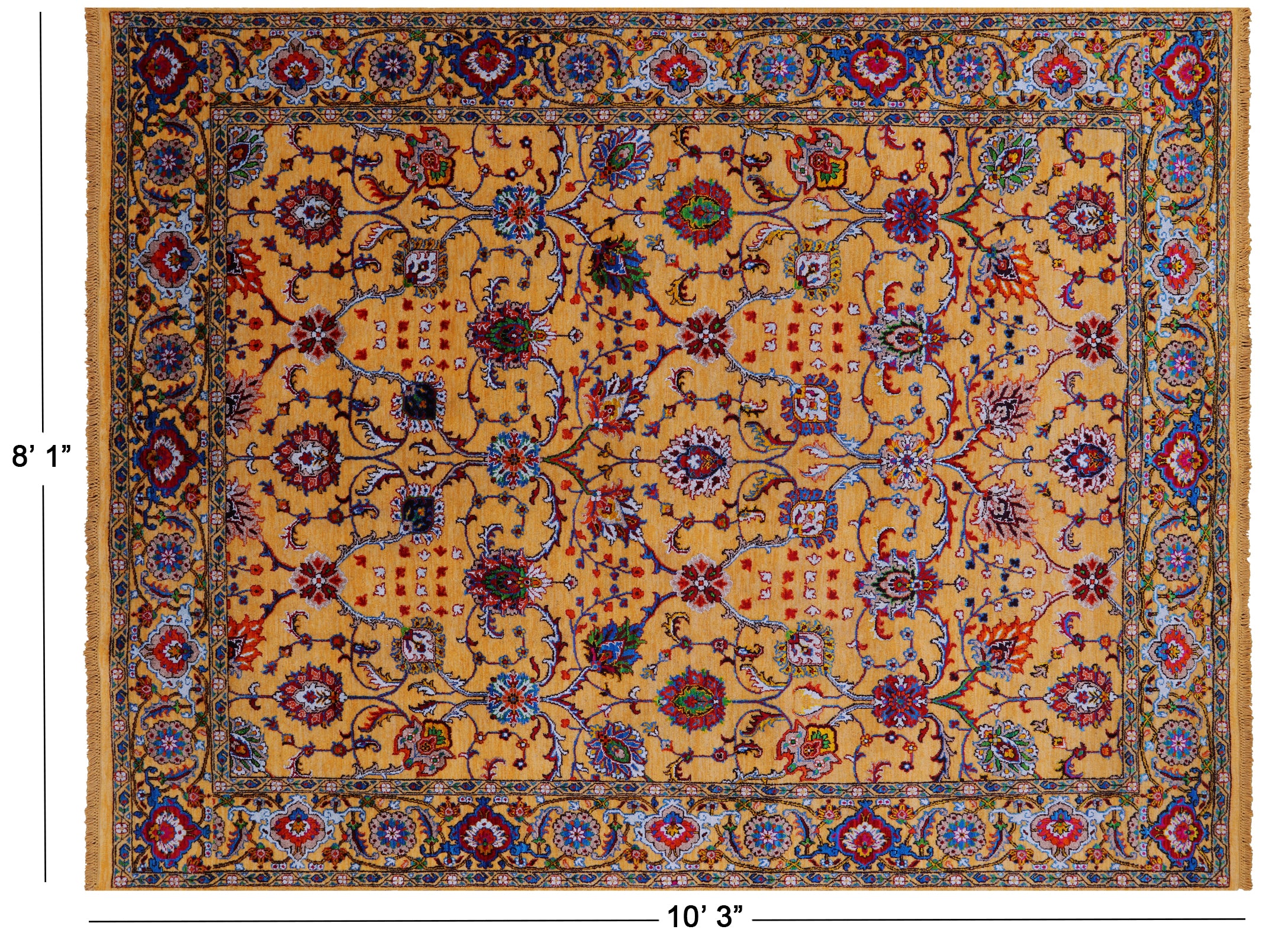 Gold Persian Tabriz Hand-Knotted Wool & Silk Rug 8' 1" X 10' 3" - Q21556 is backordered and will ship as soon as it is back in stock.