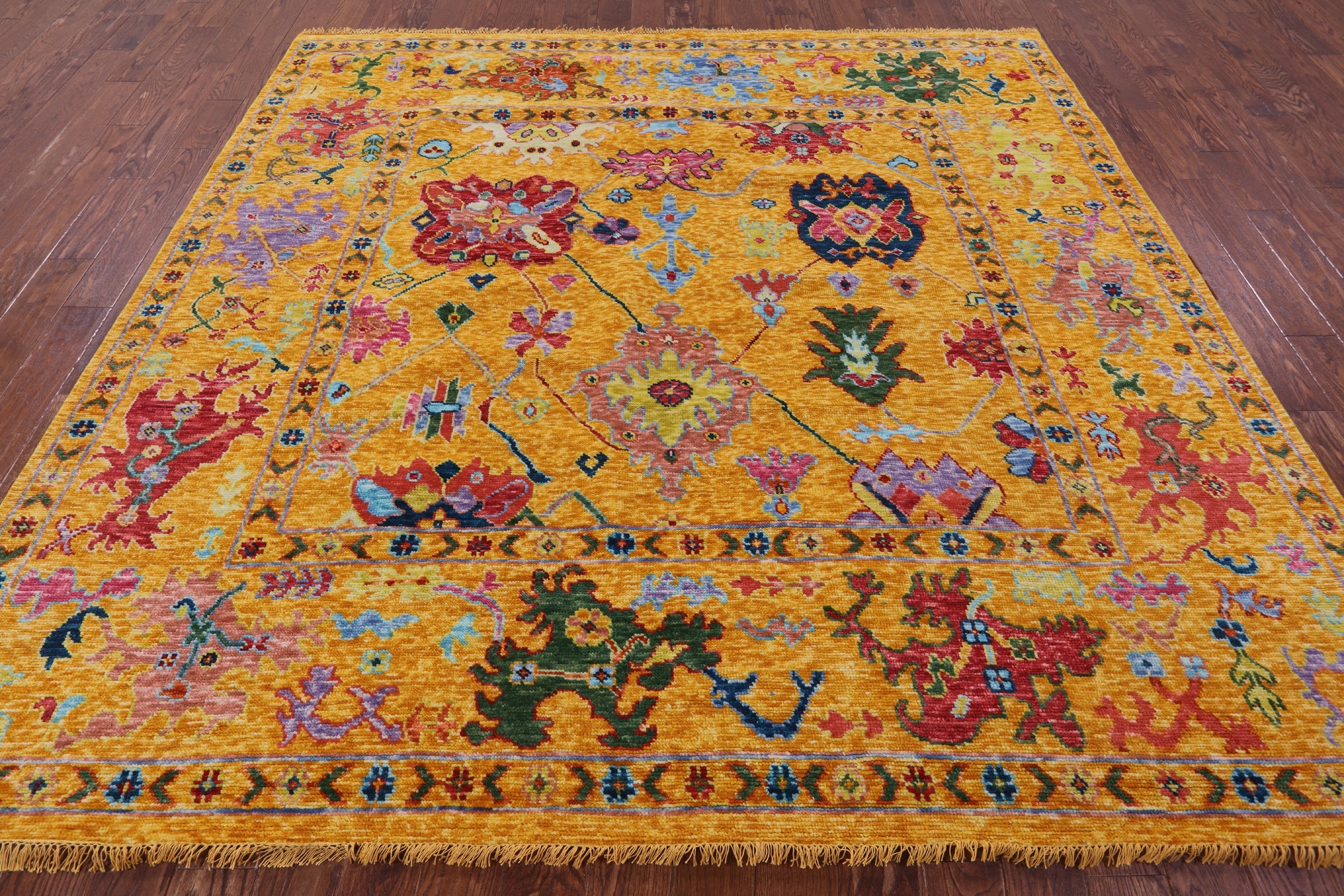Gold 9' Square Handmade Turkish Angora Oushak Wool Rug - Q19831
