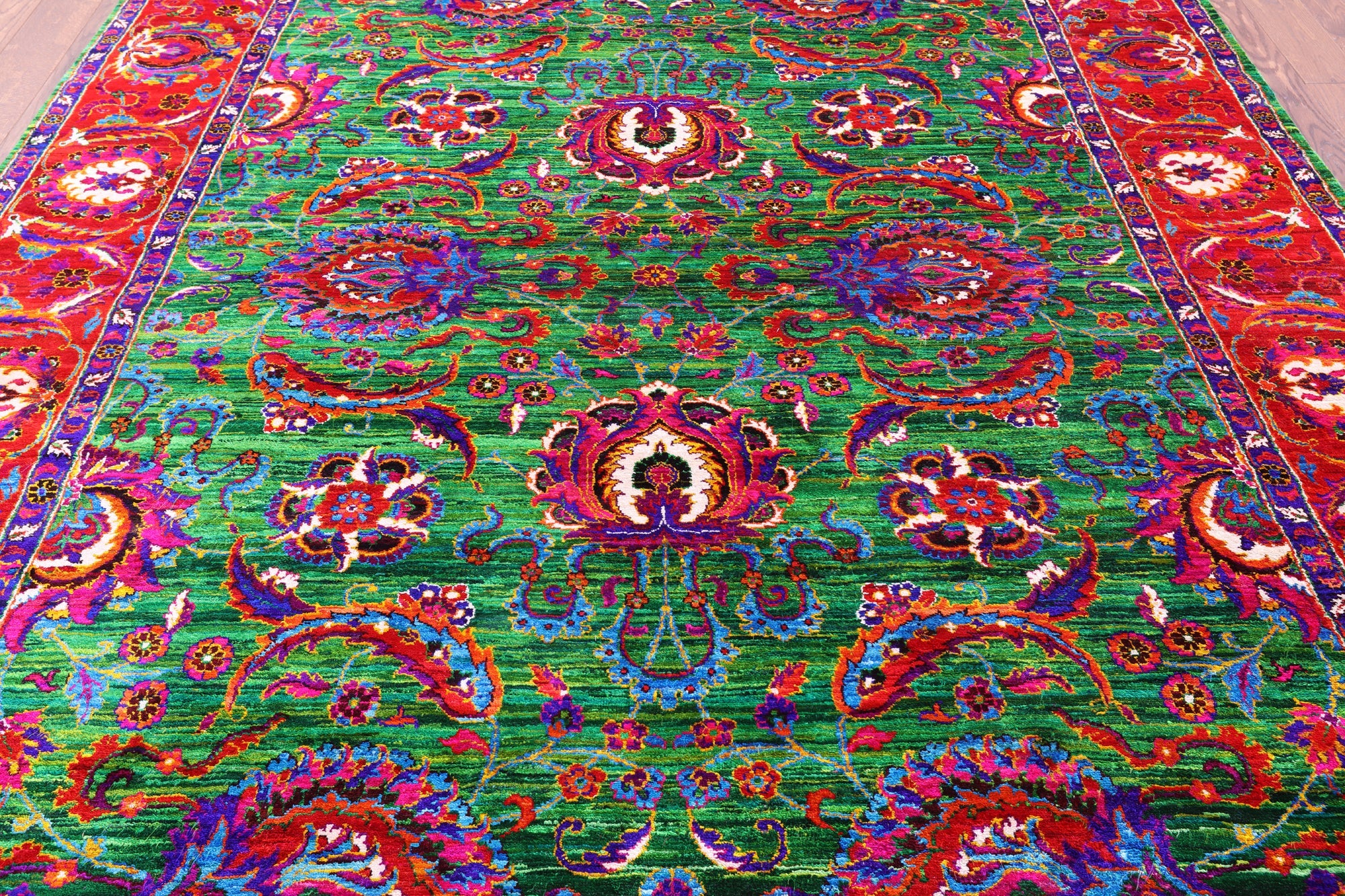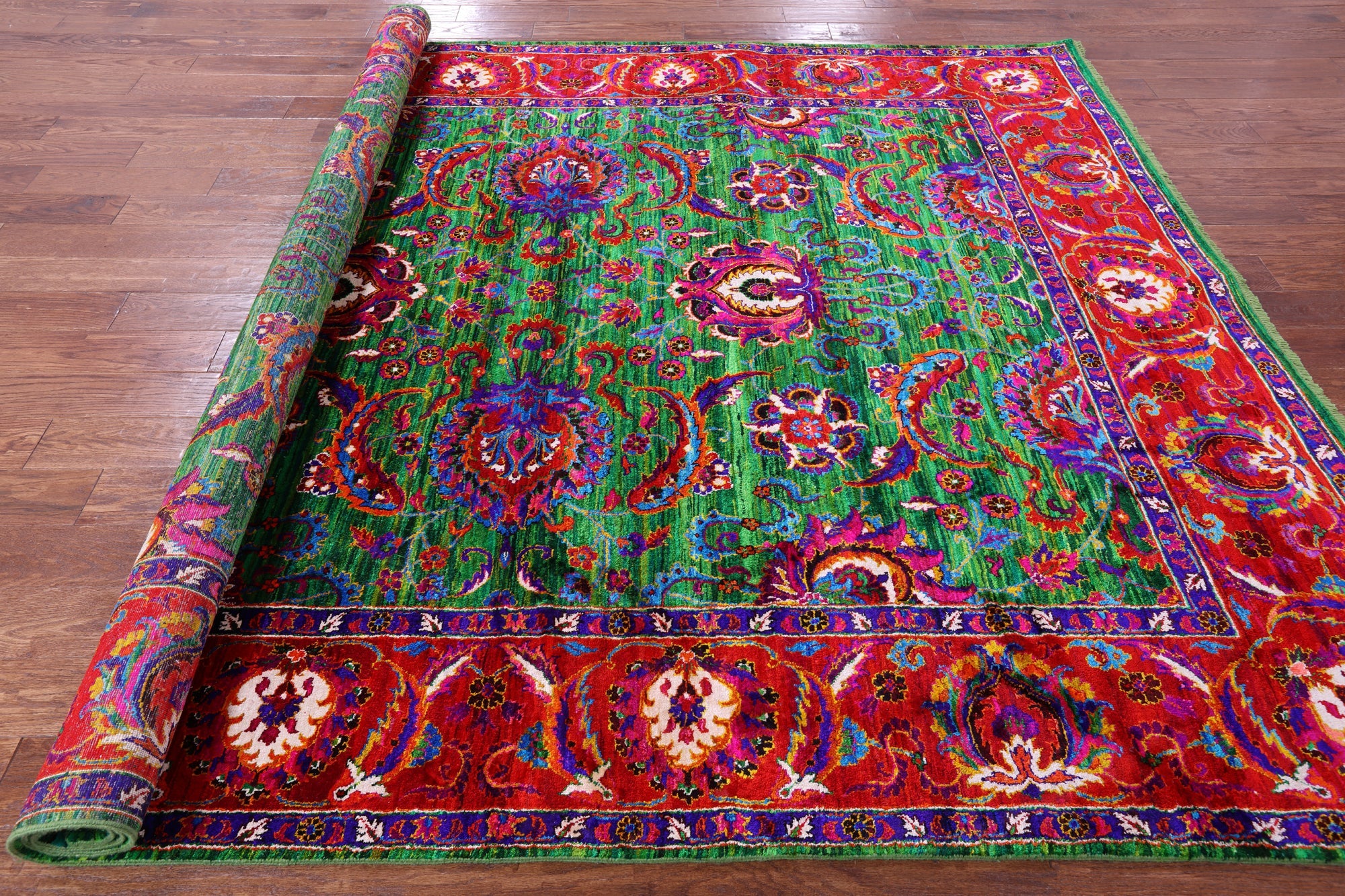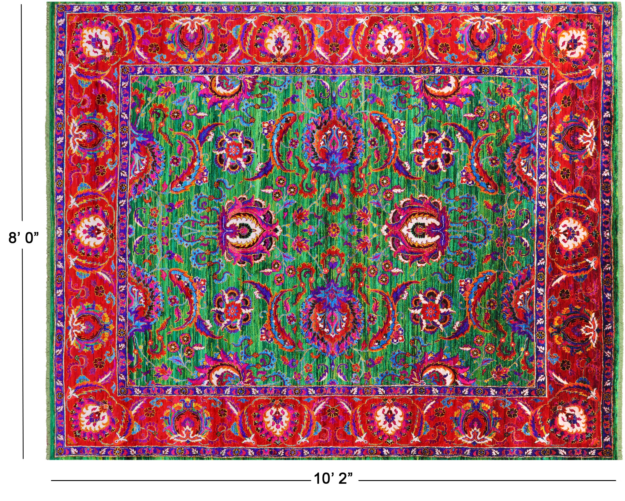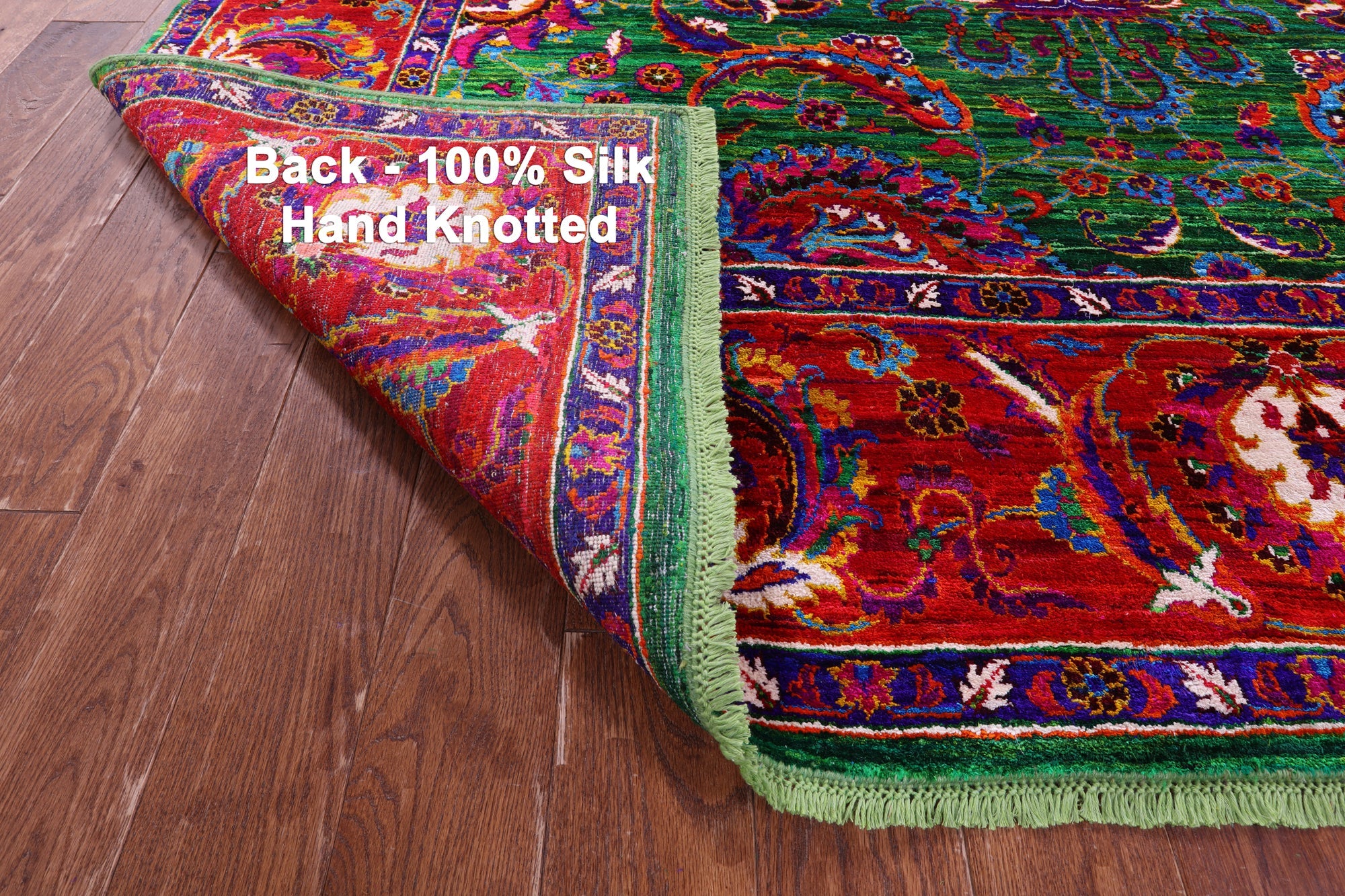 Green 8' 0" X 10' 2" Persian Tabriz Hand-Knotted 100% Silk Rug - Q22582