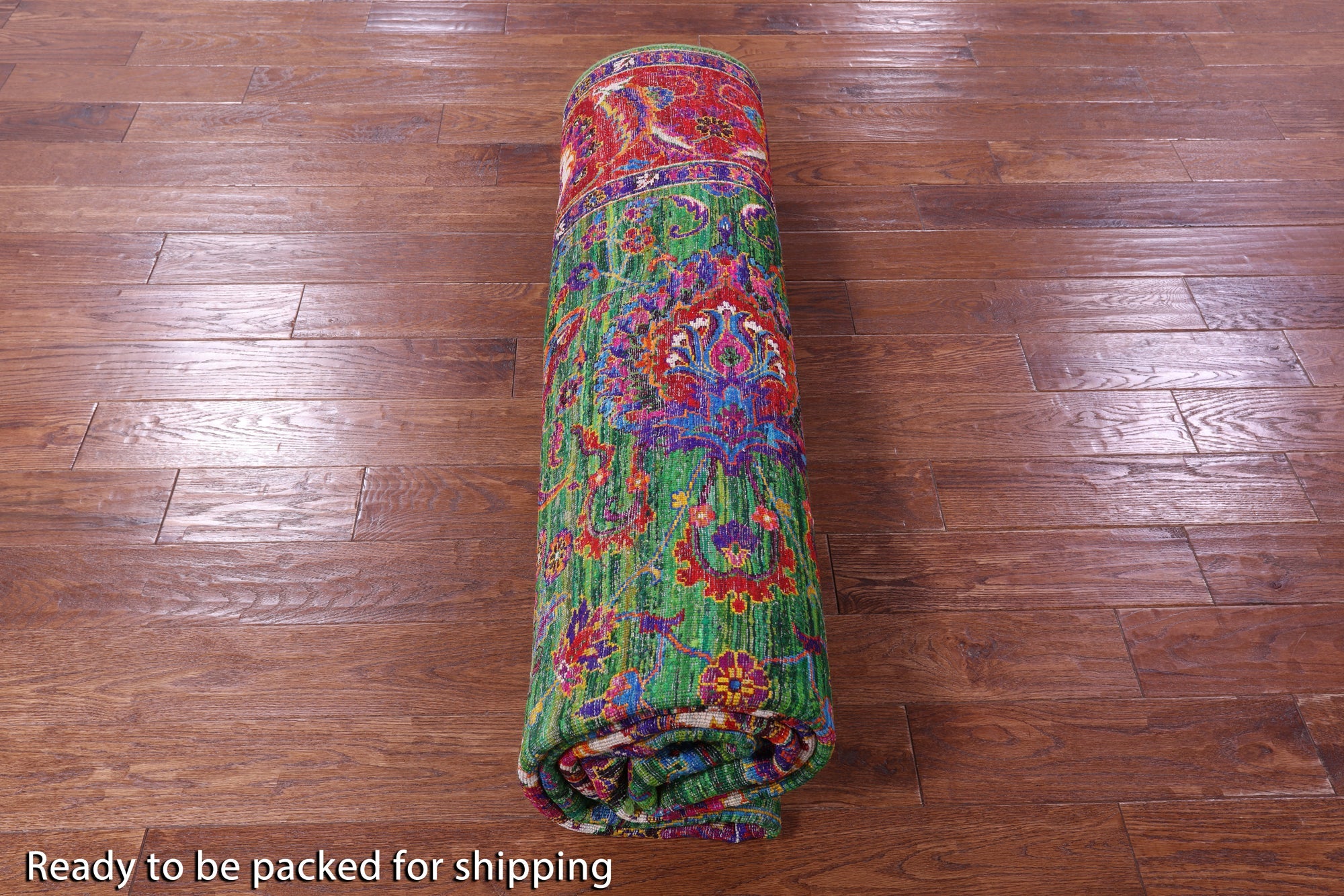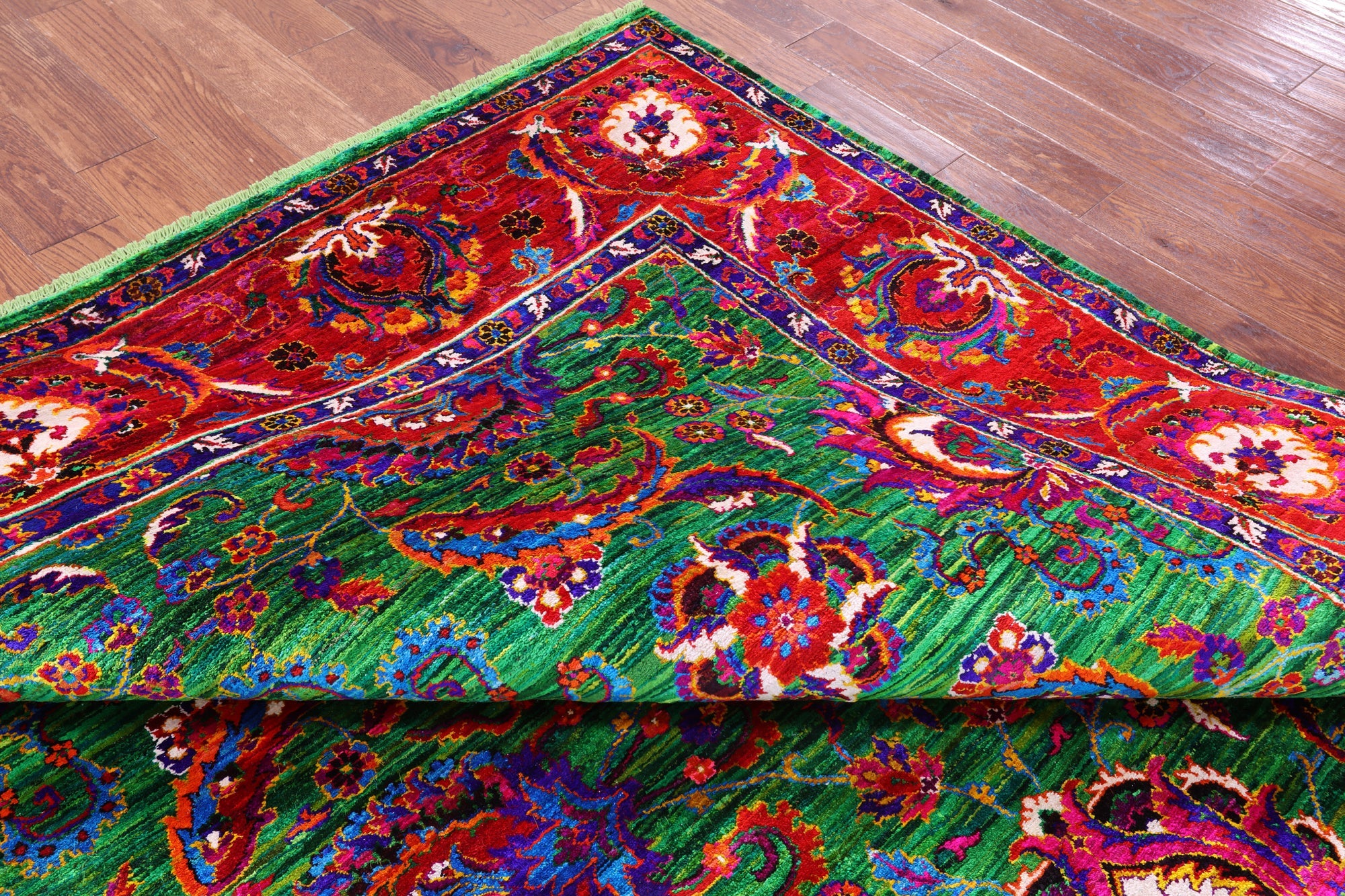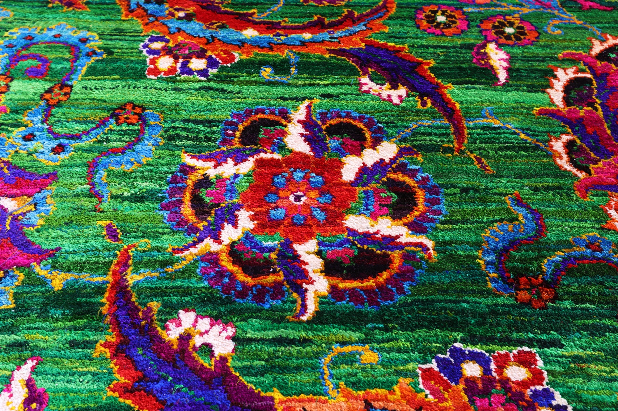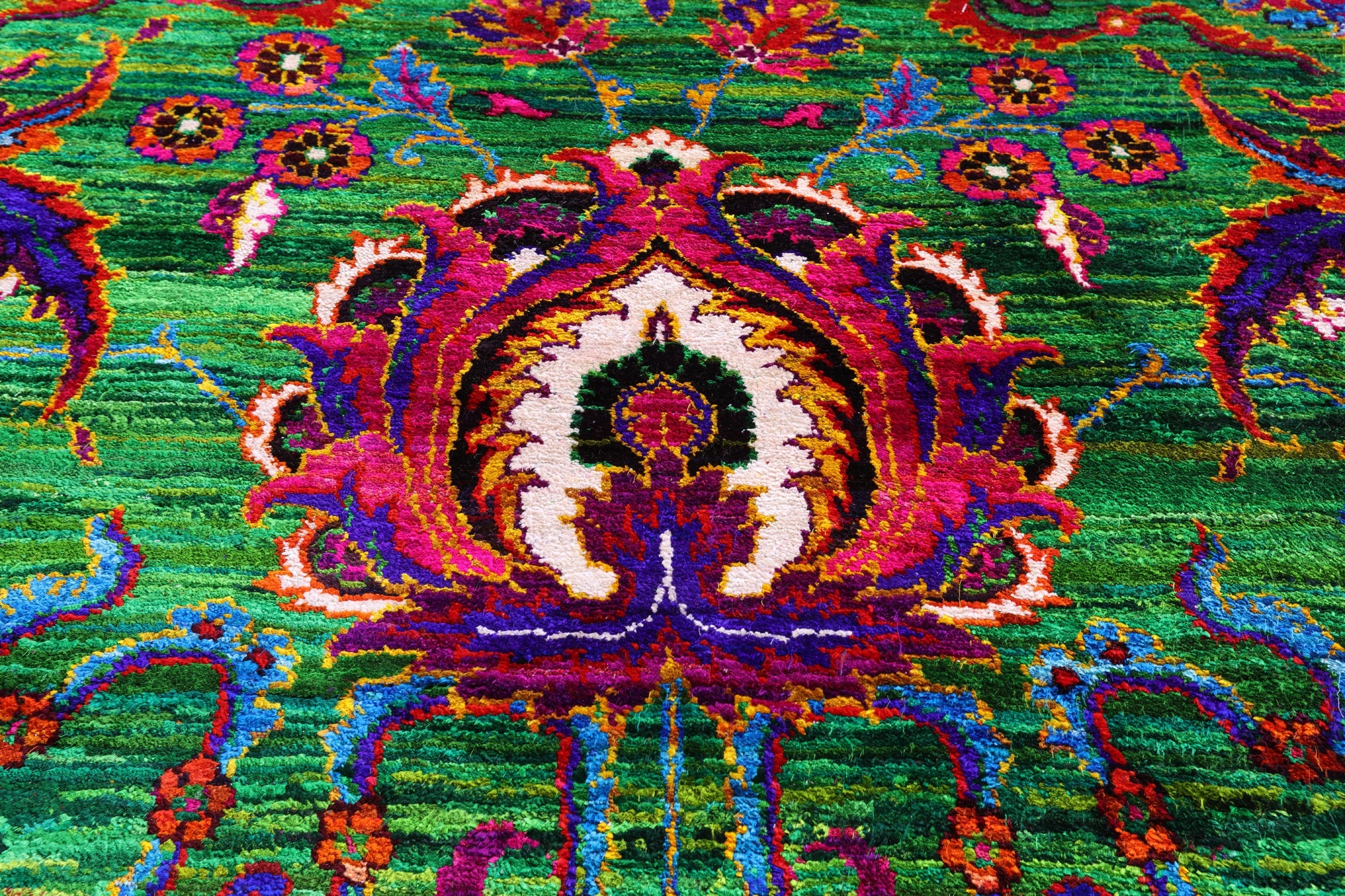 Green 8' 0" X 10' 2" Persian Tabriz Hand-Knotted 100% Silk Rug - Q22582