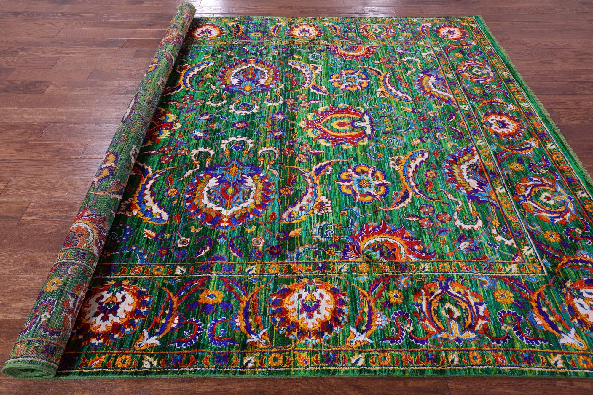 Green Persian Tabriz Handmade 100% Silk Rug 7' 11" X 10' 1" - Q22590 is backordered and will ship as soon as it is back in stock.
