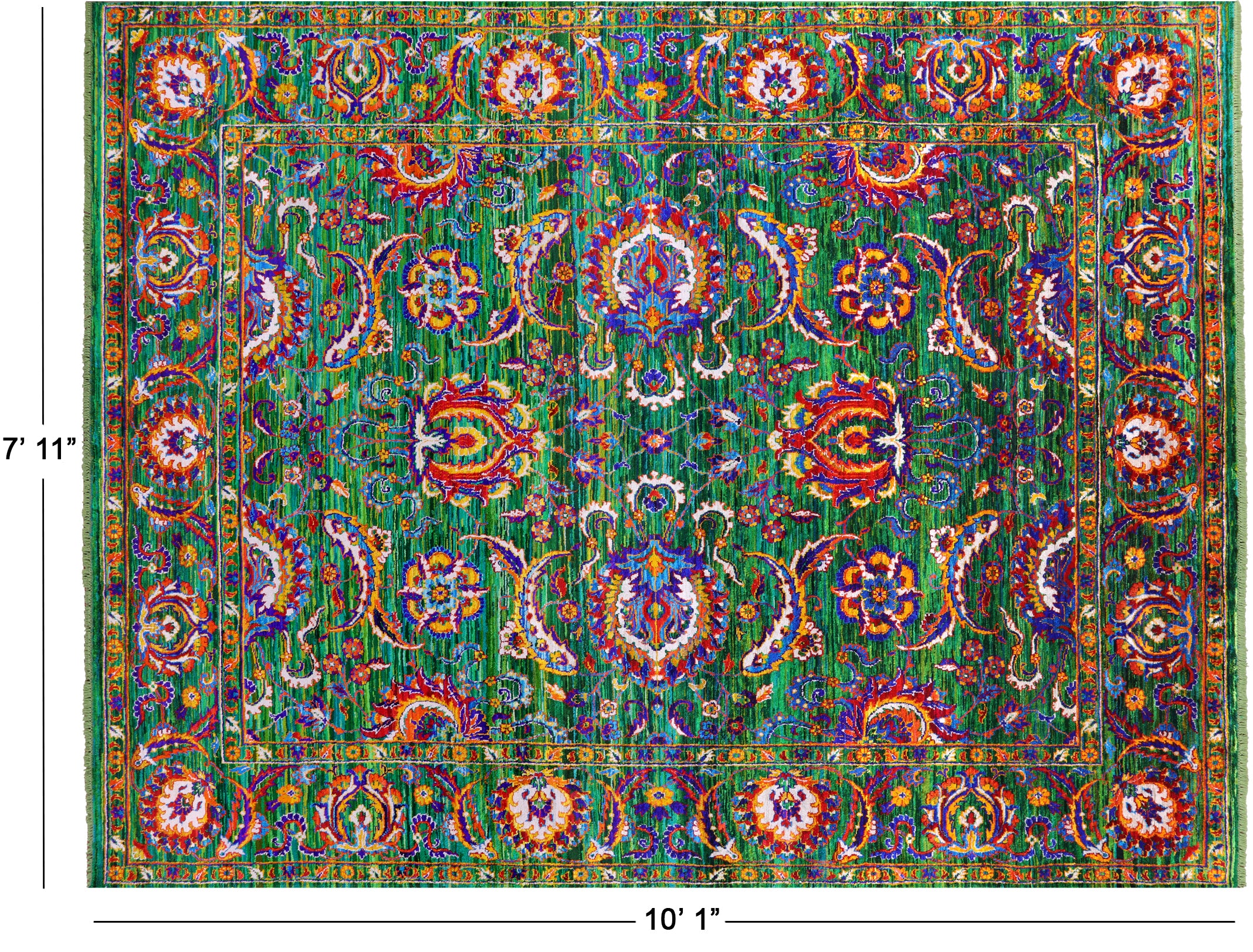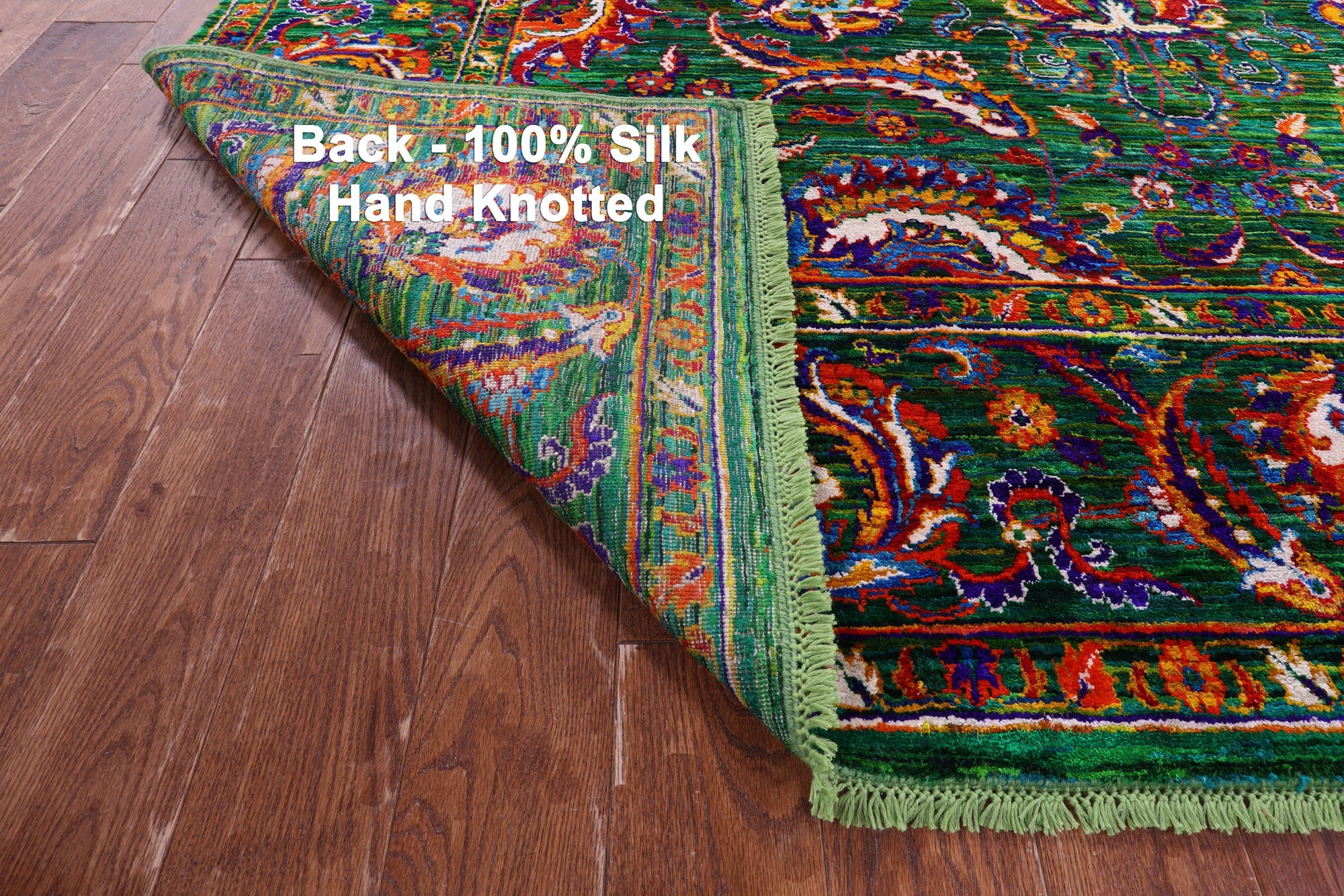 Green Persian Tabriz Handmade 100% Silk Rug 7' 11" X 10' 1" - Q22590