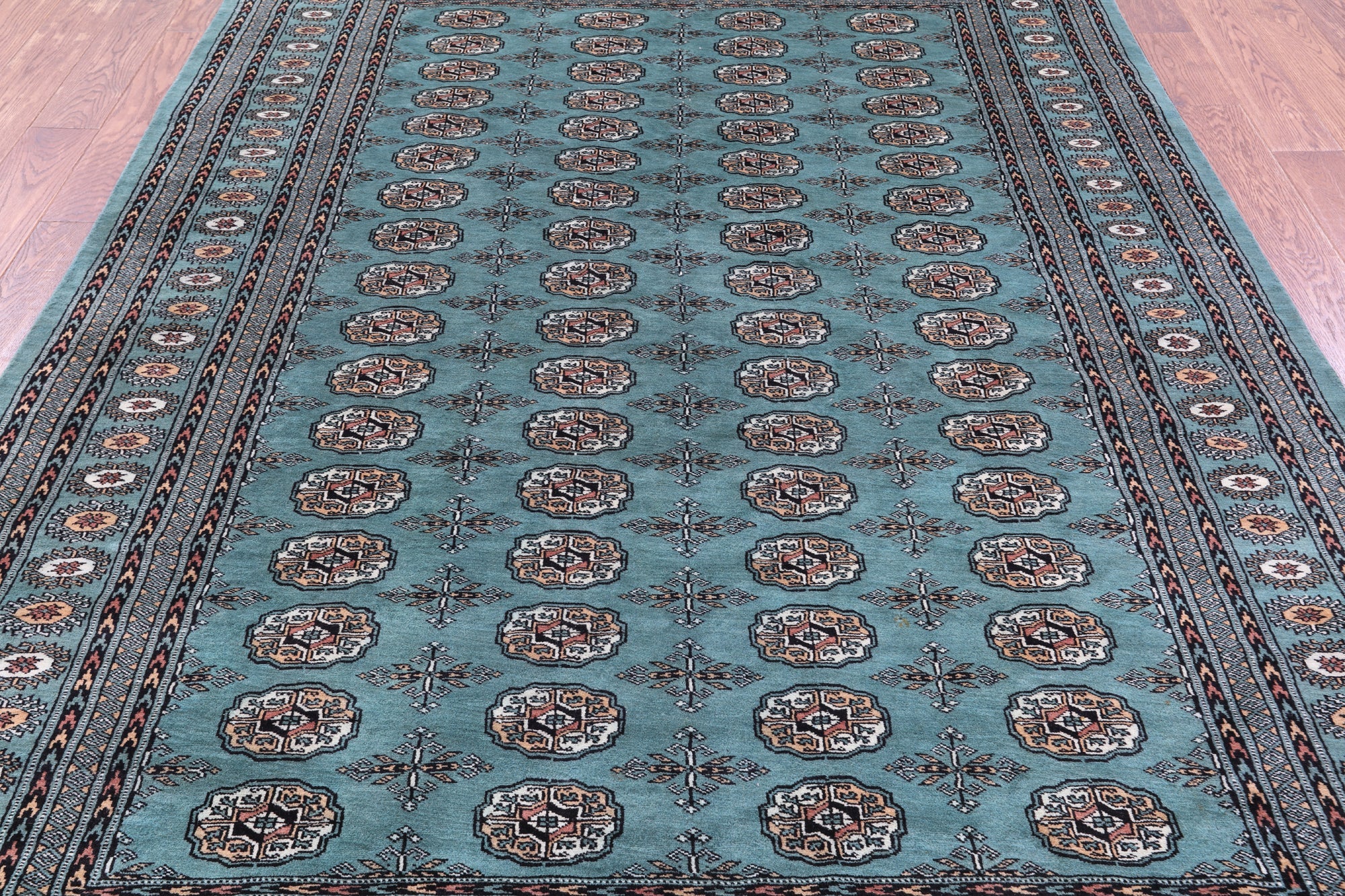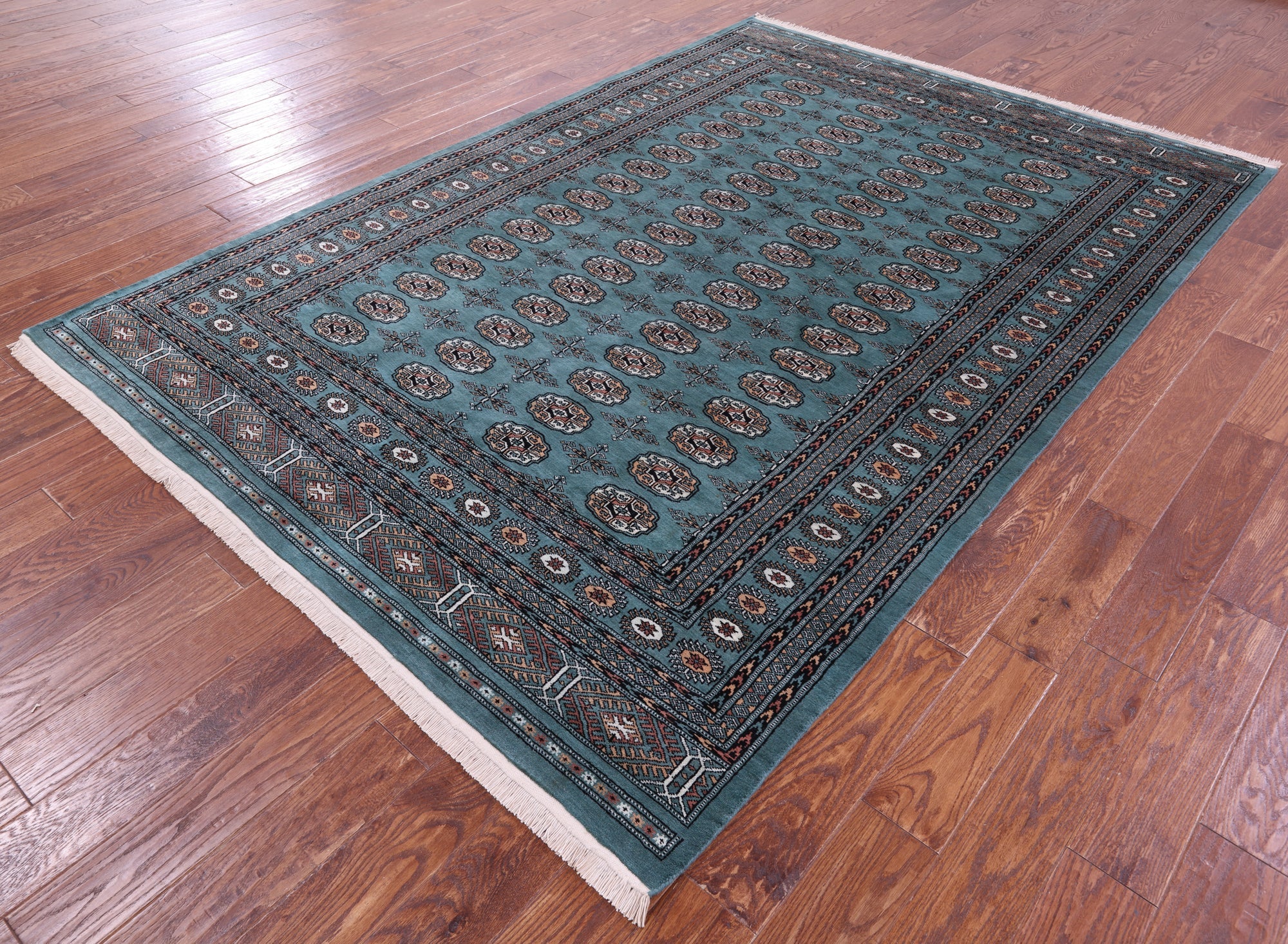 Bokharas are a type of handmade Pakistani rug; also known as Bukharas or Bokaras. Most are based on Turkmen prototypes called Tekkes. Pakistani Bokhara rugs are among the most popular handmade rugs in the world. They are popular for their soft, luxurious feel, heavy pile, attractive colors and appearance that consist of repeating octagonal figures called guls, usually on fields of burgundy red, gray blue, or sometimes green.