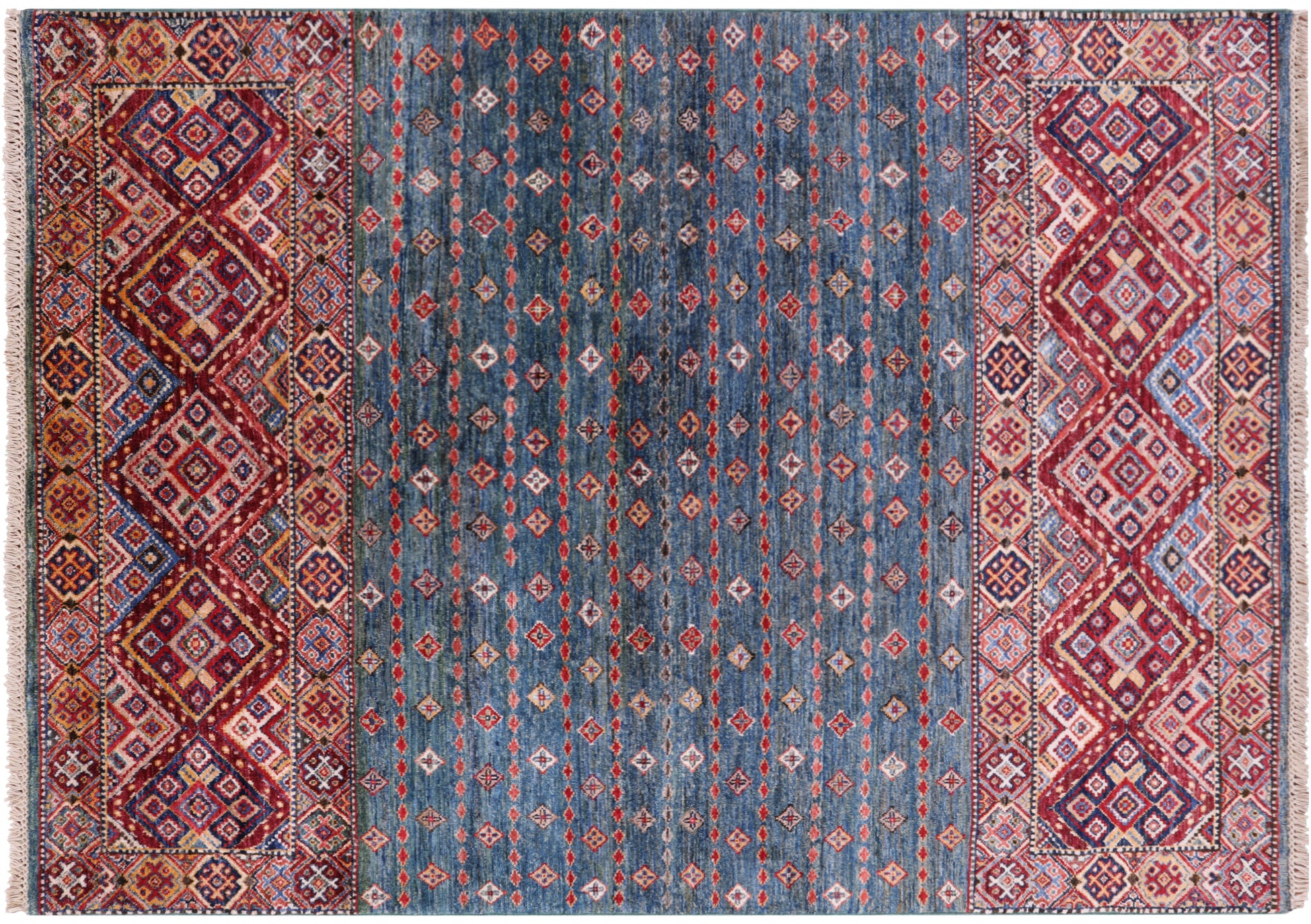 Green Super Kazak Khorjin Handmade Wool Rug 4' 11" X 6' 9" - Q7632