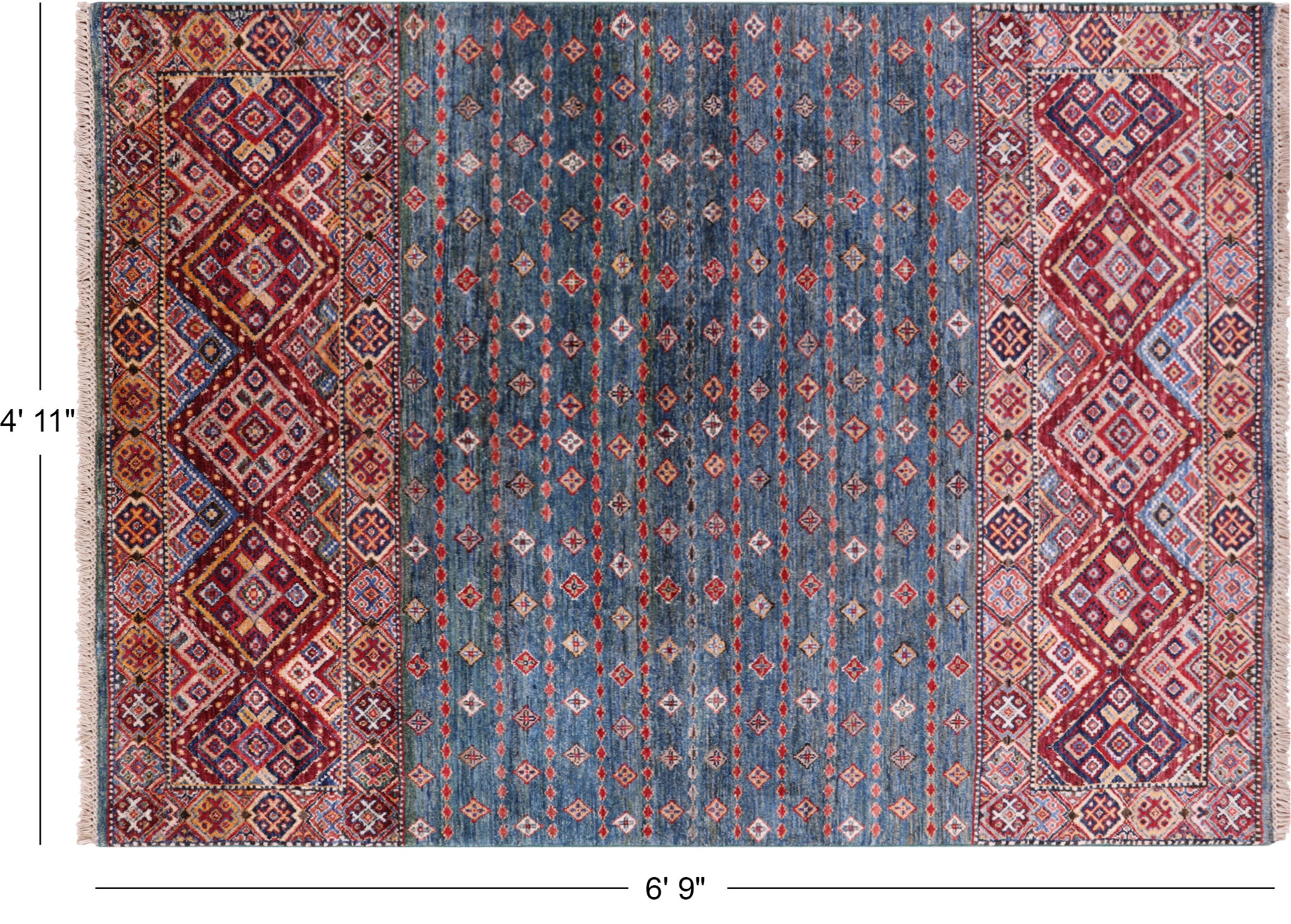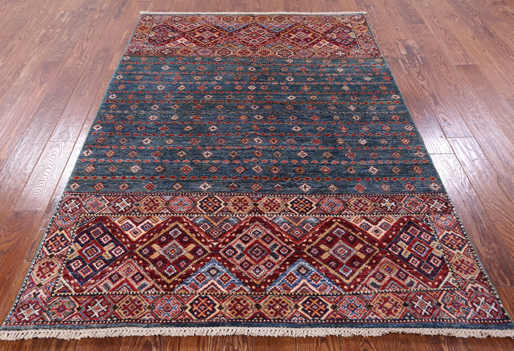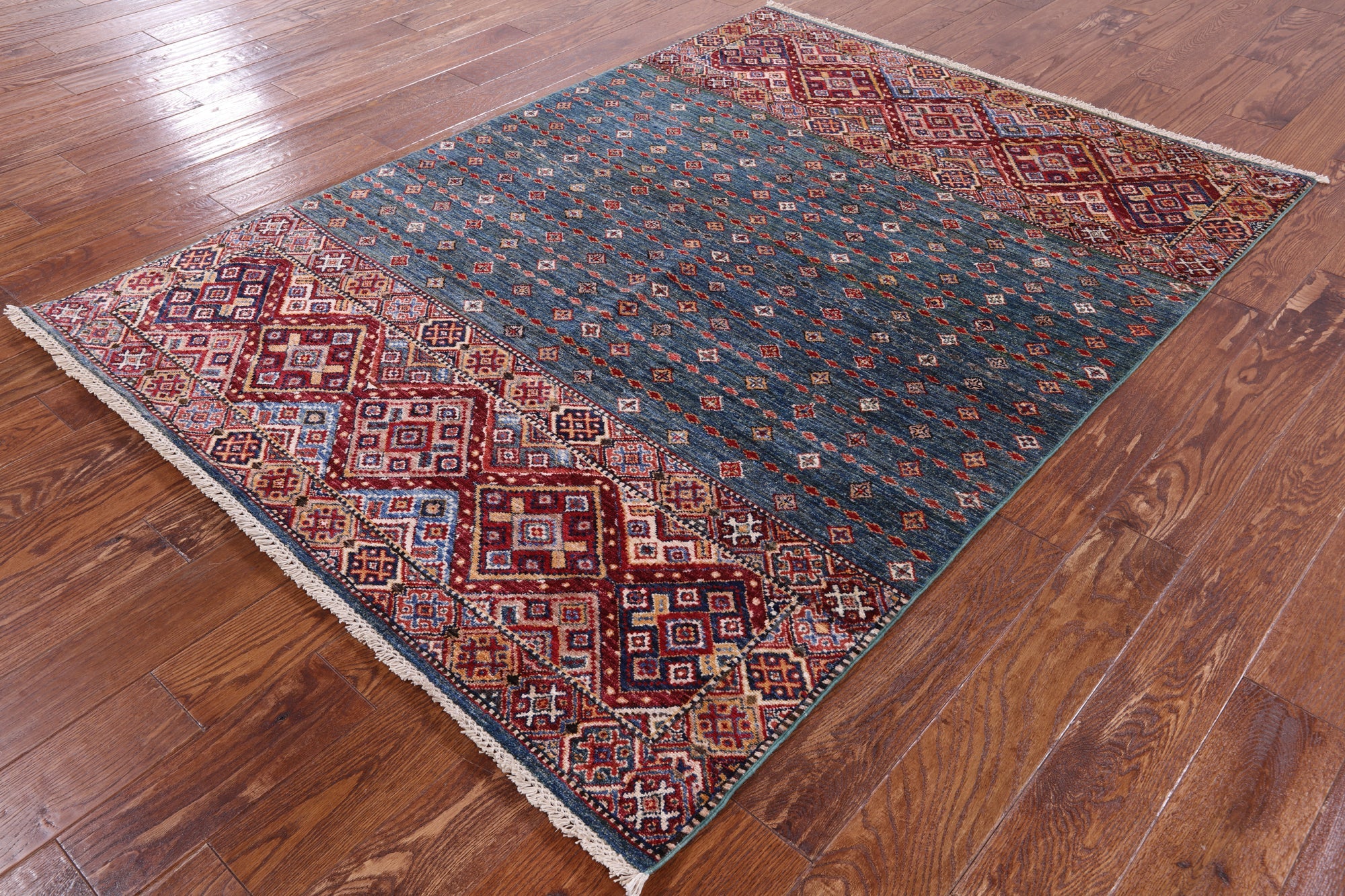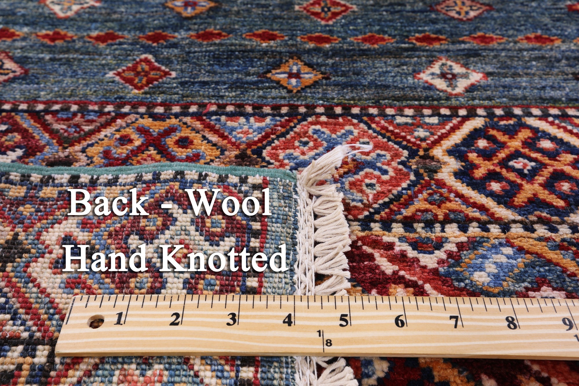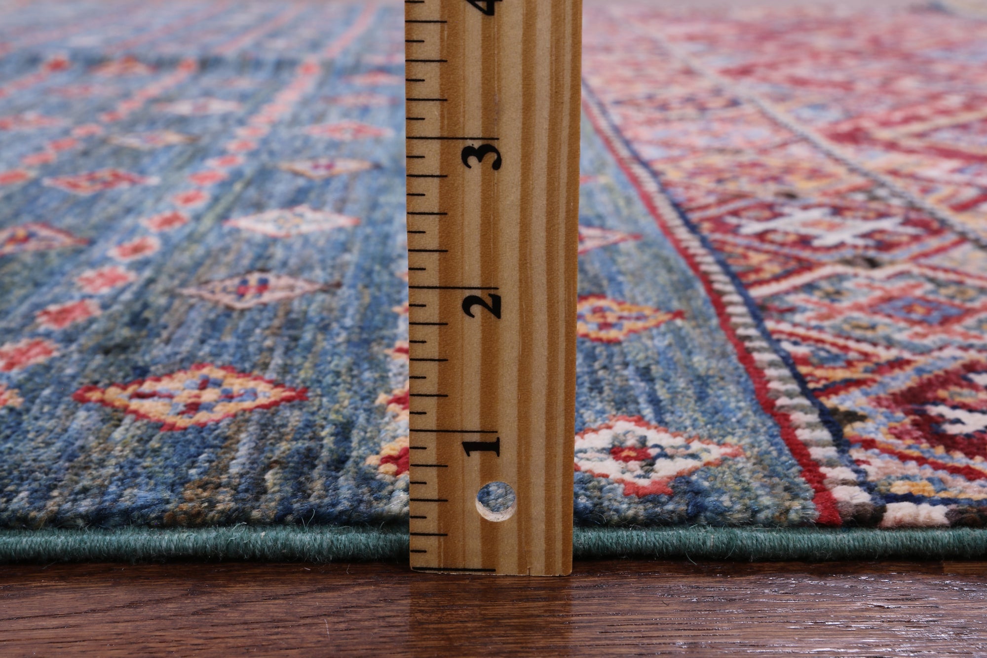 Green Super Kazak Khorjin Handmade Wool Rug 4' 11" X 6' 9" - Q7632 is backordered and will ship as soon as it is back in stock.