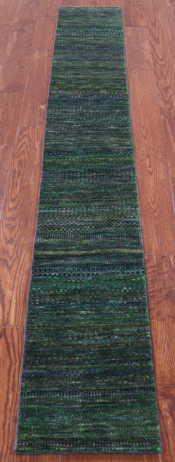 Green Super Savannah Gabbeh Wool & Silk Hand Knotted Runner Rug 1' 3" X 8' 1" - Q23536 is backordered and will ship as soon as it is back in stock.