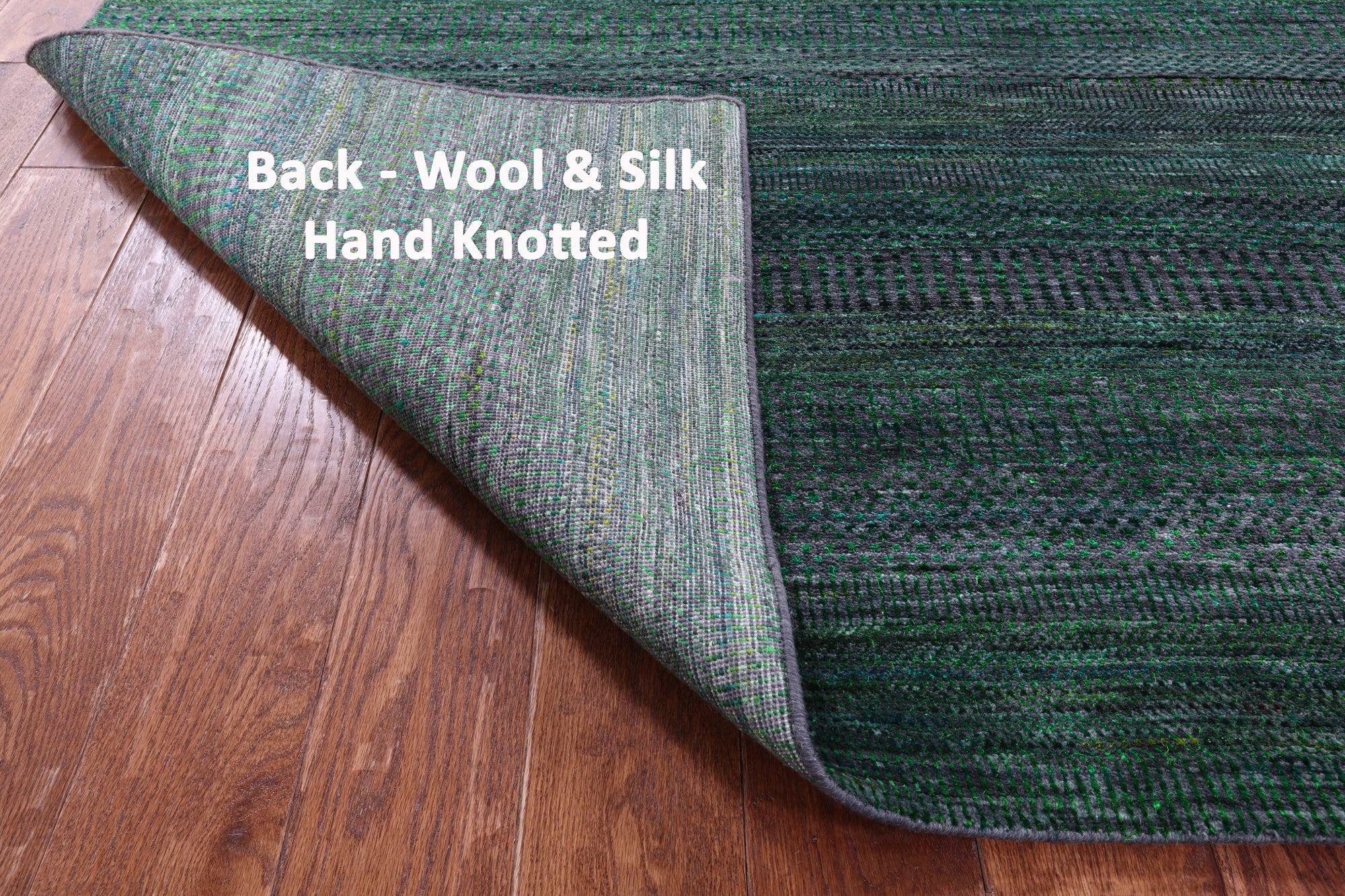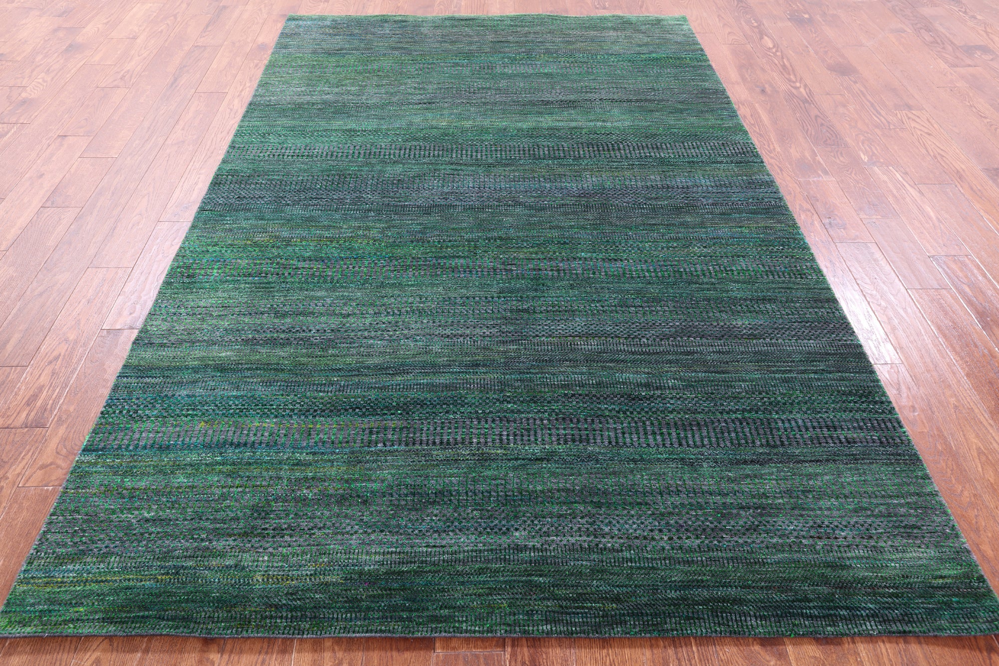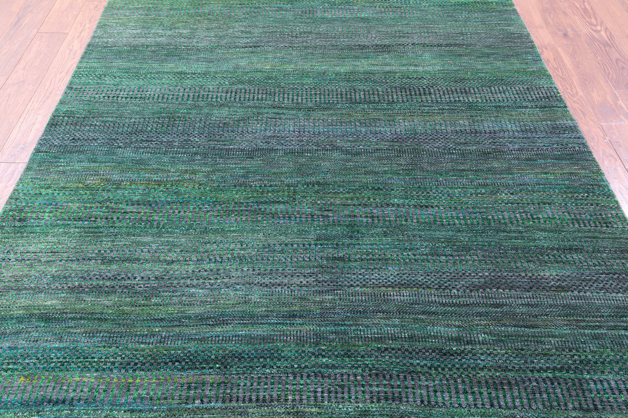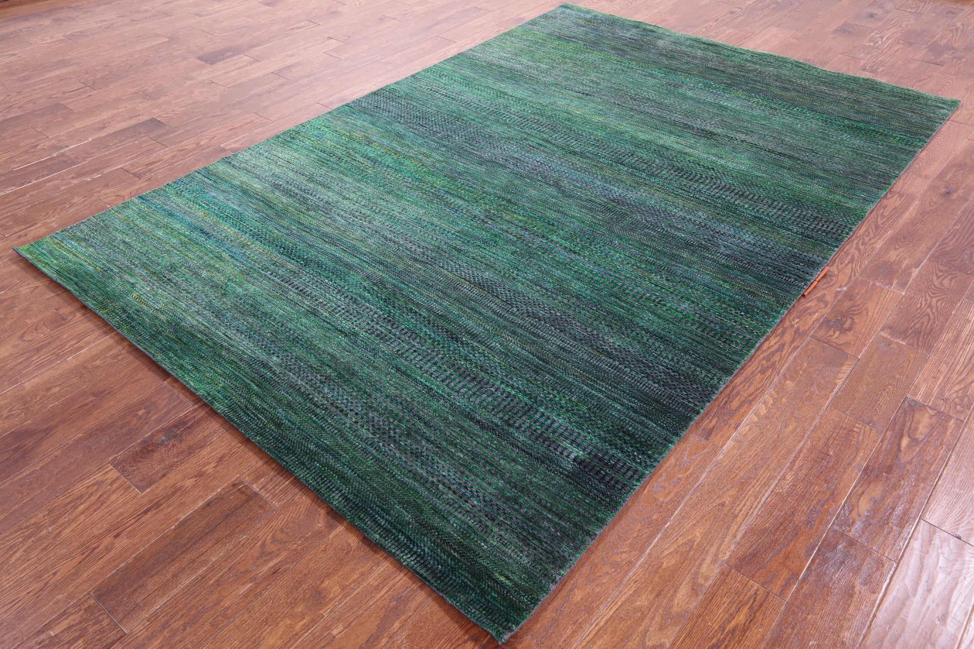 Green Super Savannah Gabbeh Wool & Silk Handmade Rug 6' 1" X 9' 3" - Q22202