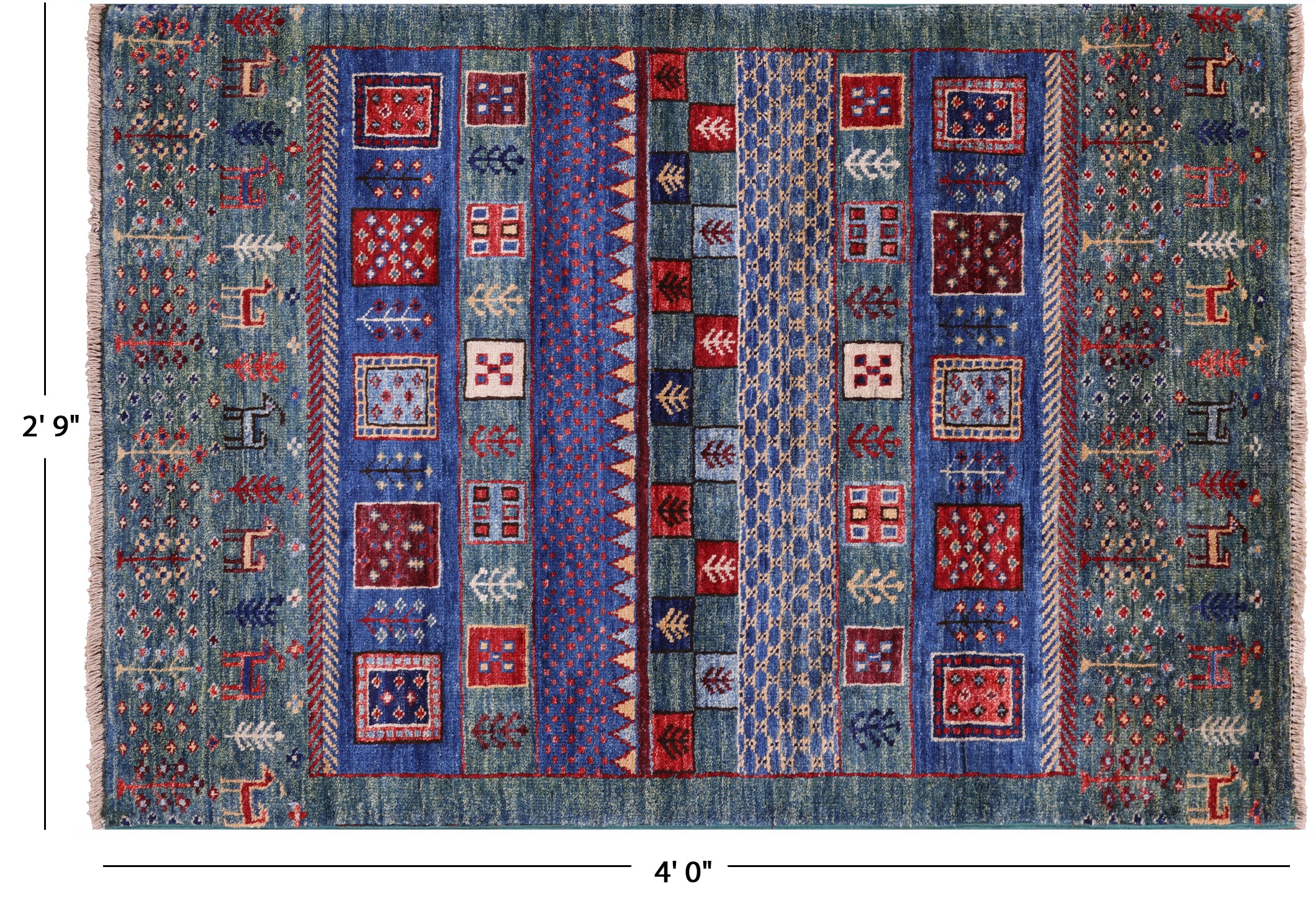 Green 2' 9" X 4' 0" Tribal Persian Gabbeh Handmade Wool Rug - Q20537