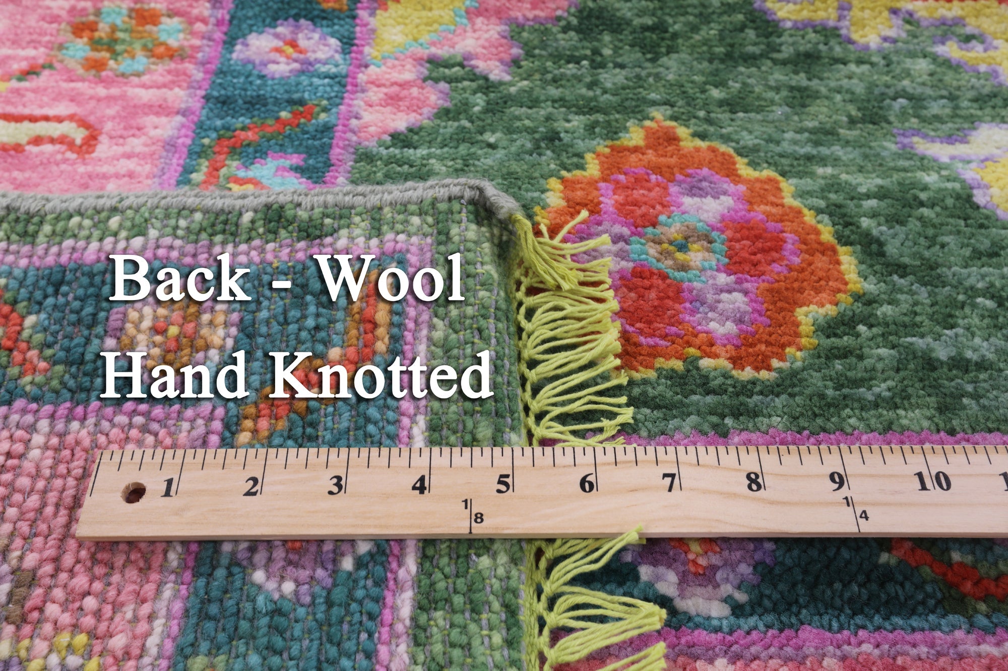 Our hand-knotted Turkish Oushak rug is a beautiful and unique piece that will add charm and warmth to any space. Made using traditional techniques, each rug is carefully crafted by skilled artisans who use only the finest wool and natural dyes. The result is a rug that is not only durable and long-lasting, but also has a rich and vibrant color palette that will complement a range of decor styles.