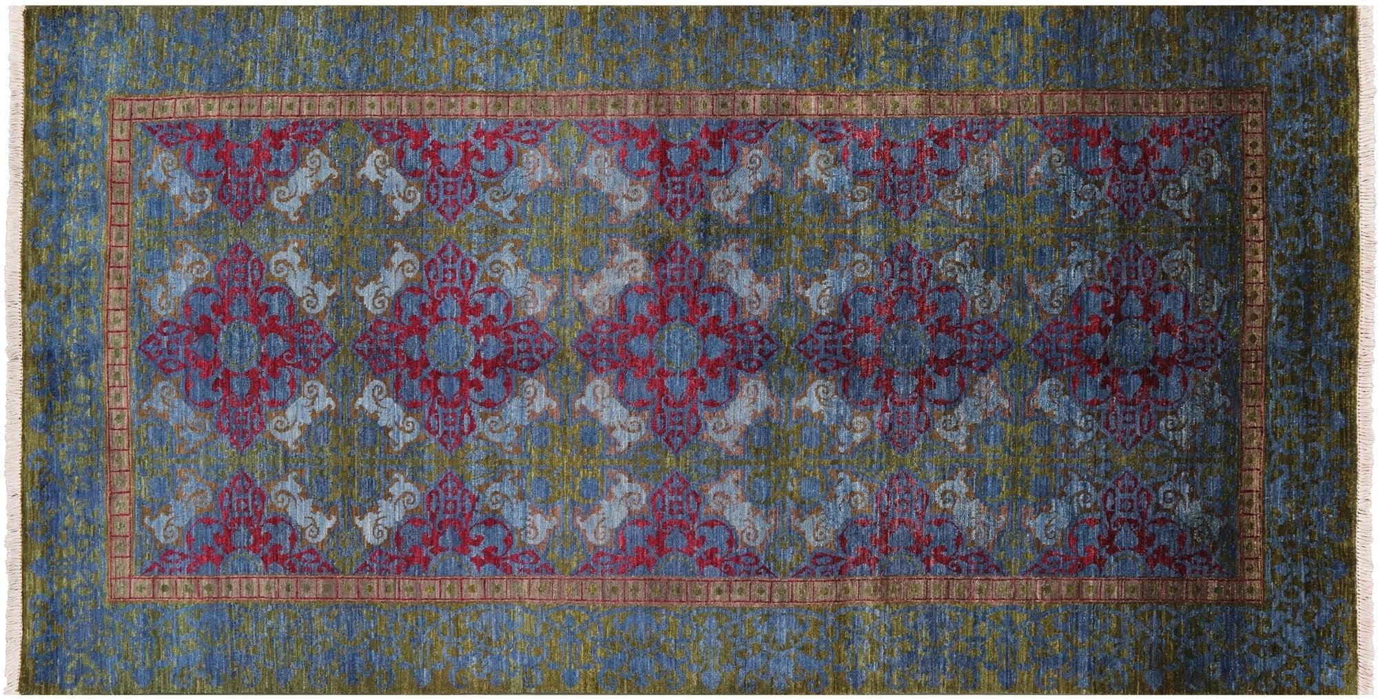 Green 5' 2" X 10' 1" William Morris Hand Knotted Wool Rug - Q4396