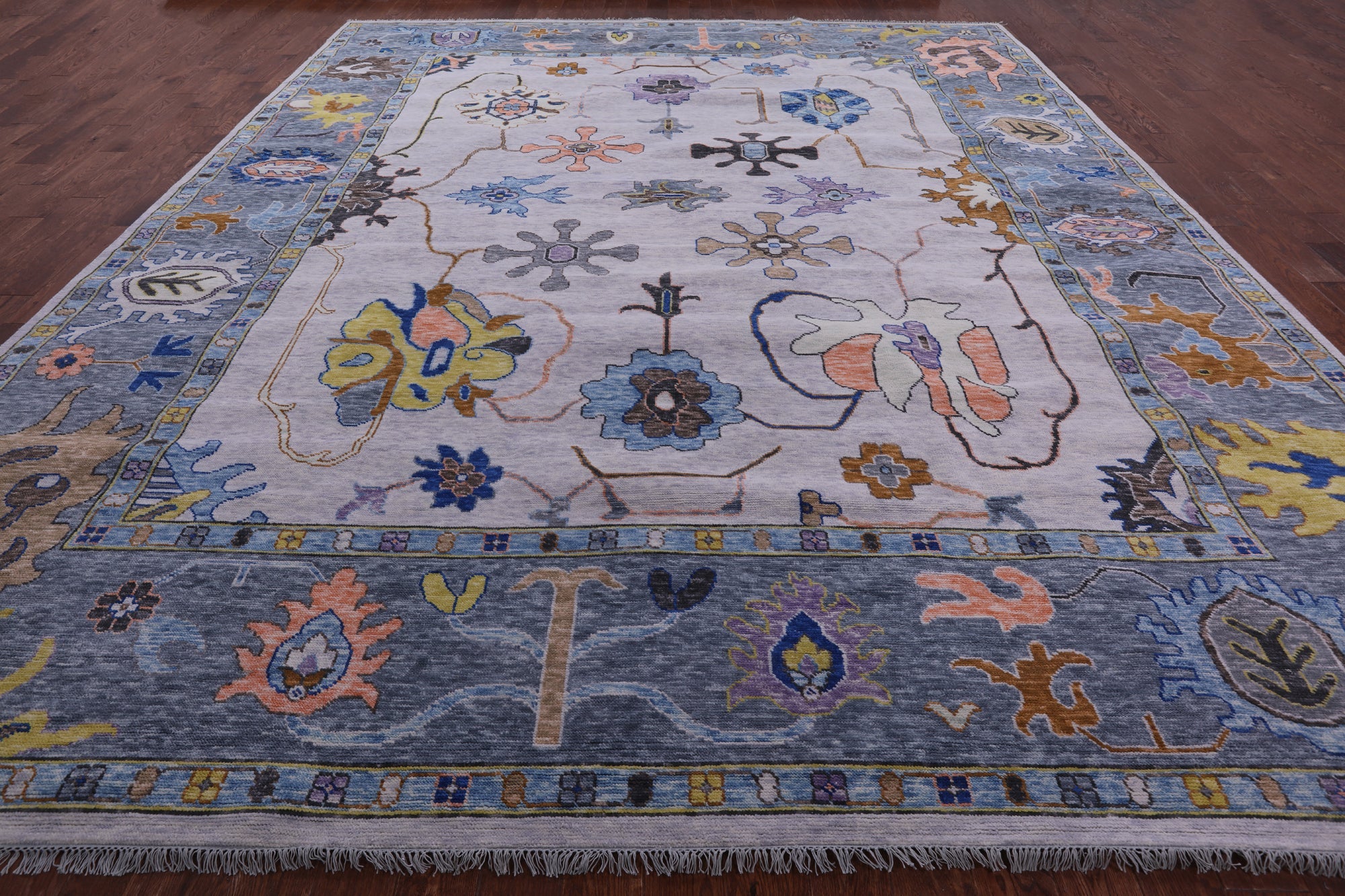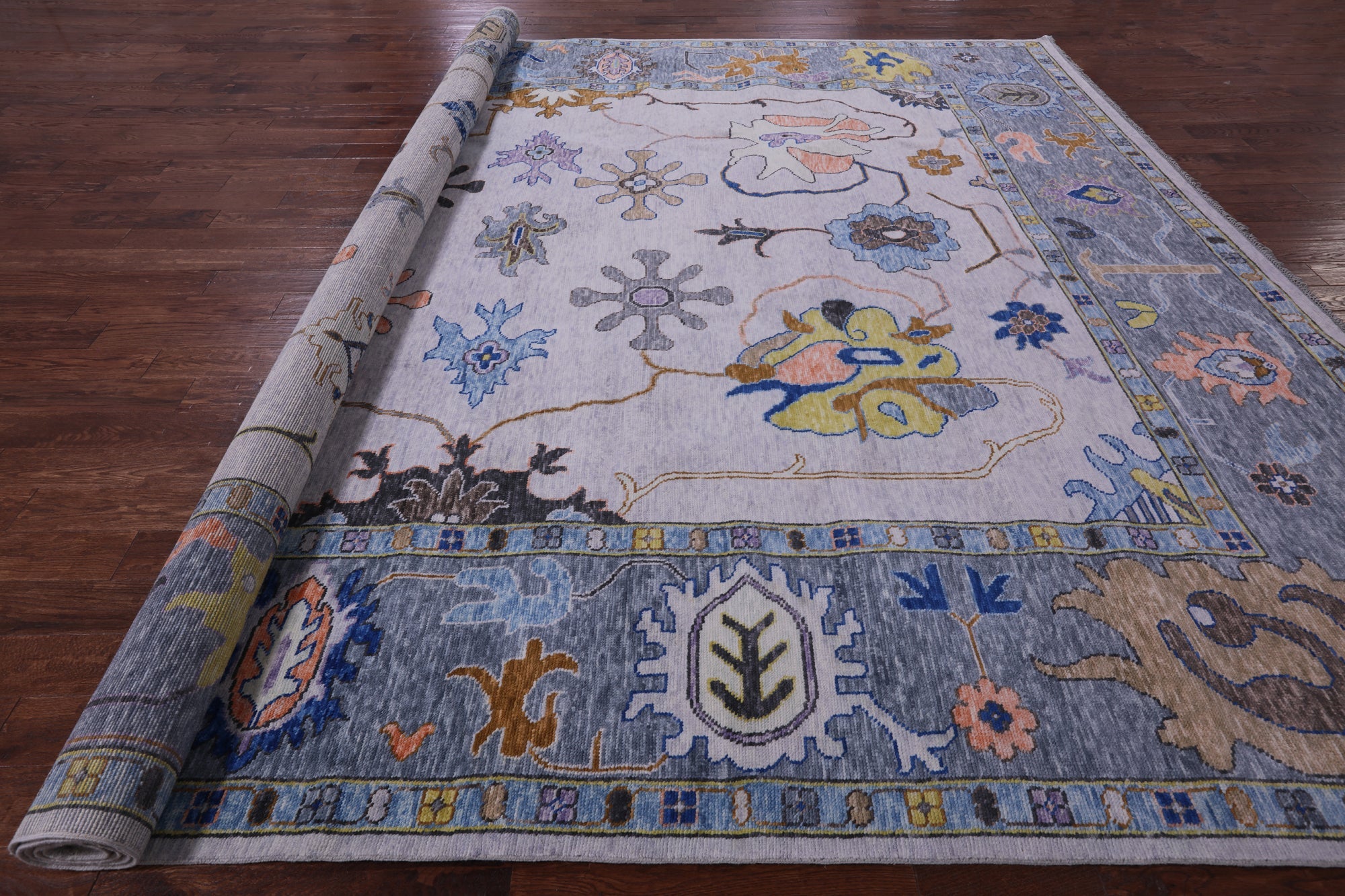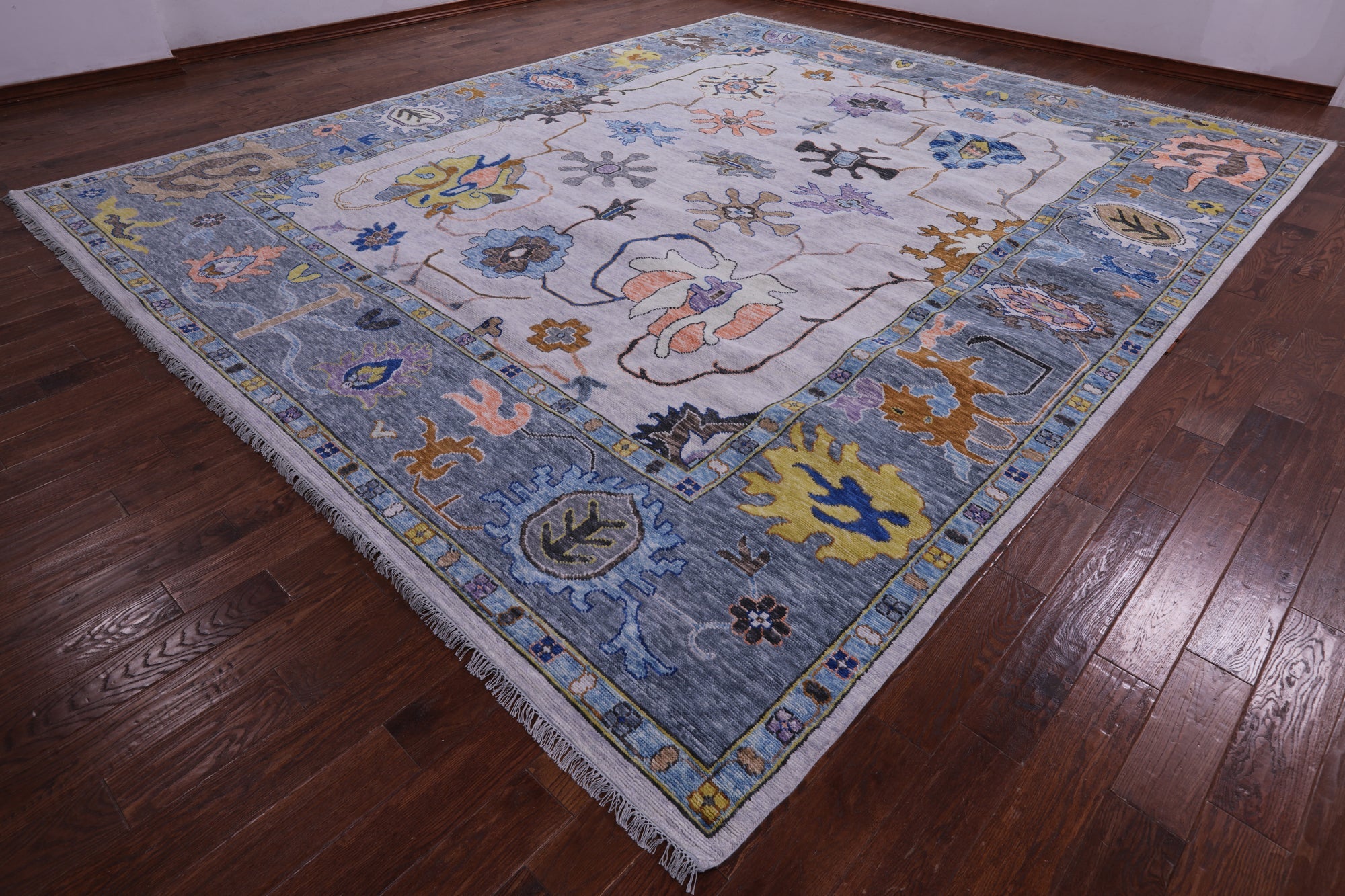 Grey Hand-Knotted Turkish Angora Oushak Rug 12' 3" X 14' 10" - Q19742 is backordered and will ship as soon as it is back in stock.