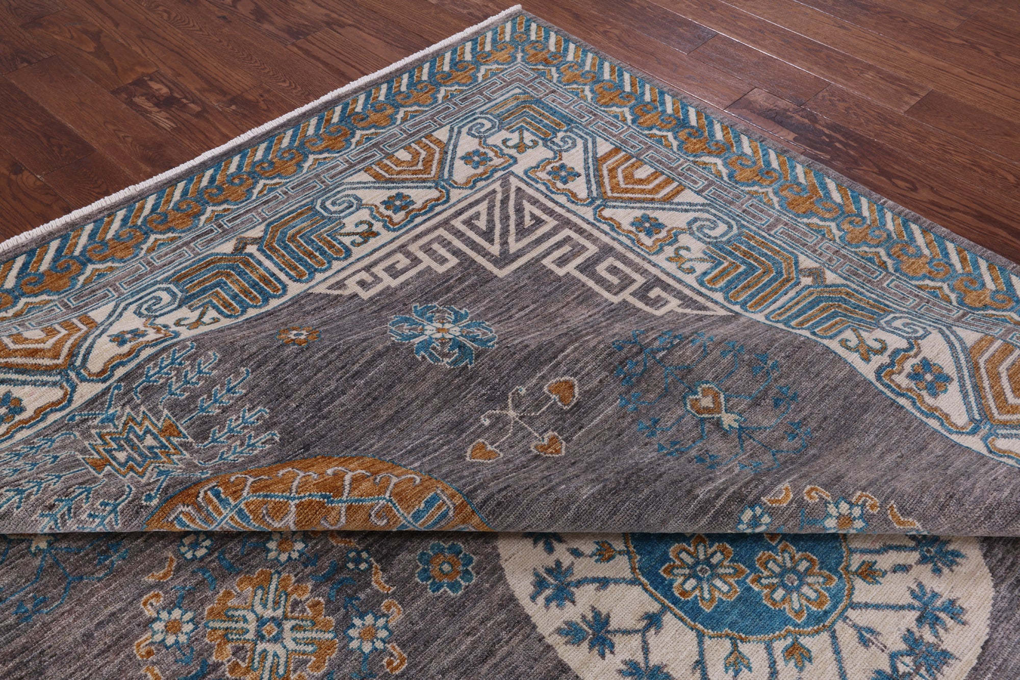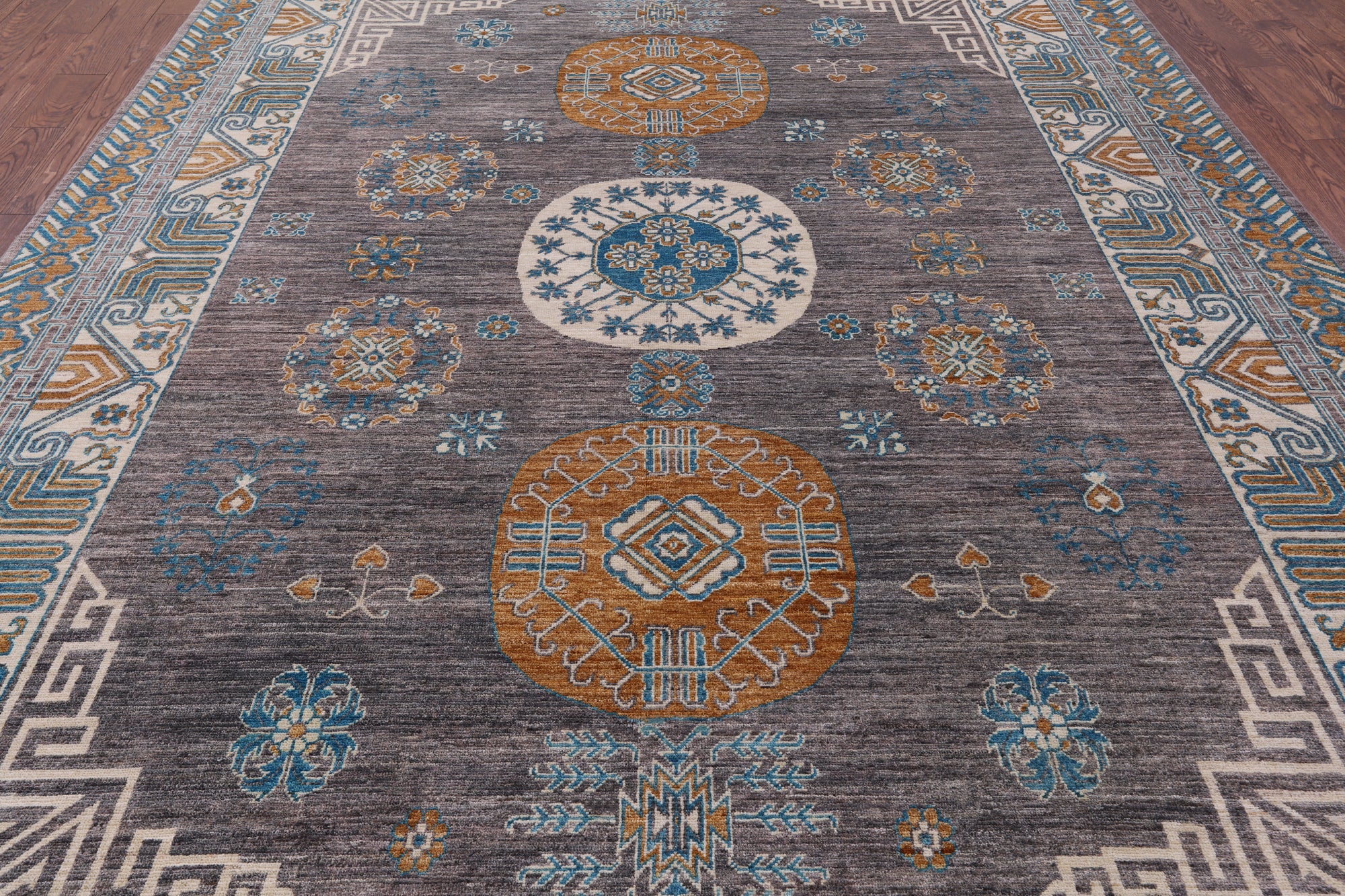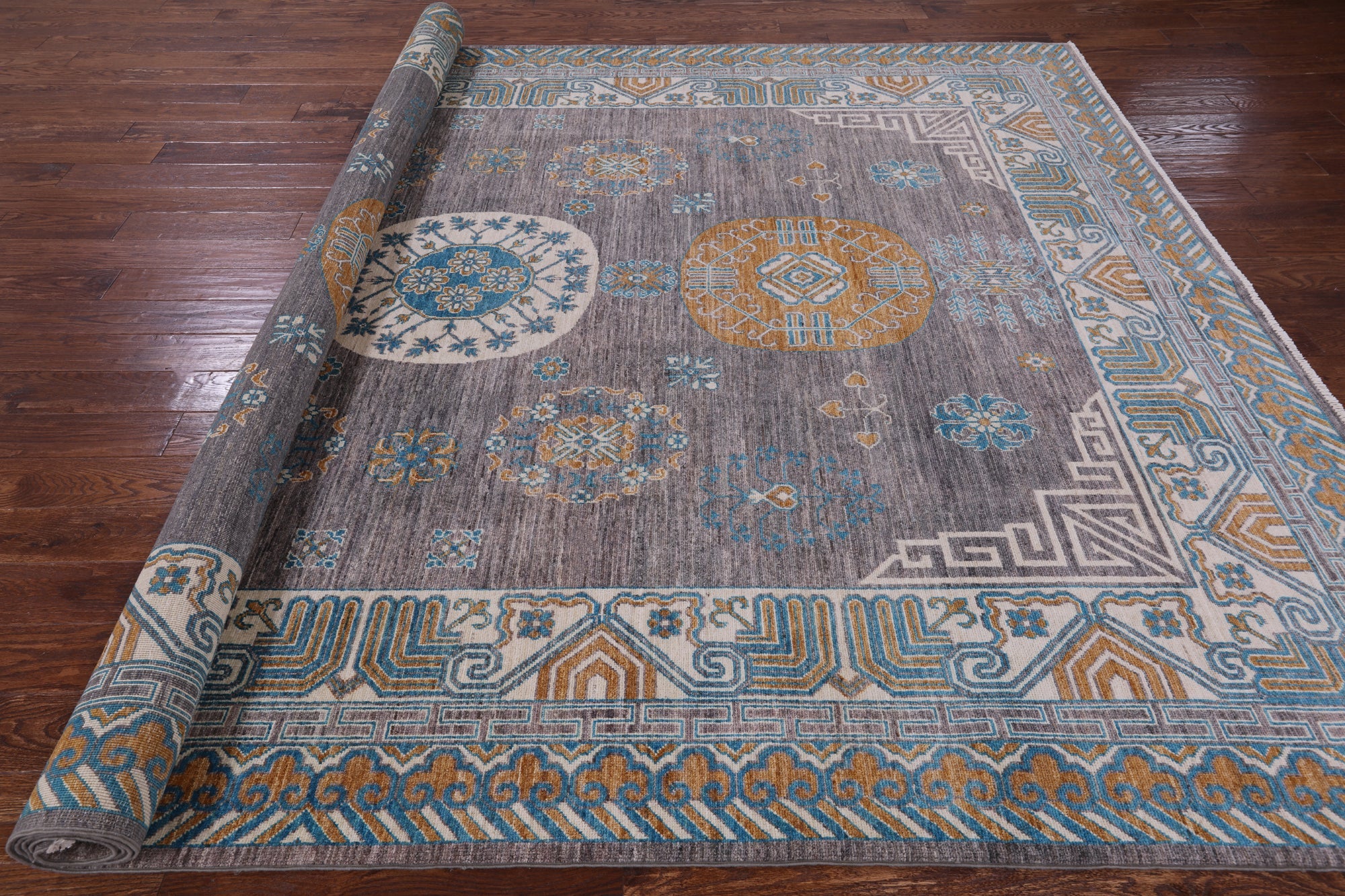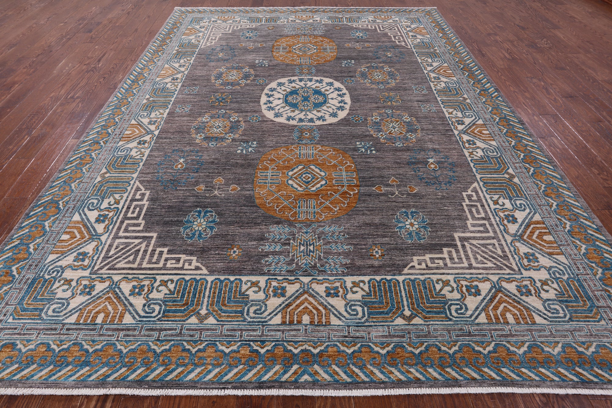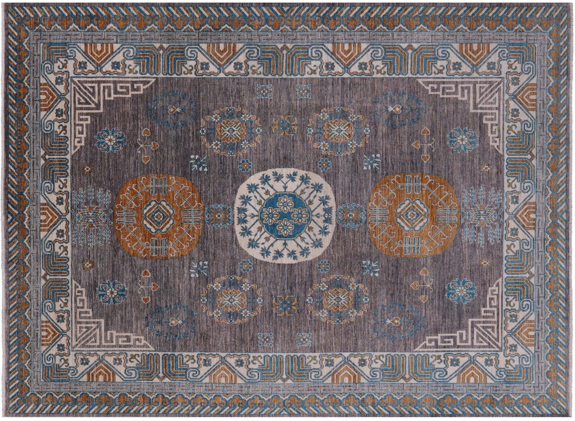 Grey Handmade Khotan Wool Rug 9' 1" X 12' 3" - Q9435 is backordered and will ship as soon as it is back in stock.