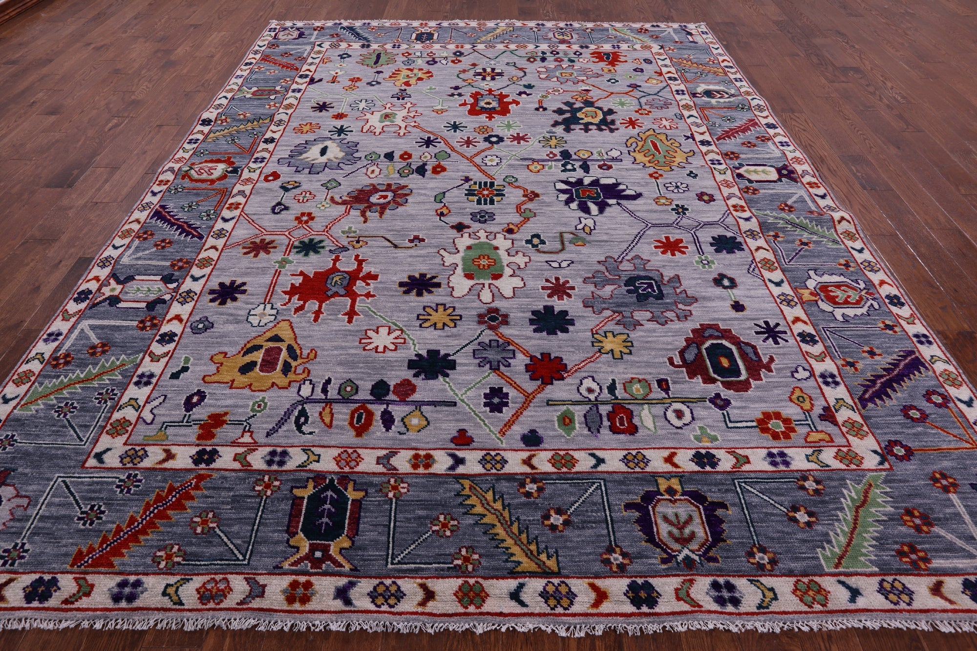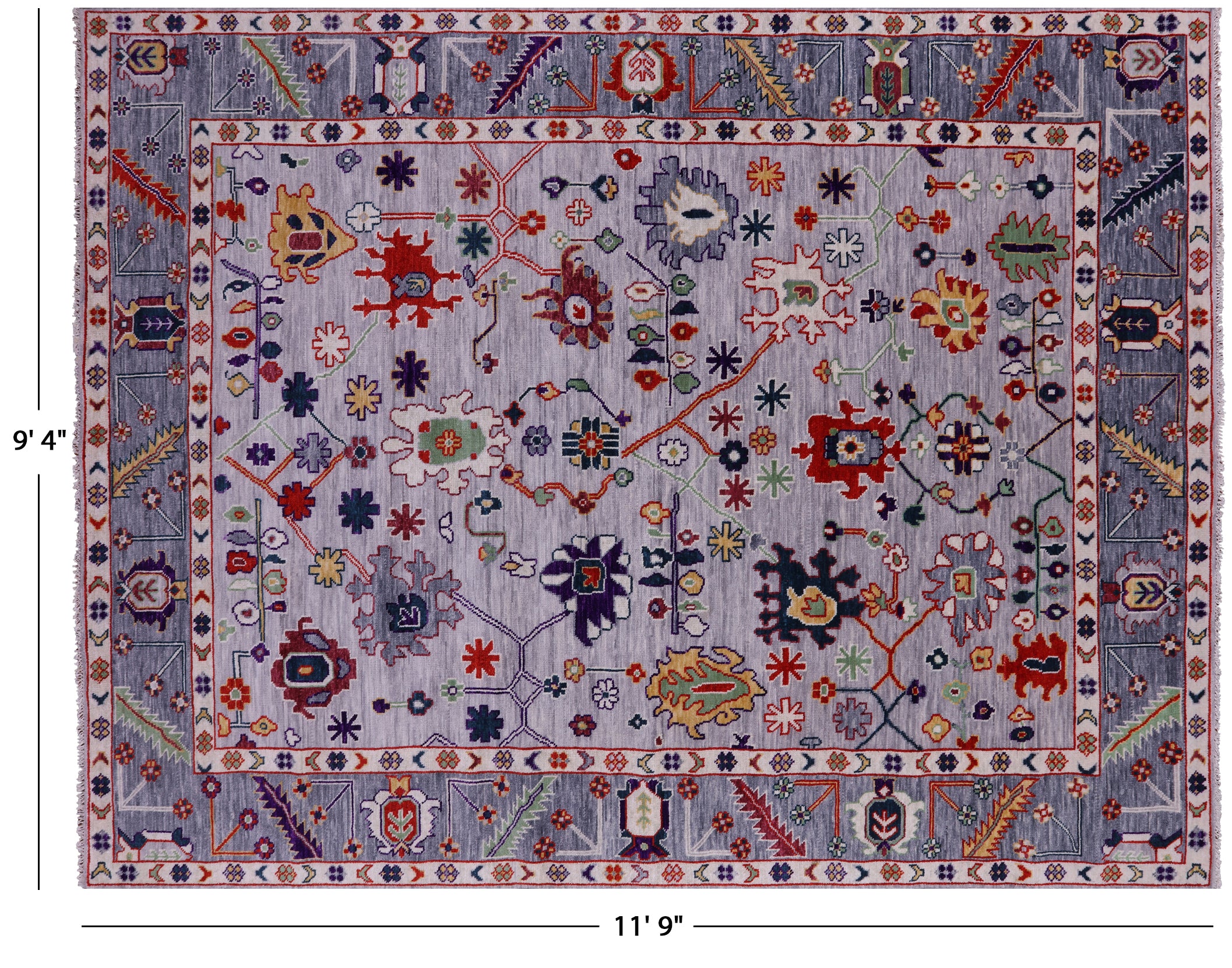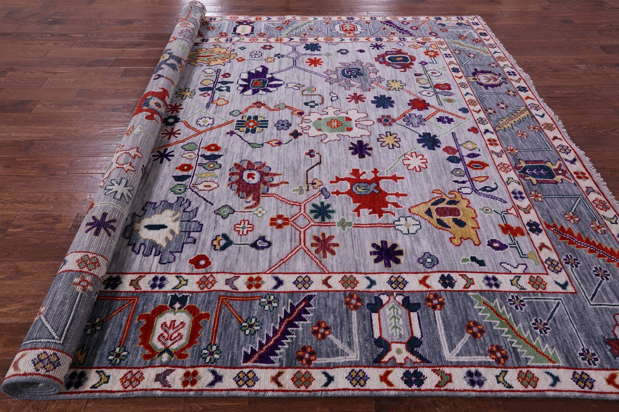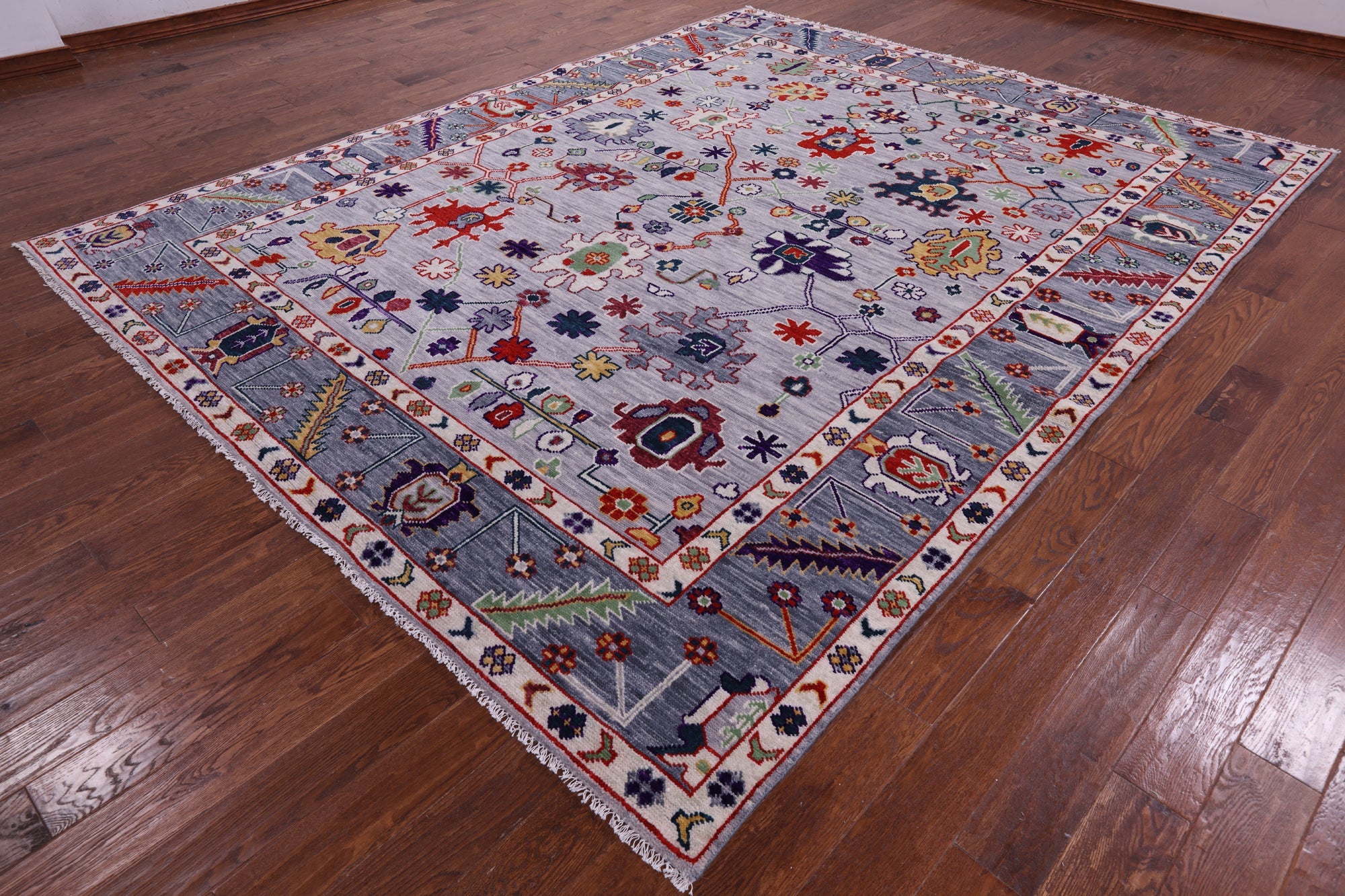 Grey 9' 4" X 11' 9" Handmade Turkish Angora Oushak Rug - Q11729