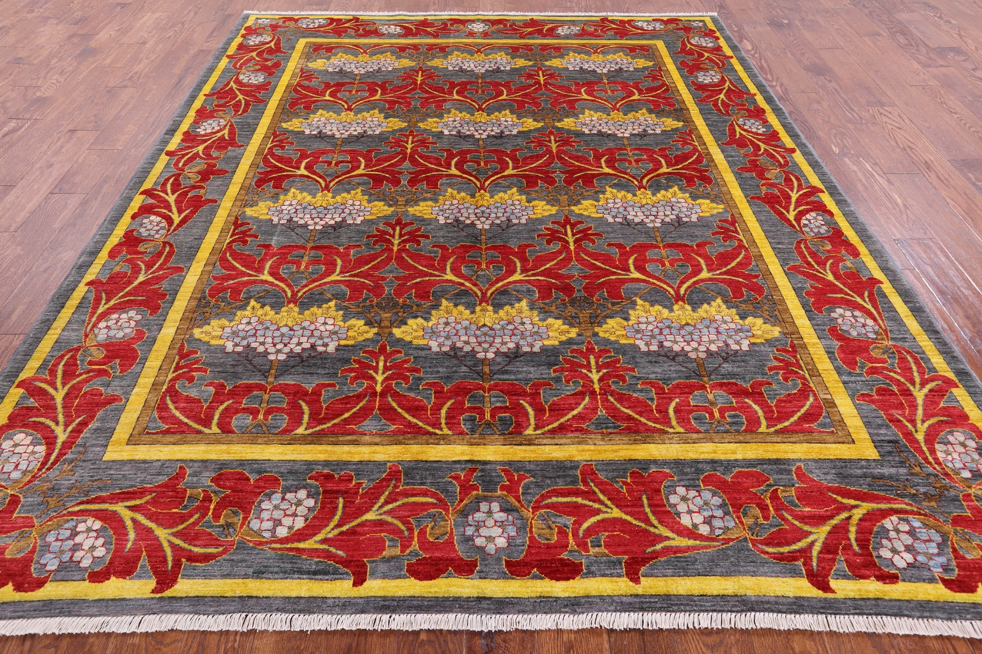 Grey 7' 10" X 9' 10" Handmade William Morris Wool Rug - Q6518 is backordered and will ship as soon as it is back in stock.
