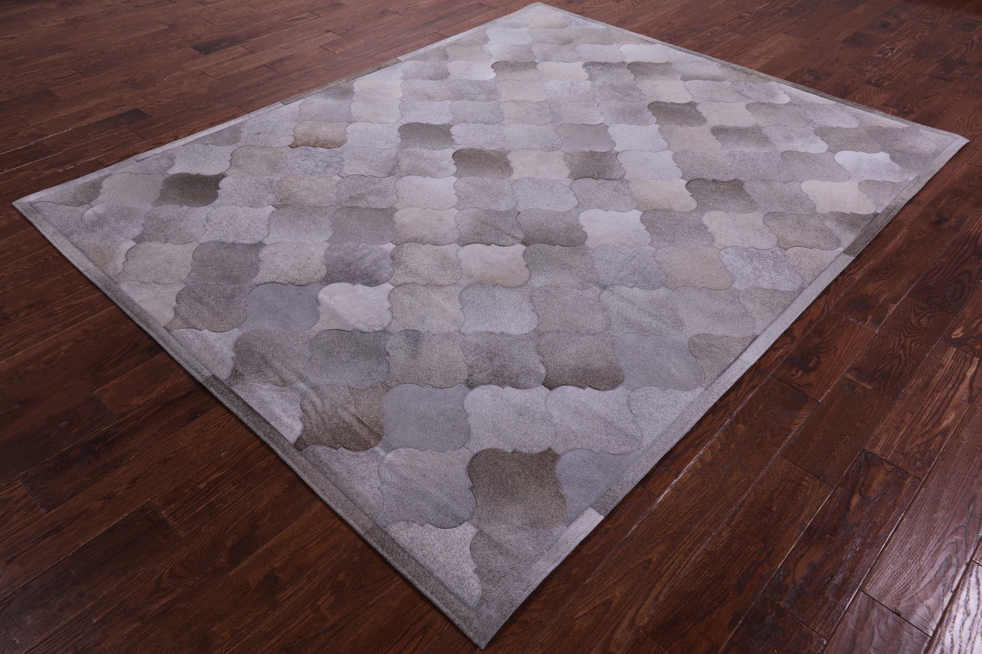 6' 8" X 8' 4" Grey Natural Cowhide Hand Stitched Rug - C3468