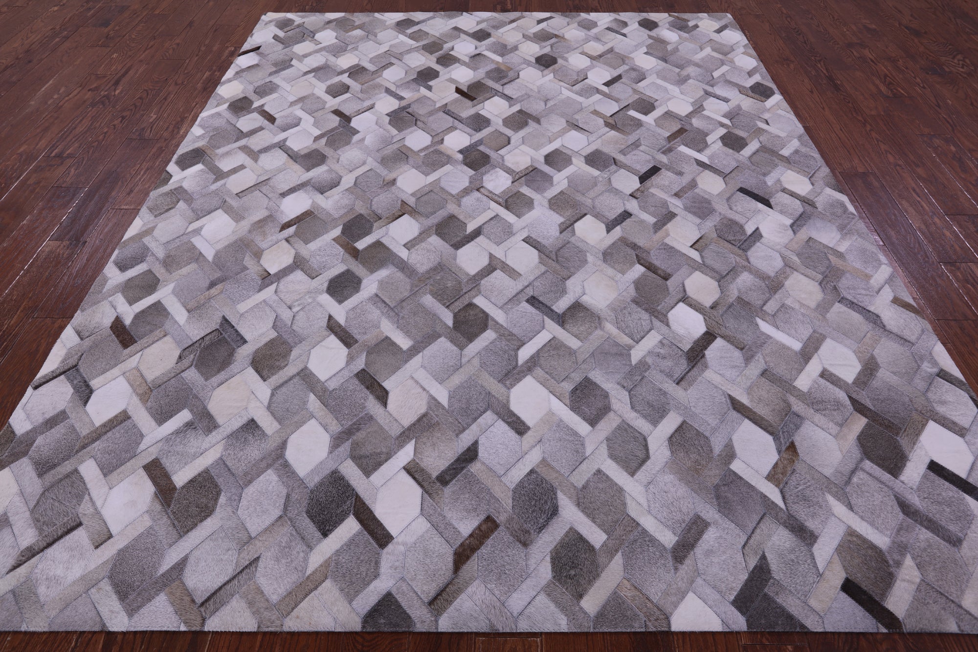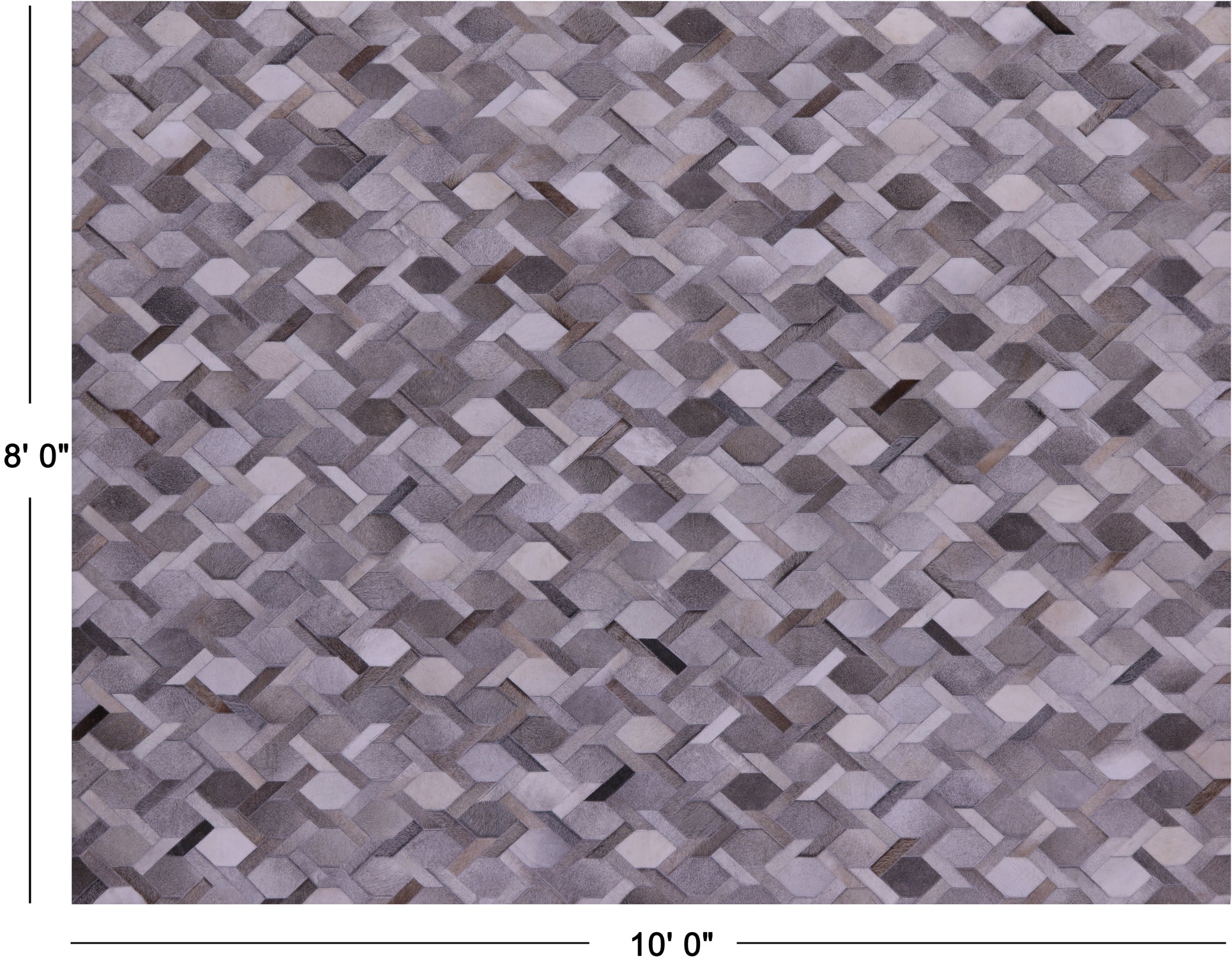 8' 0" X 10' 0" Grey Natural Cowhide Hand Stitched Rug - C5727