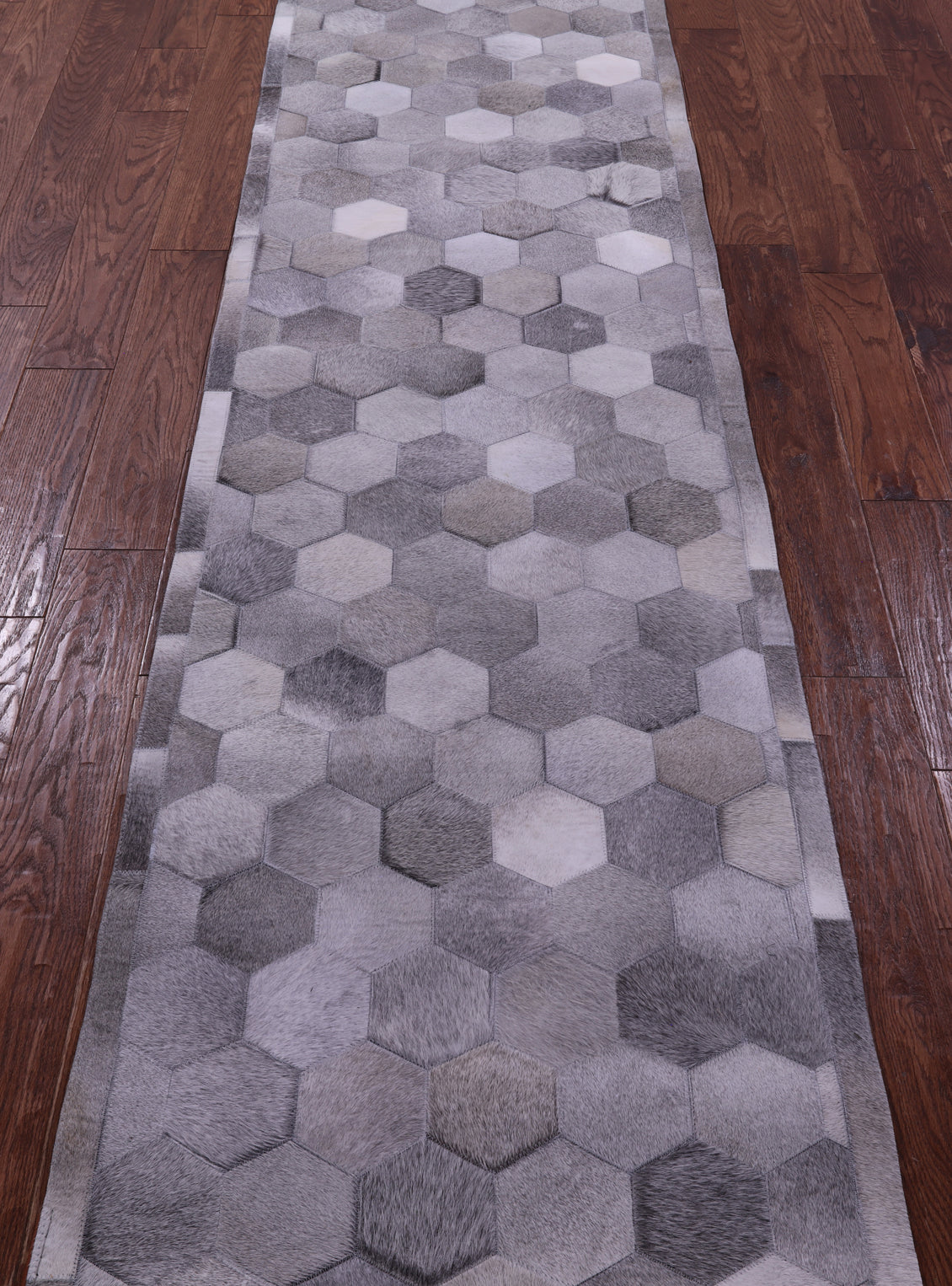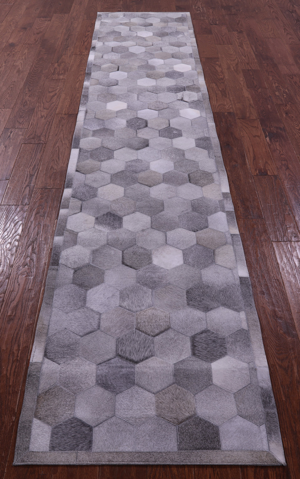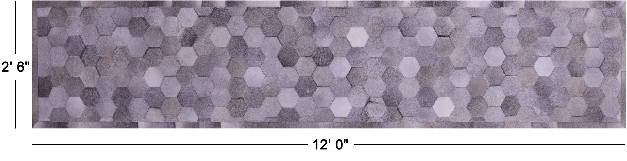 2' 6" X 12' 0" Grey Natural Cowhide Hand Stitched Runner Rug - C5765