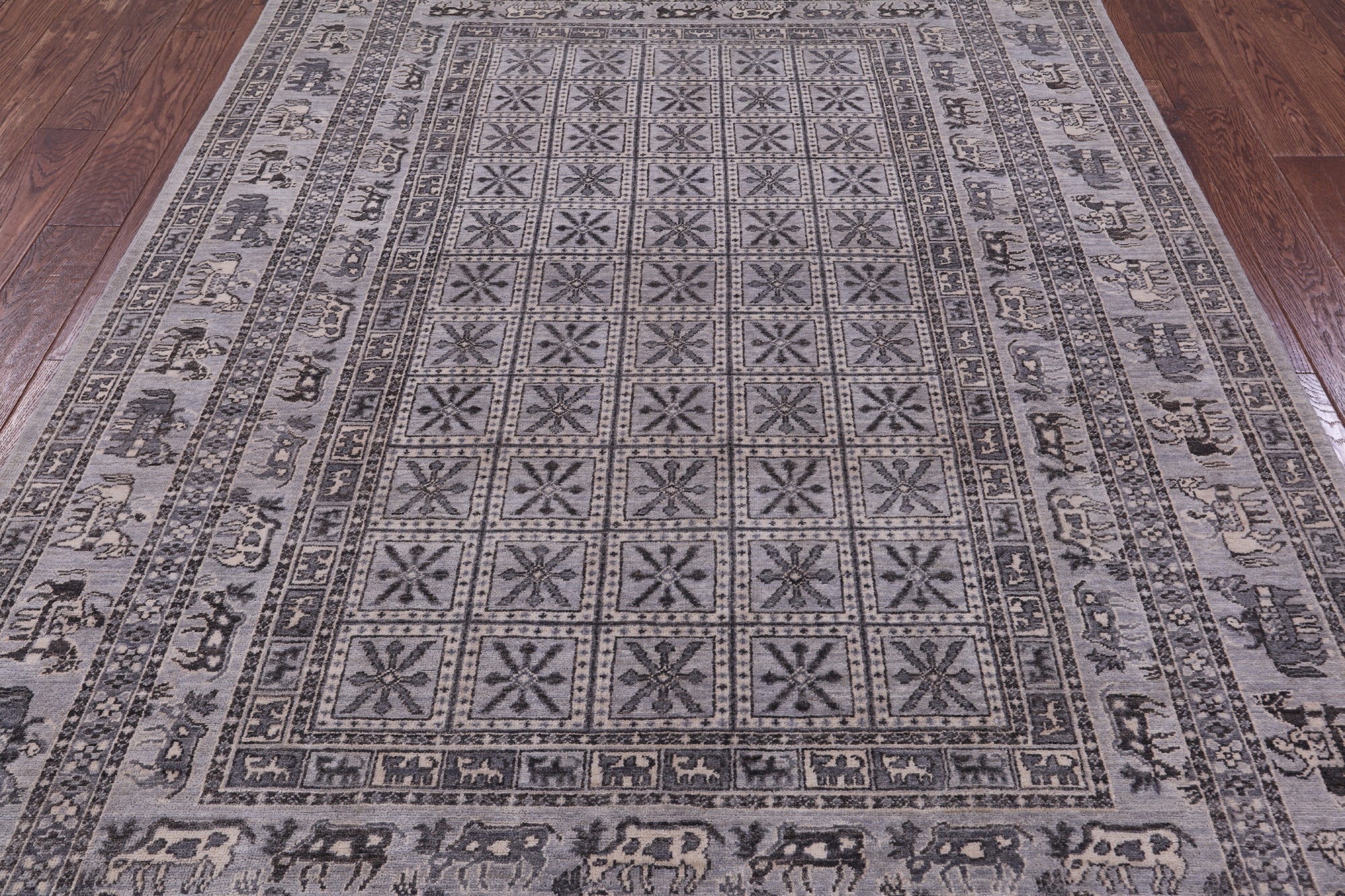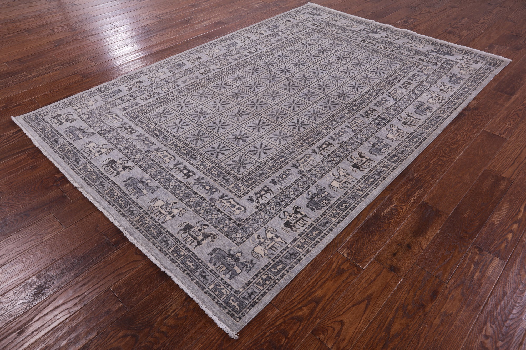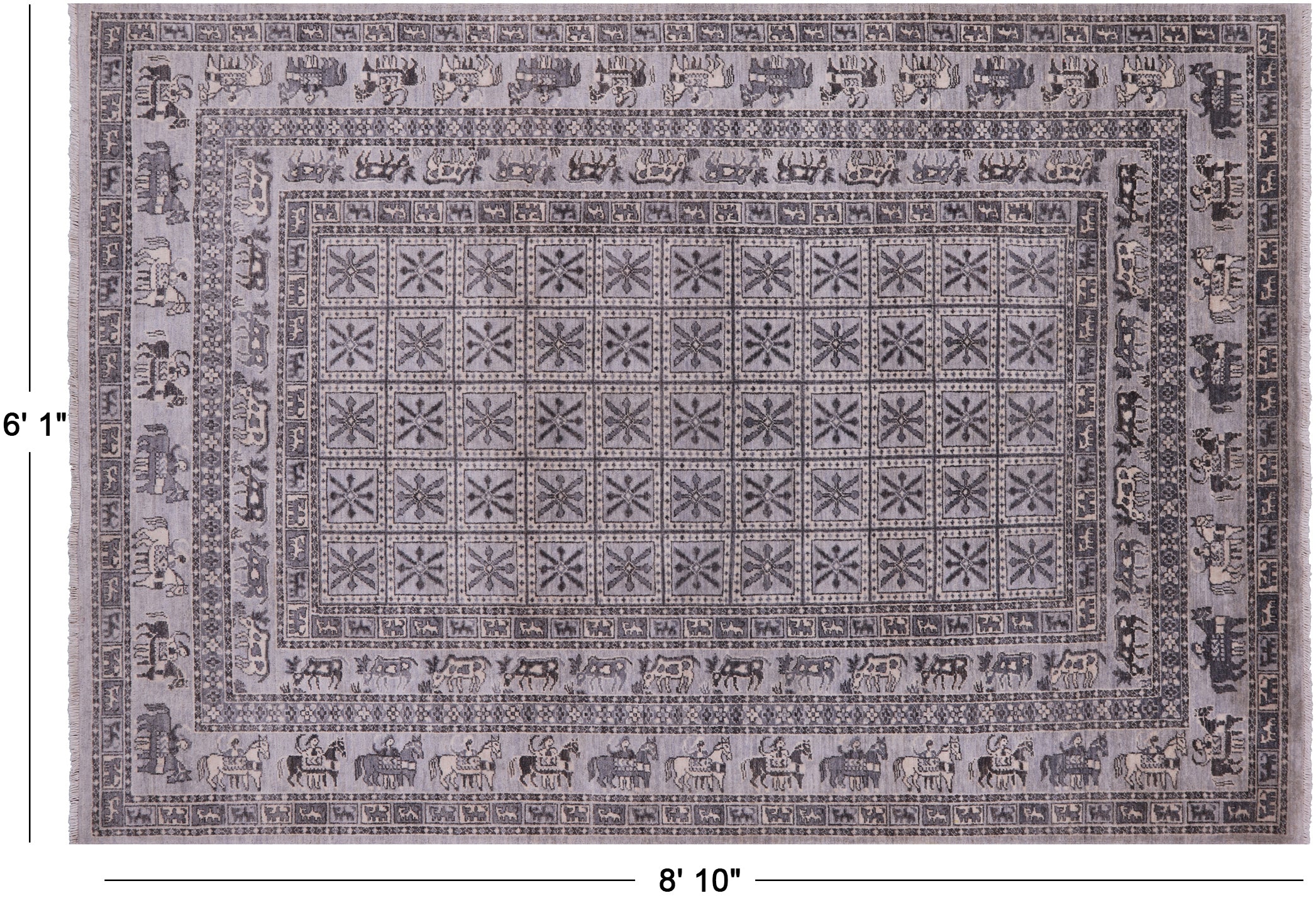 Grey 6' 1" X 8' 10" Pazyryk Historical Design Handmade Wool Rug - Q14590