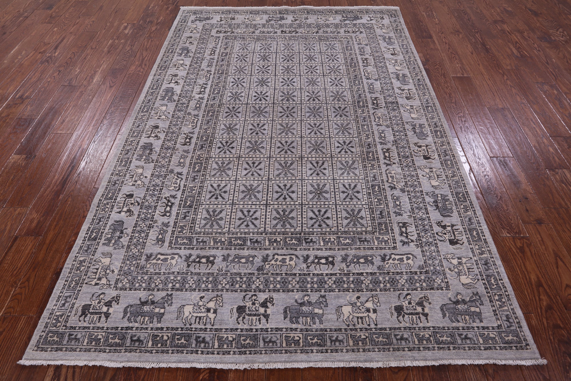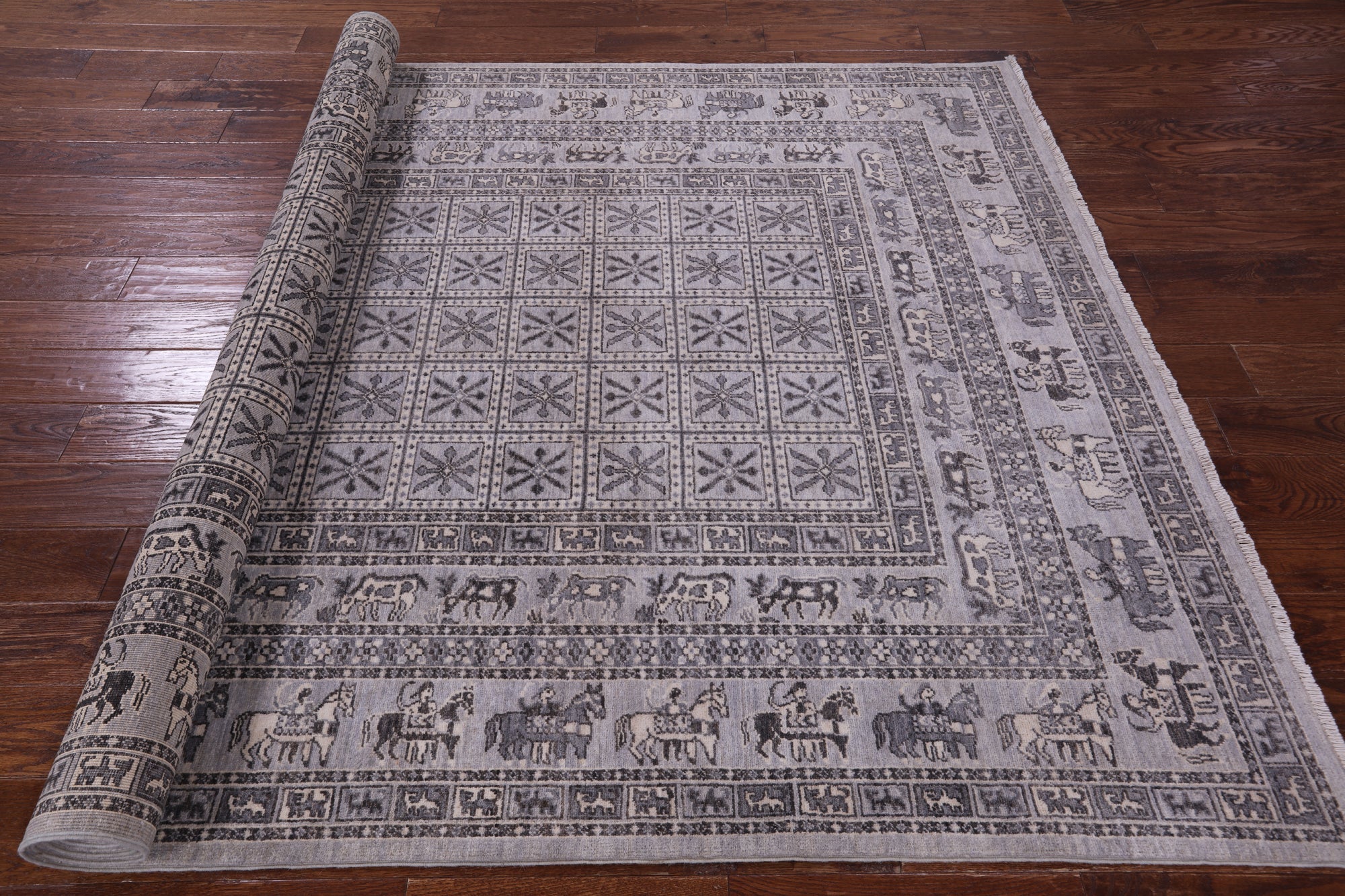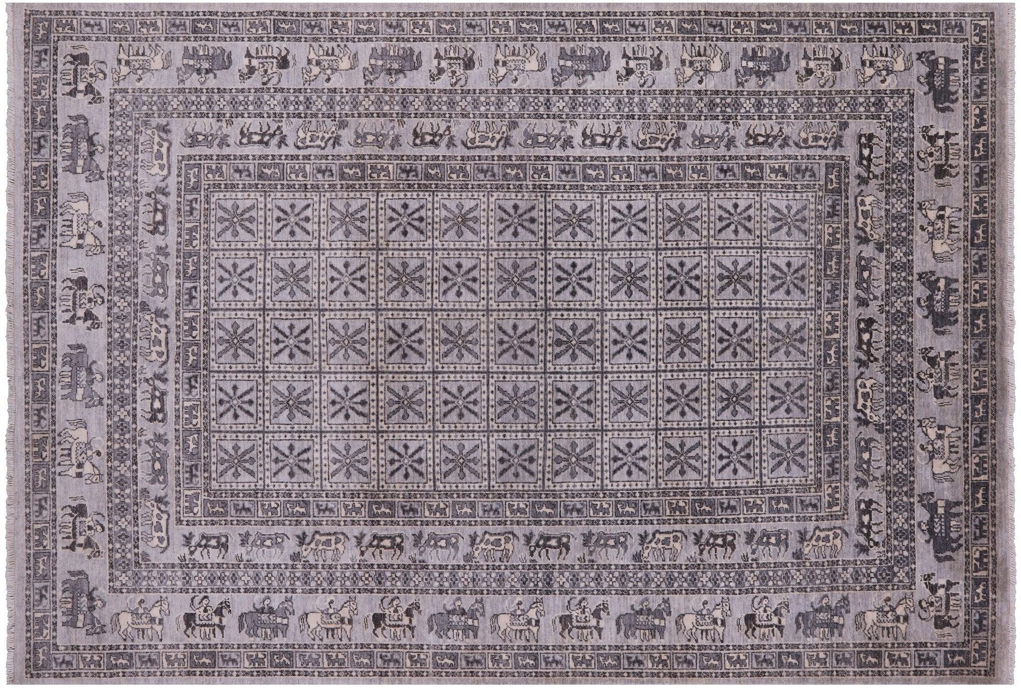 Grey 6' 1" X 8' 10" Pazyryk Historical Design Handmade Wool Rug - Q14590
