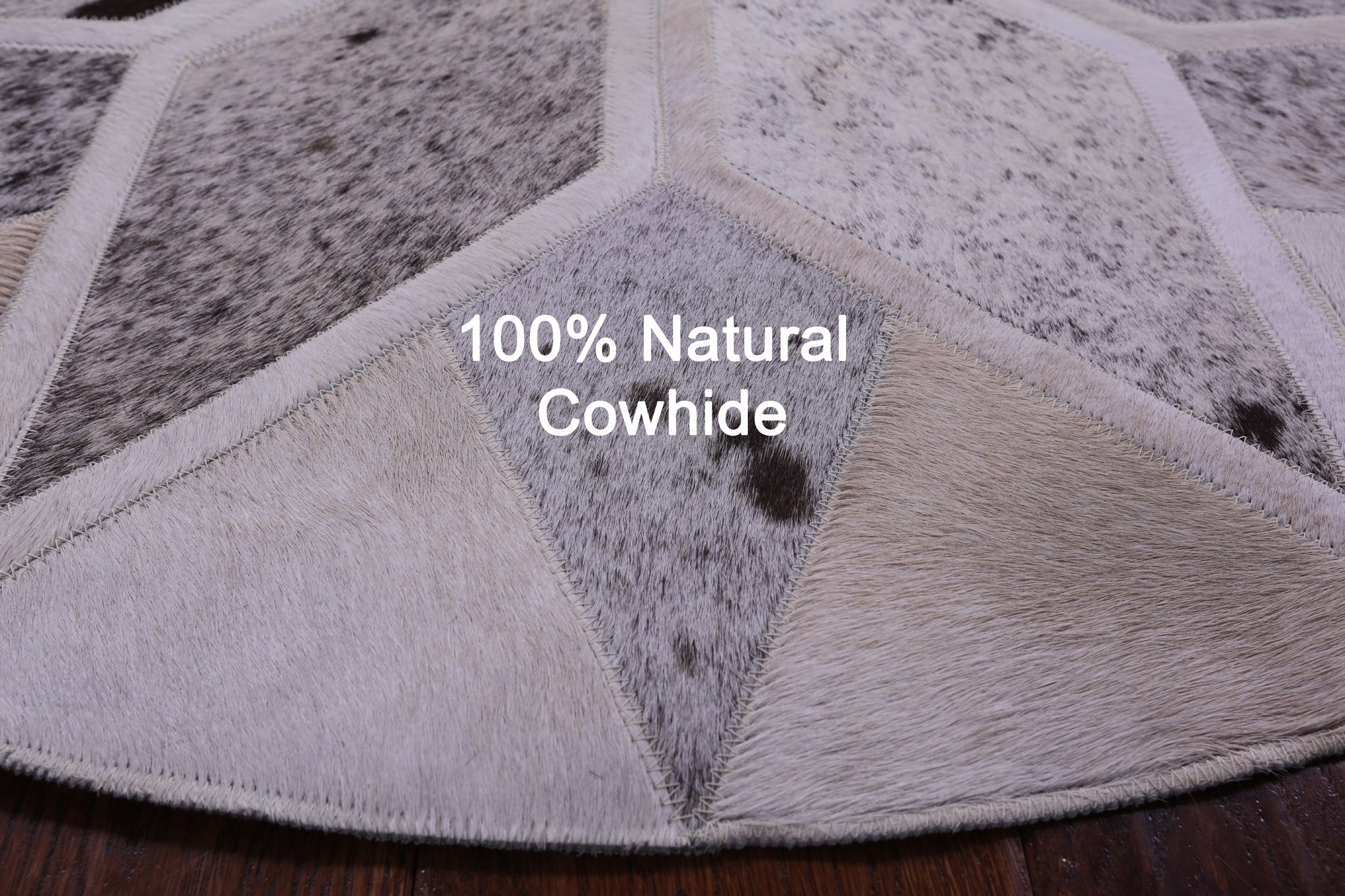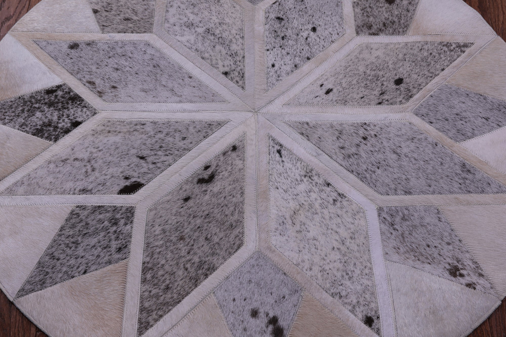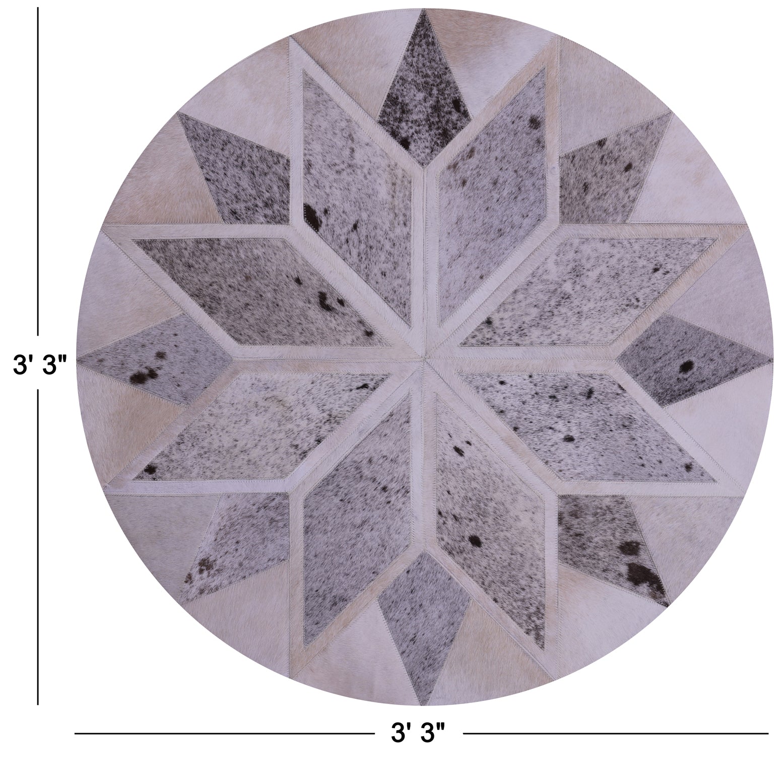 3' 3" X 3' 3" Grey Round Star Natural Cowhide Hand Stitched Rug - C3496