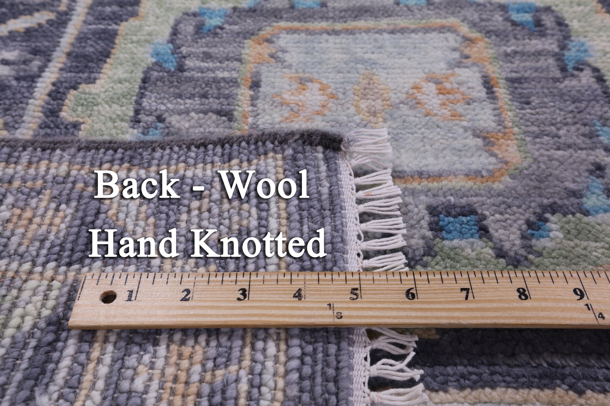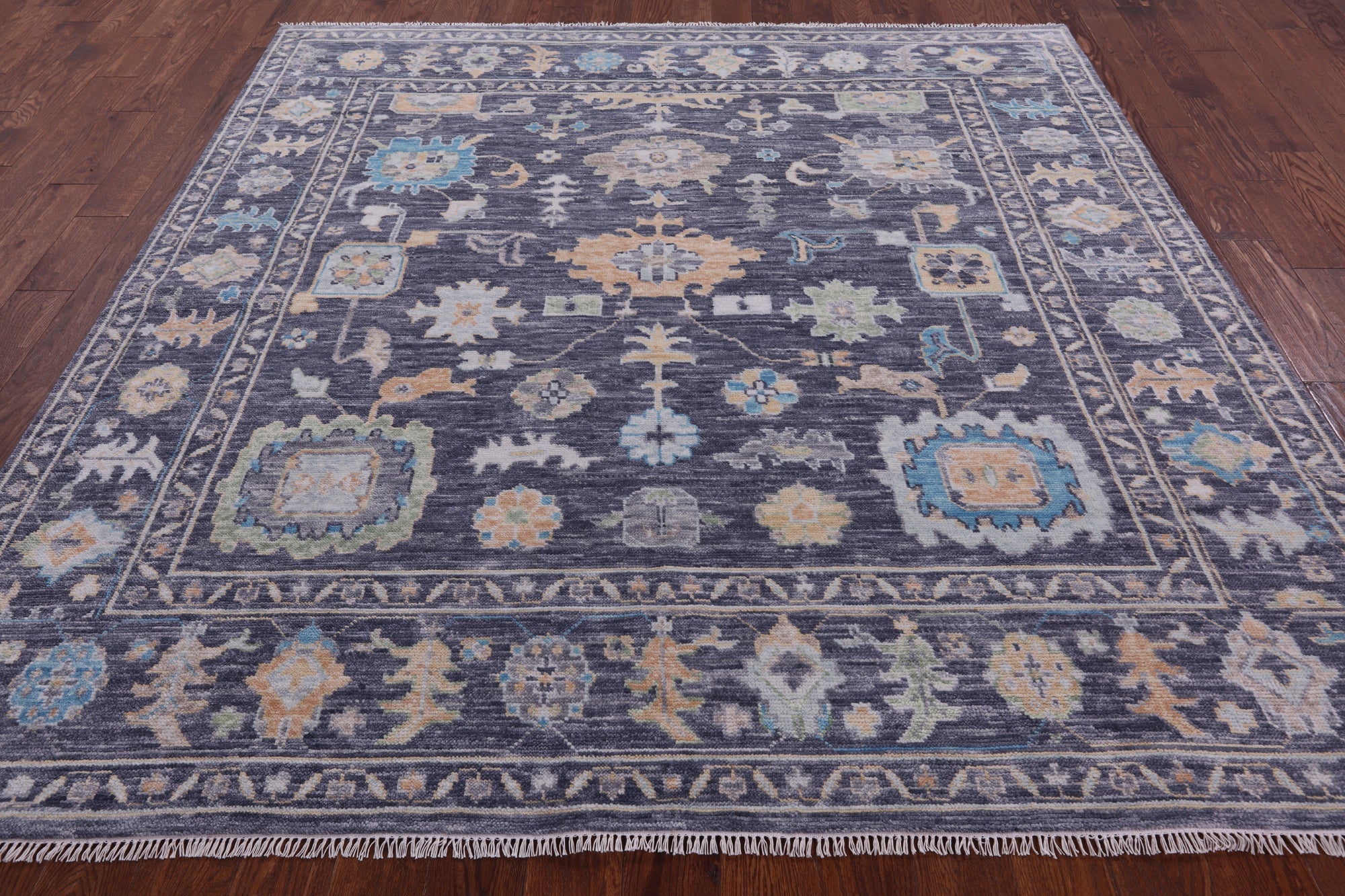 Grey 8' Square Hand-Knotted Turkish Angora Oushak Wool Rug - Q13374 is backordered and will ship as soon as it is back in stock.