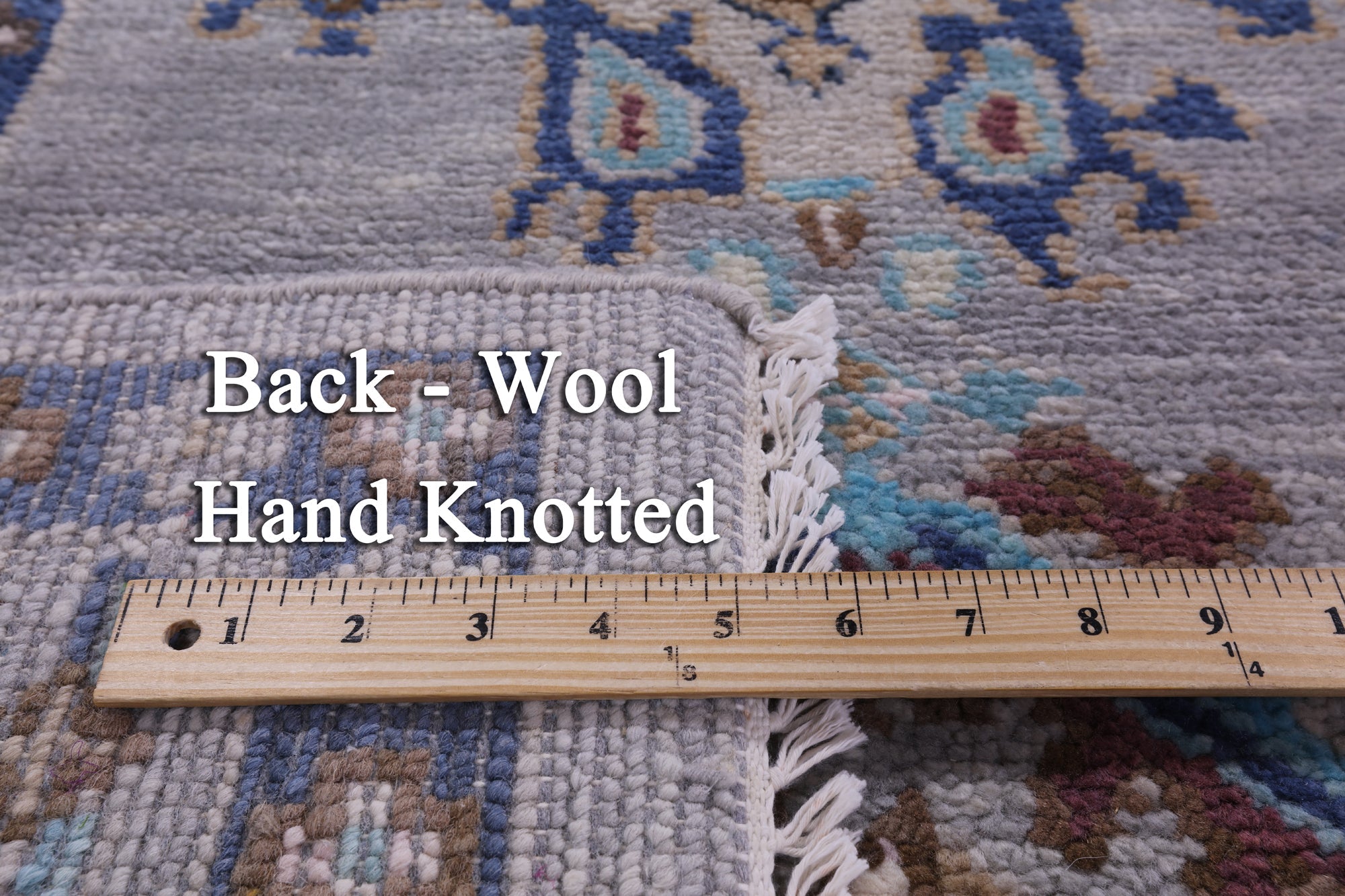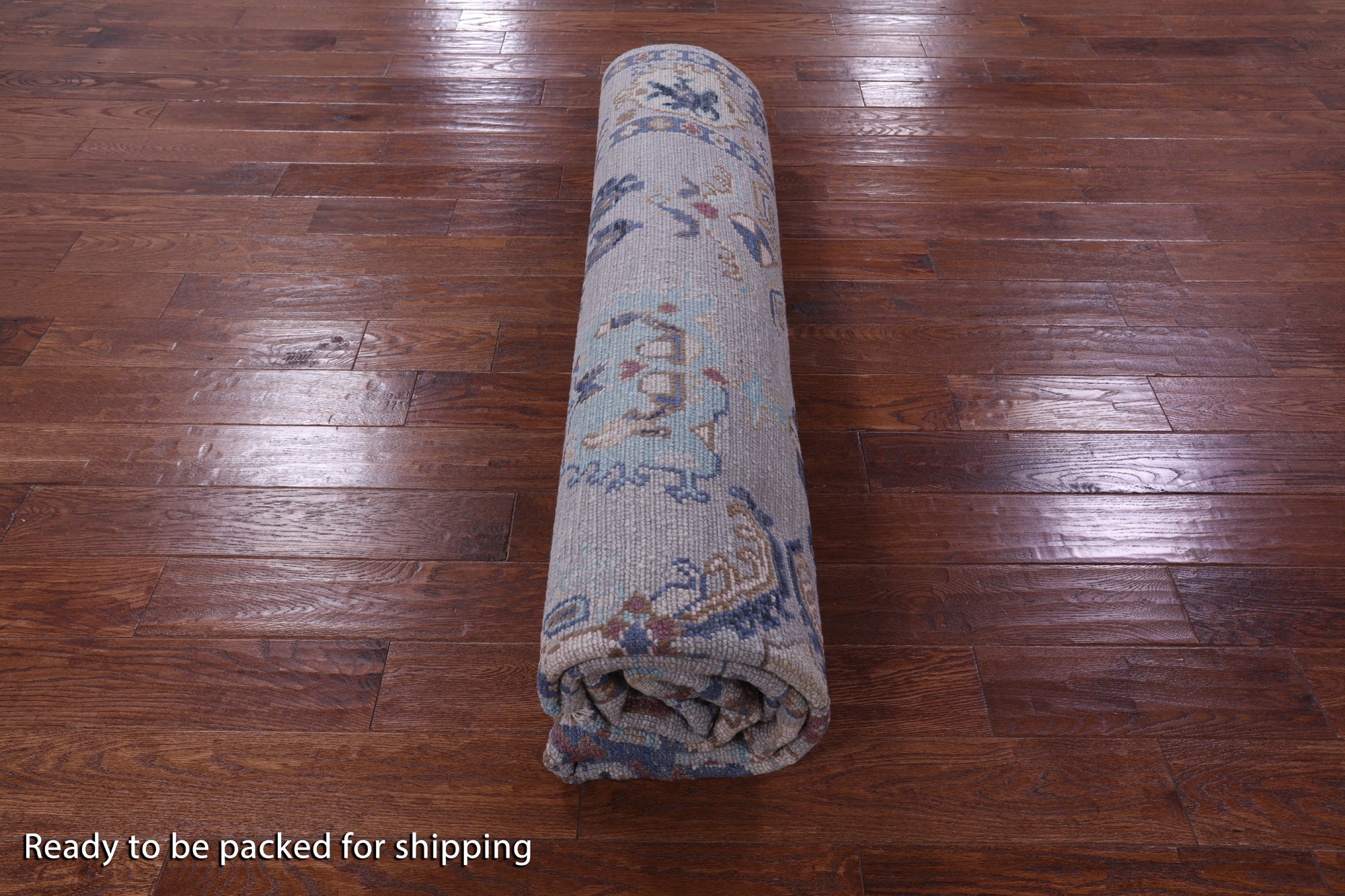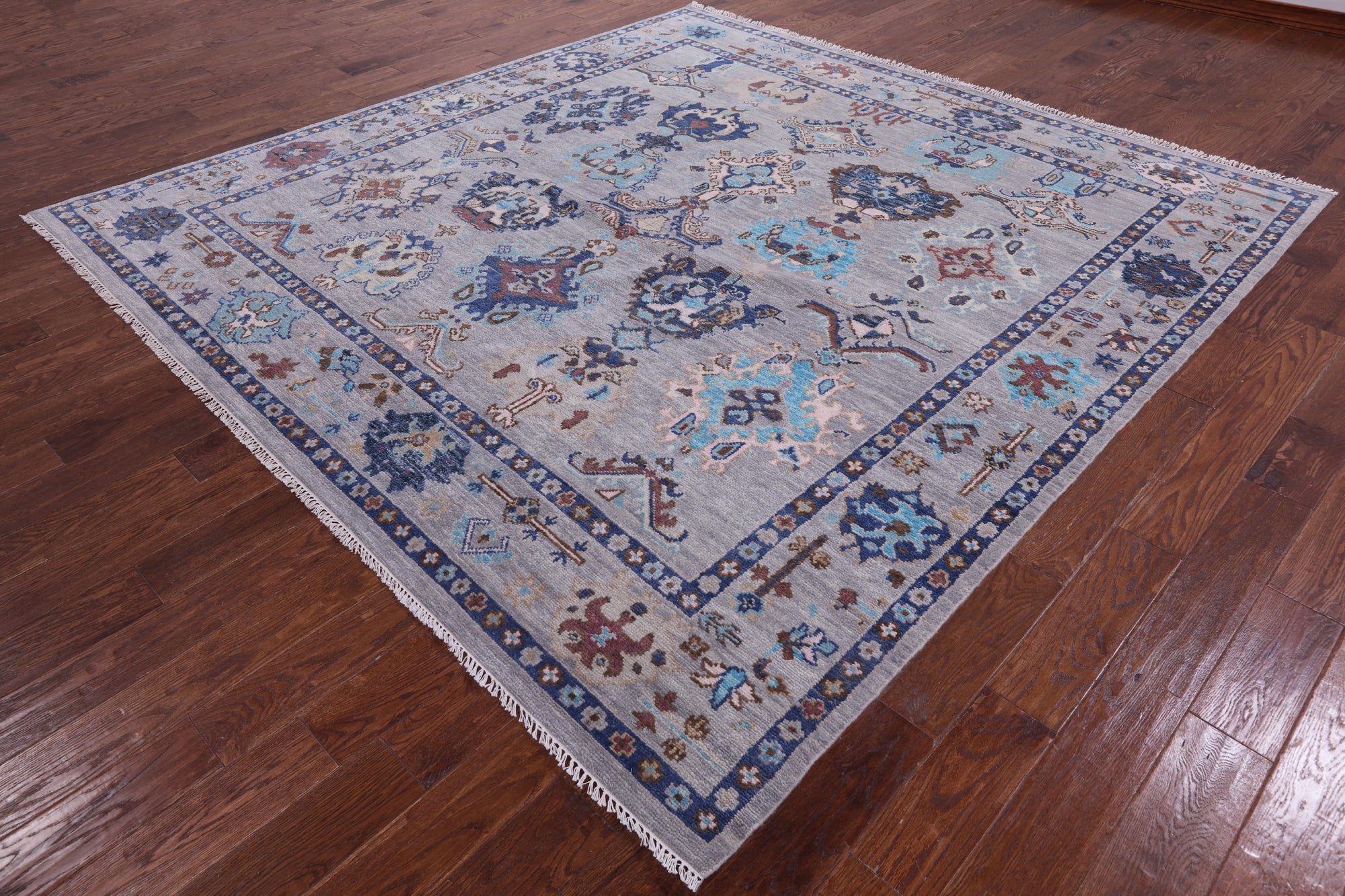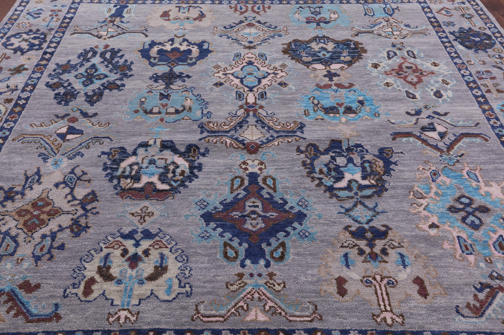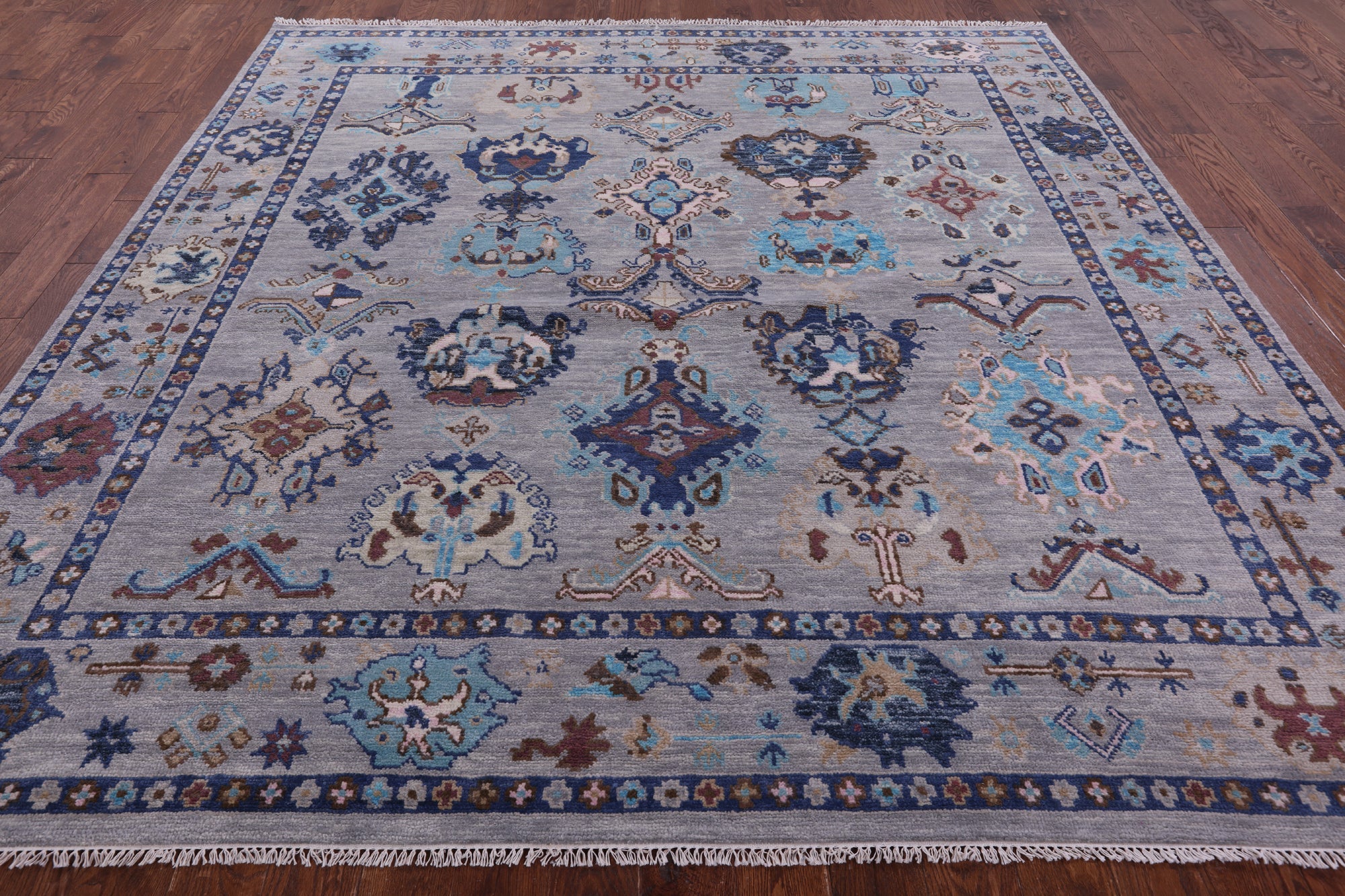 Grey 9' Square Handmade Turkish Angora Oushak Wool Rug - Q13574