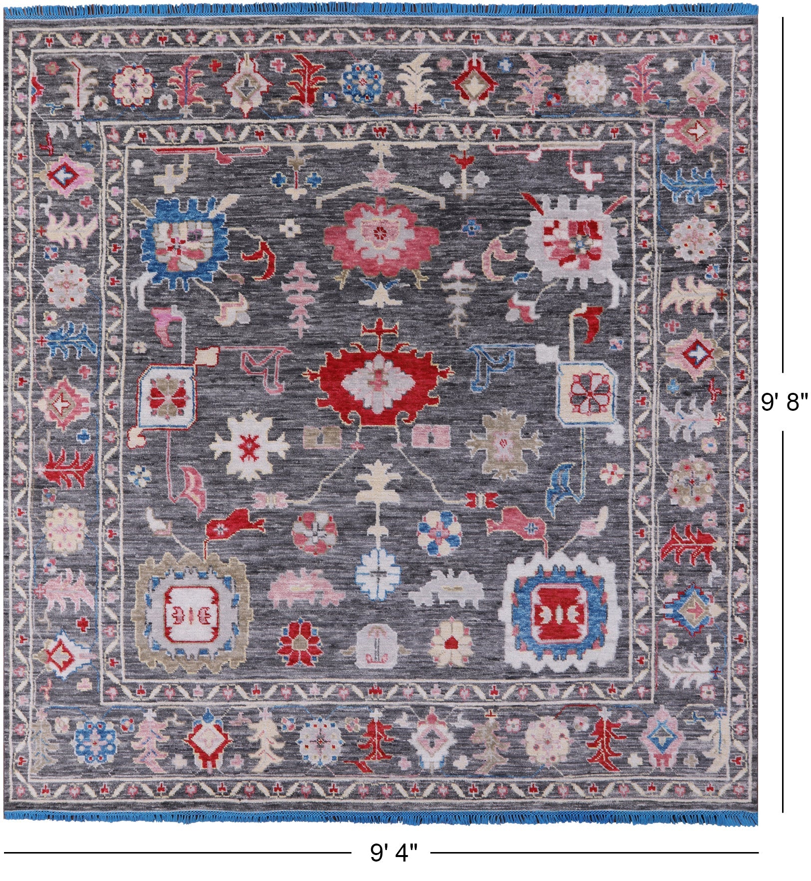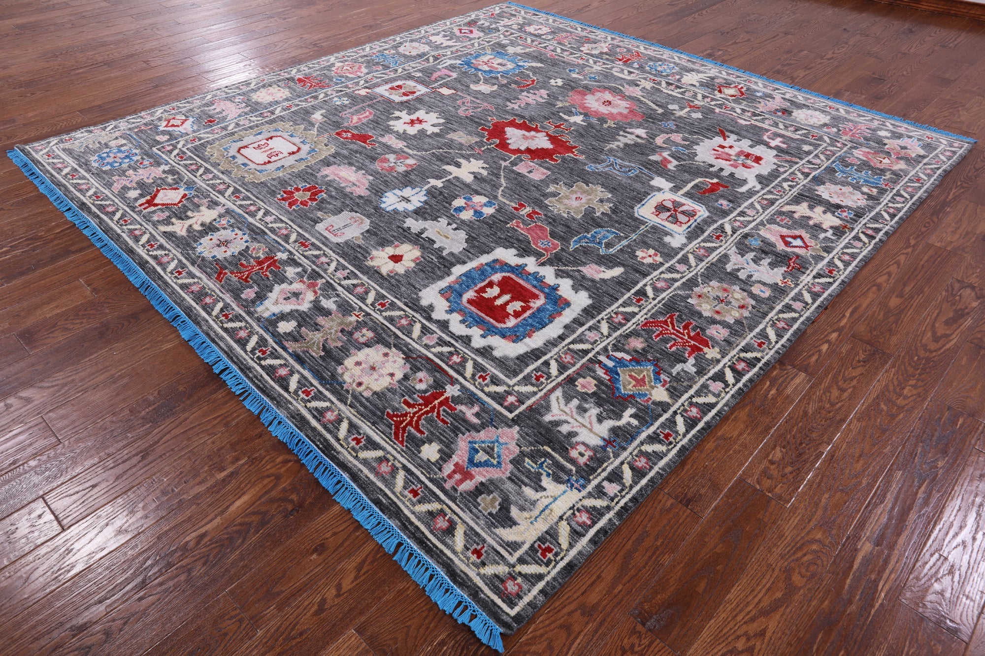 Grey Square Handmade Turkish Angora Oushak Wool Rug 9' 4" X 9' 8" - Q9178