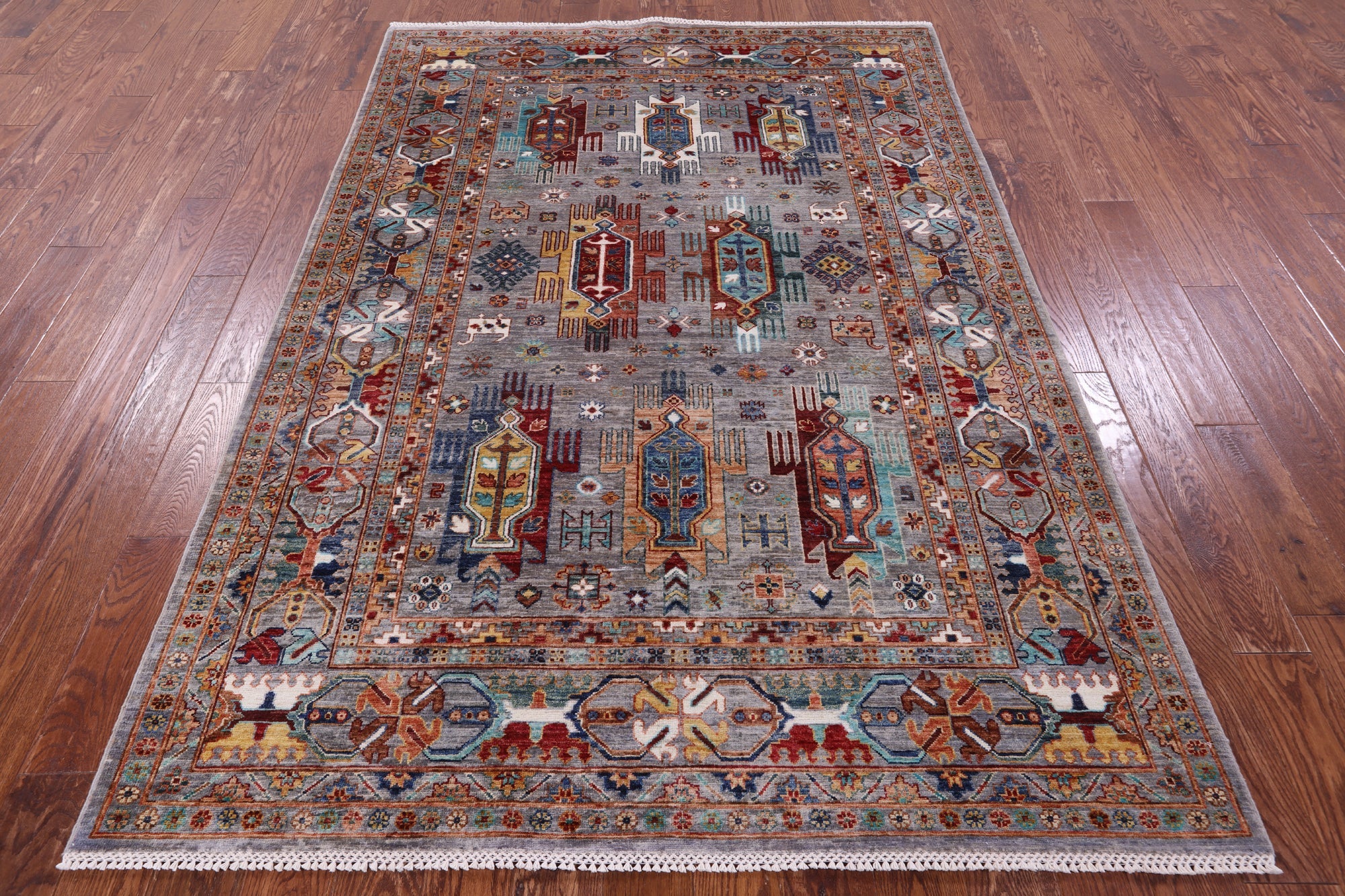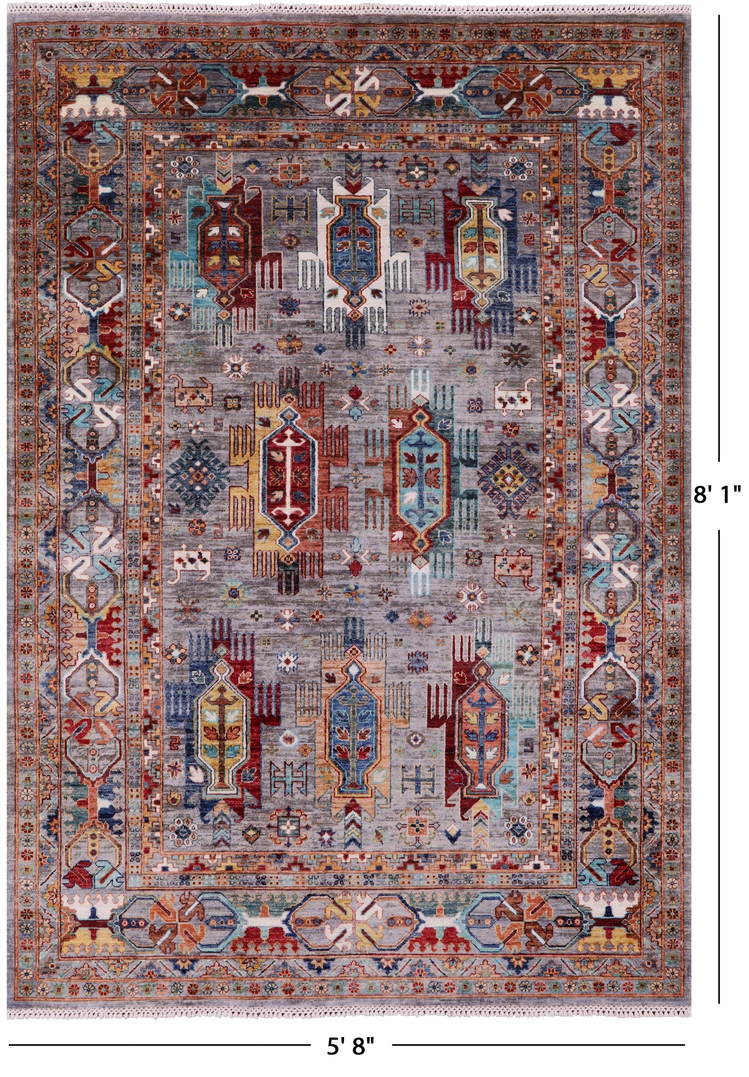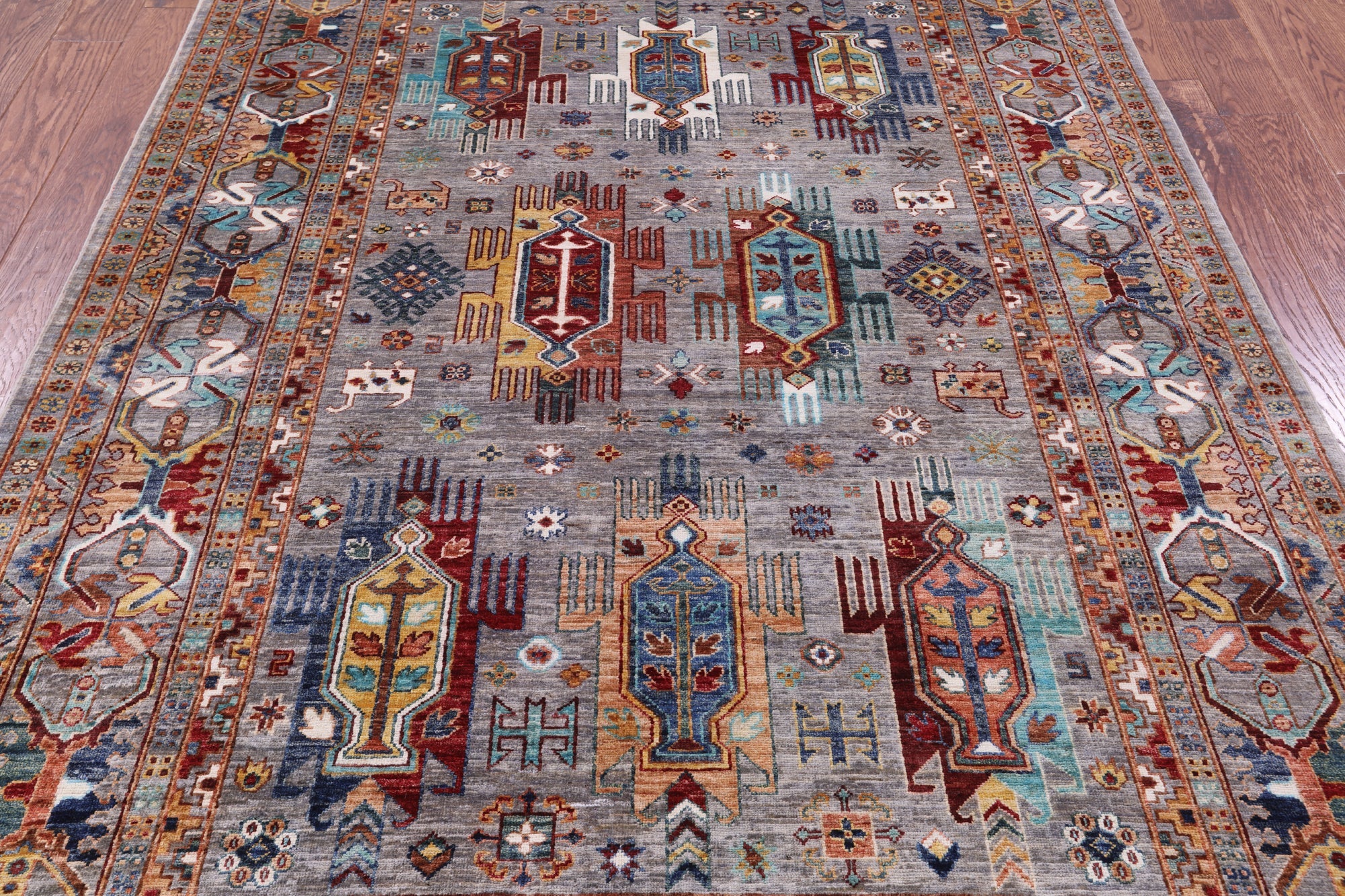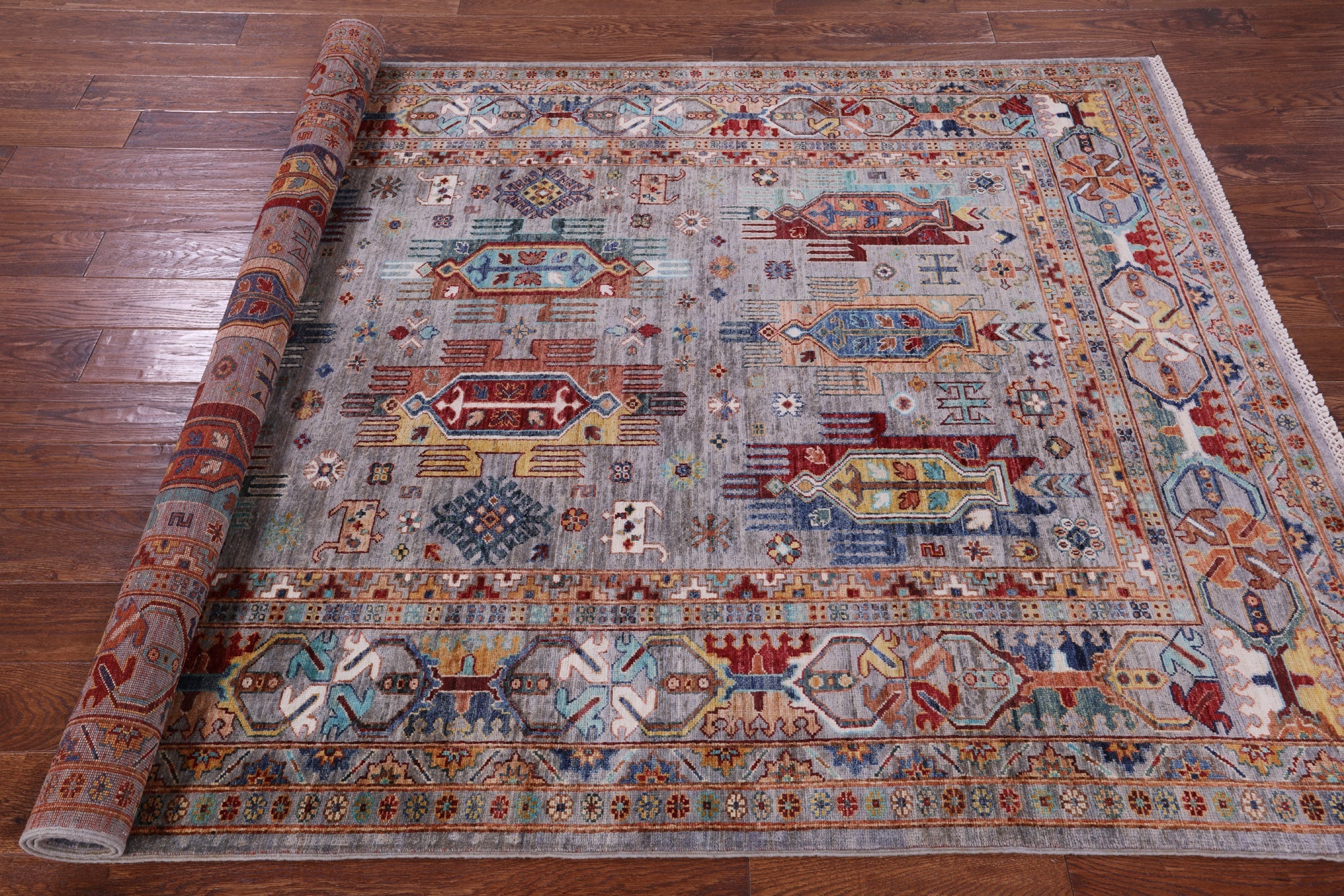 Grey 5' 8" X 8' 1" Tribal Fine Serapi Handmade Wool Rug - Q18549 is backordered and will ship as soon as it is back in stock.