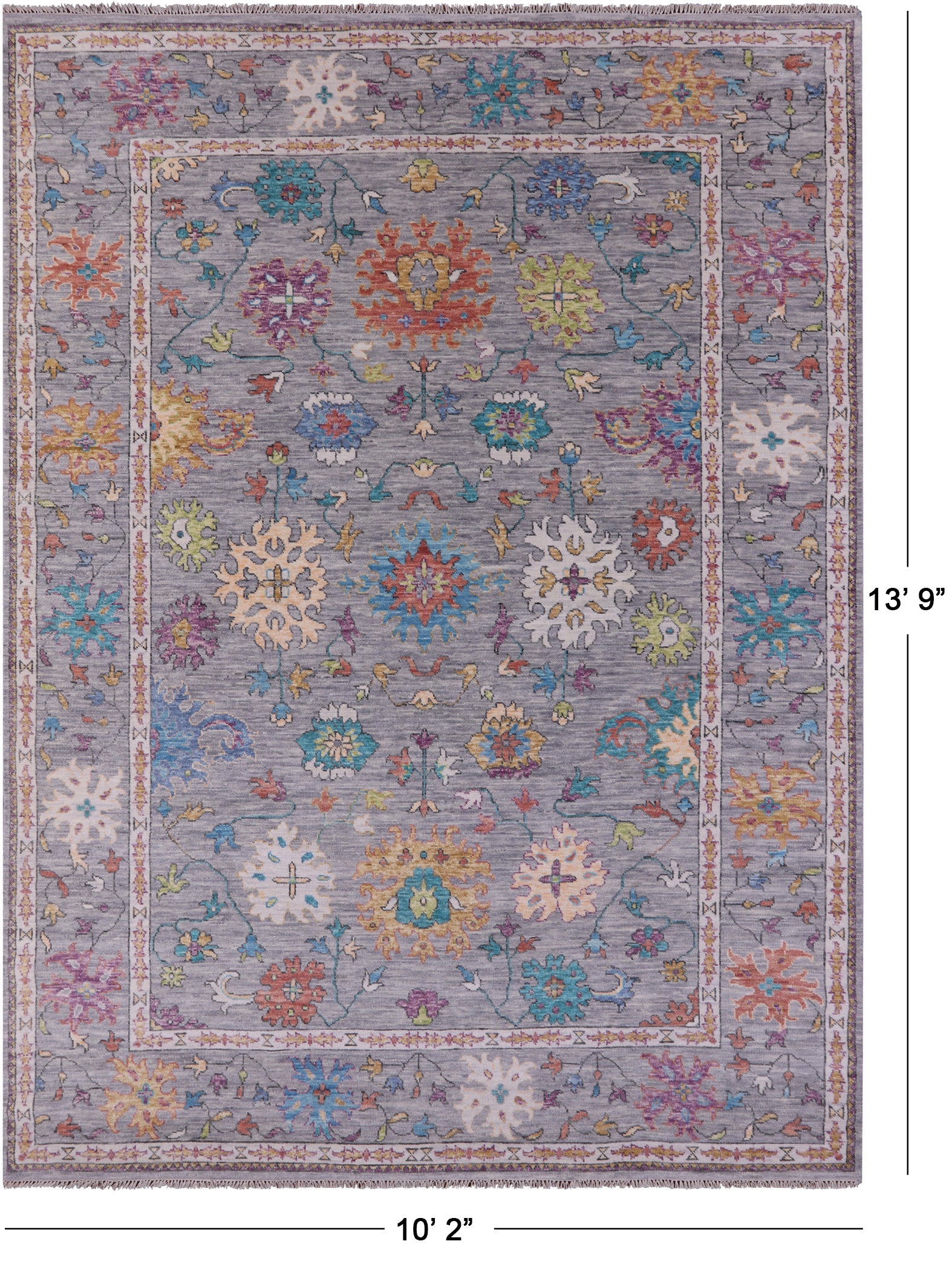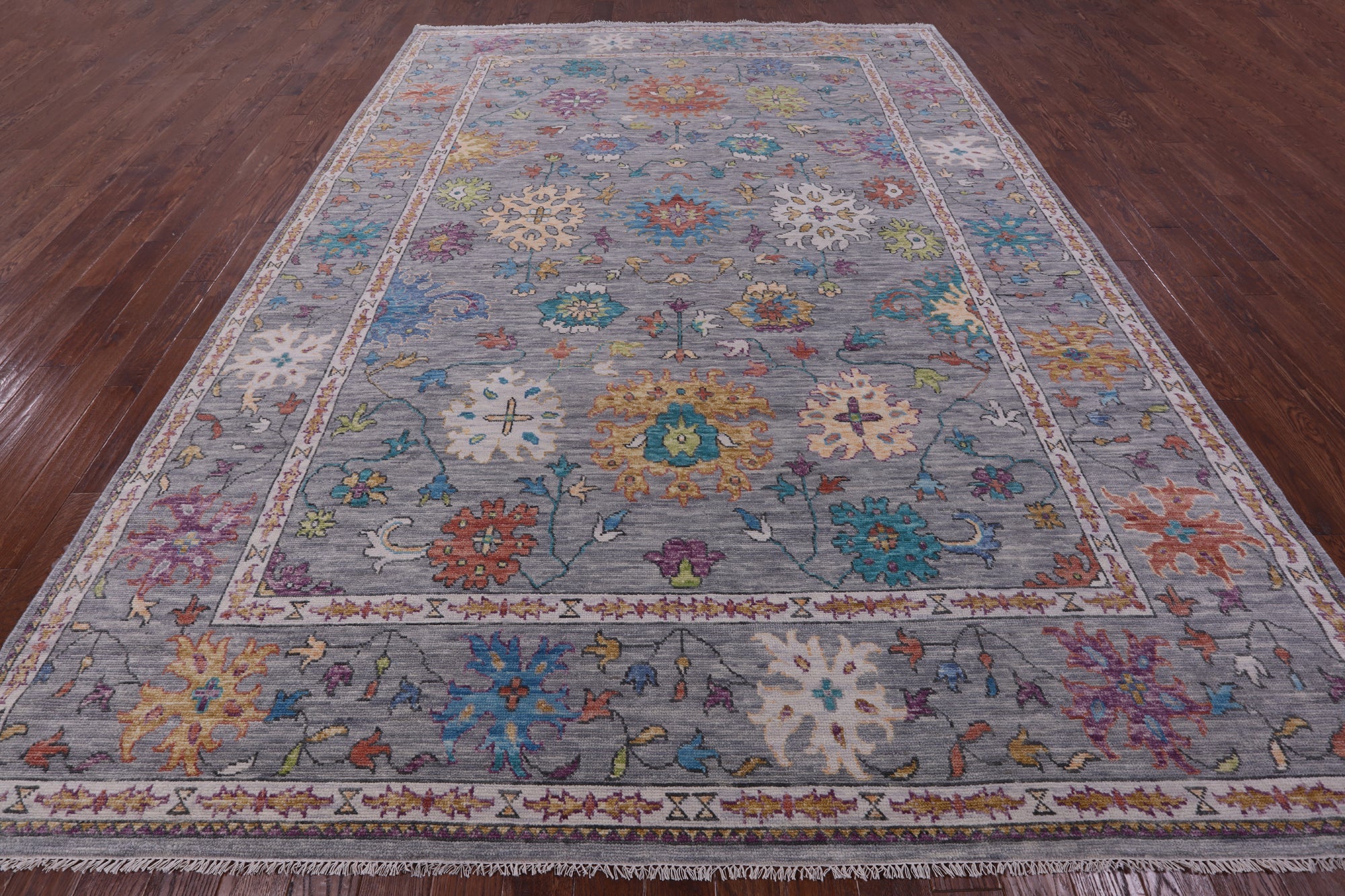 Grey 10' 2" X 13' 9" Turkish Angora Oushak Hand-Knotted Wool Rug - Q19926