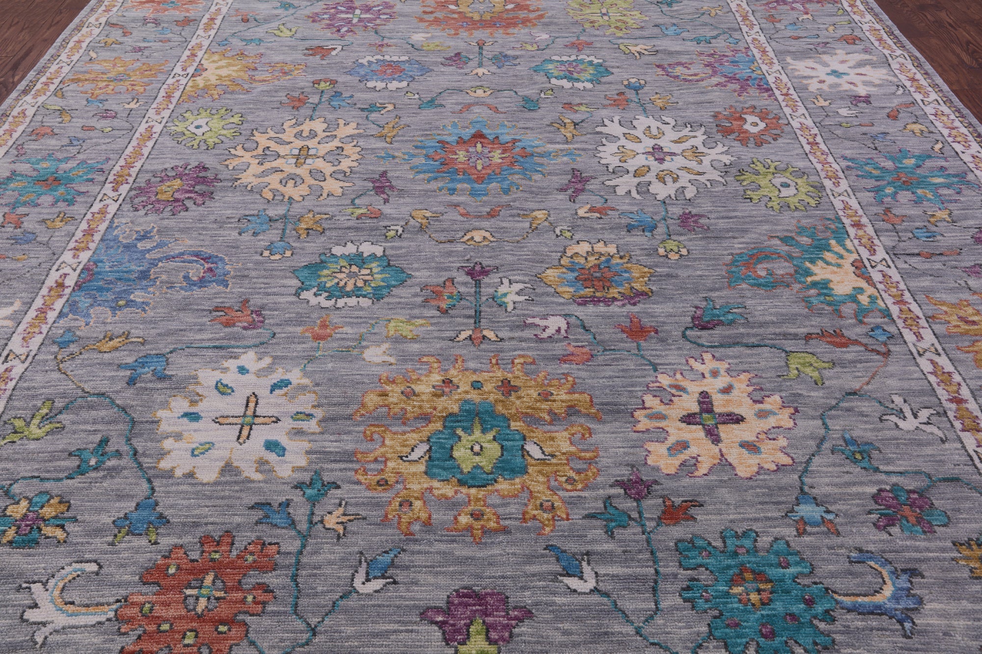 Grey 10' 2" X 13' 9" Turkish Angora Oushak Hand-Knotted Wool Rug - Q19926 is backordered and will ship as soon as it is back in stock.