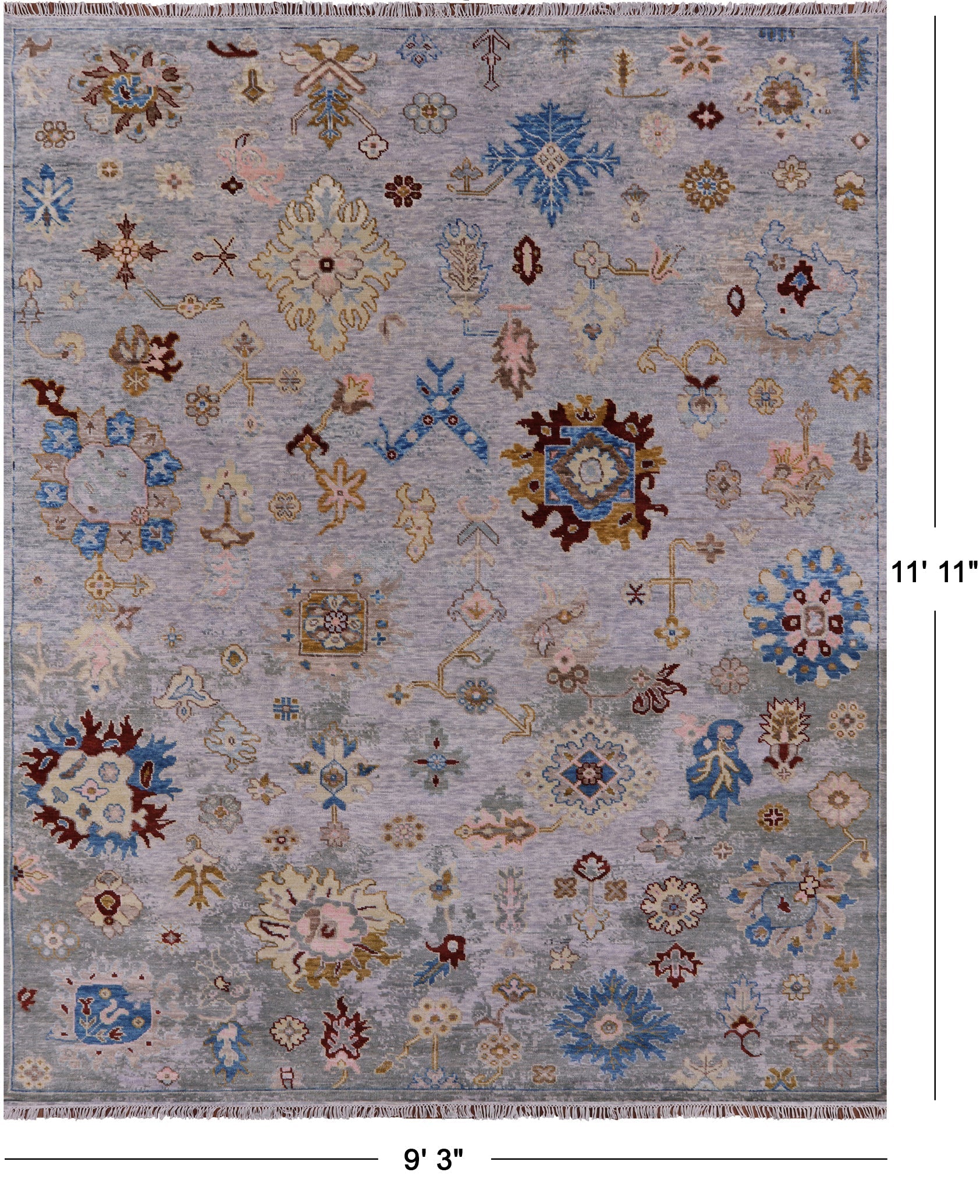 Grey Turkish Angora Oushak Handmade Wool Rug 9' 3" X 11' 11" - Q16130