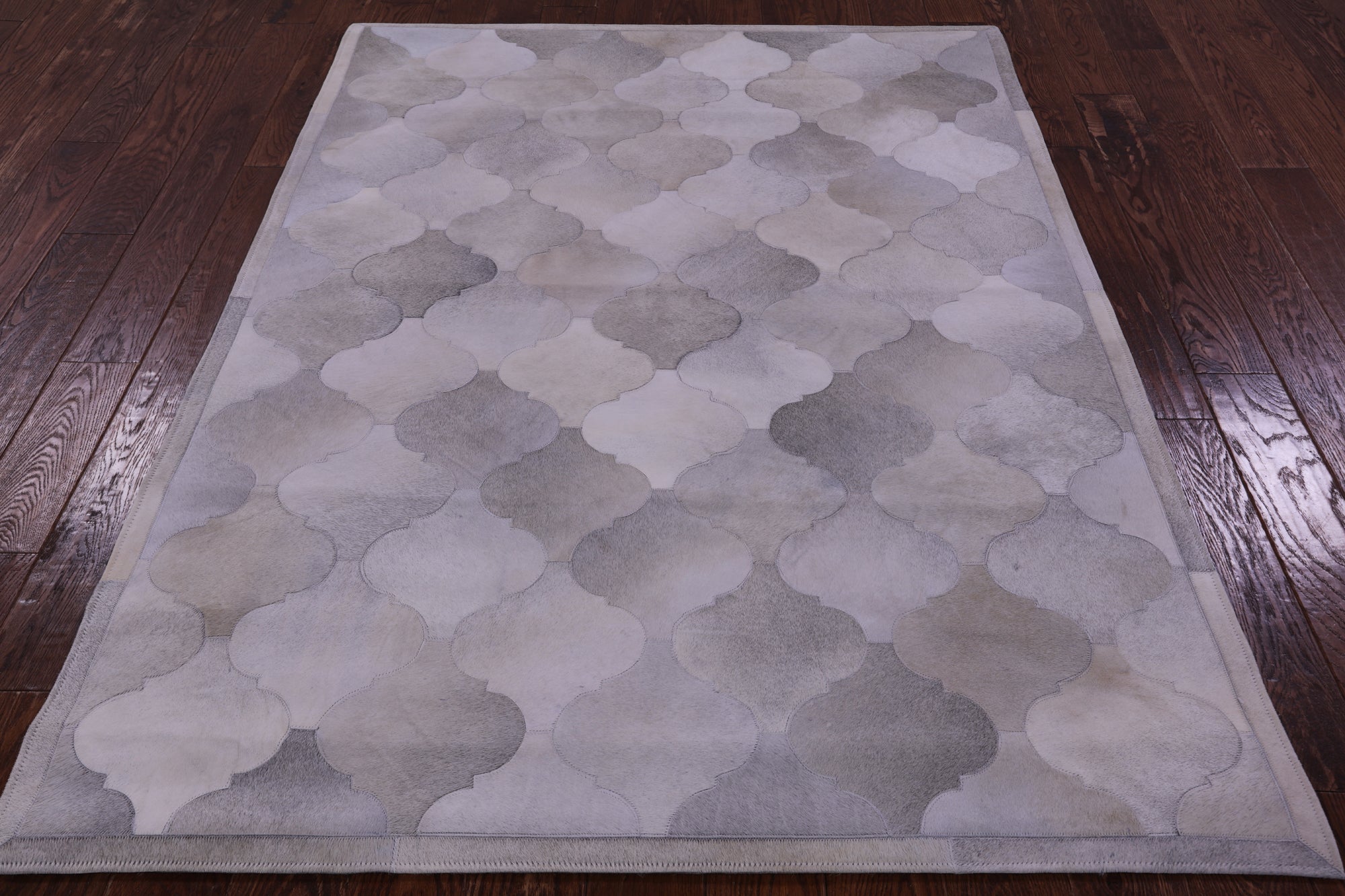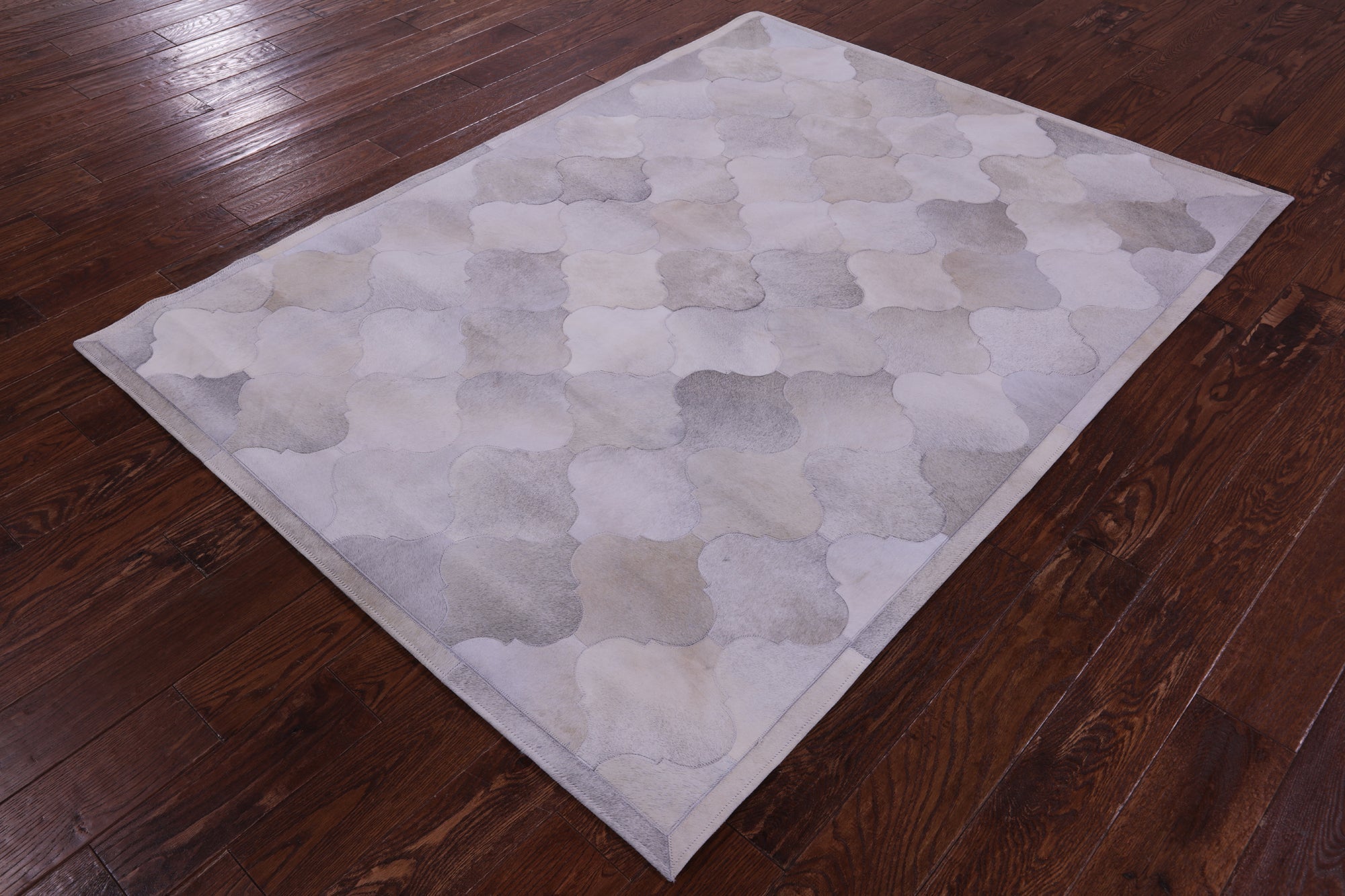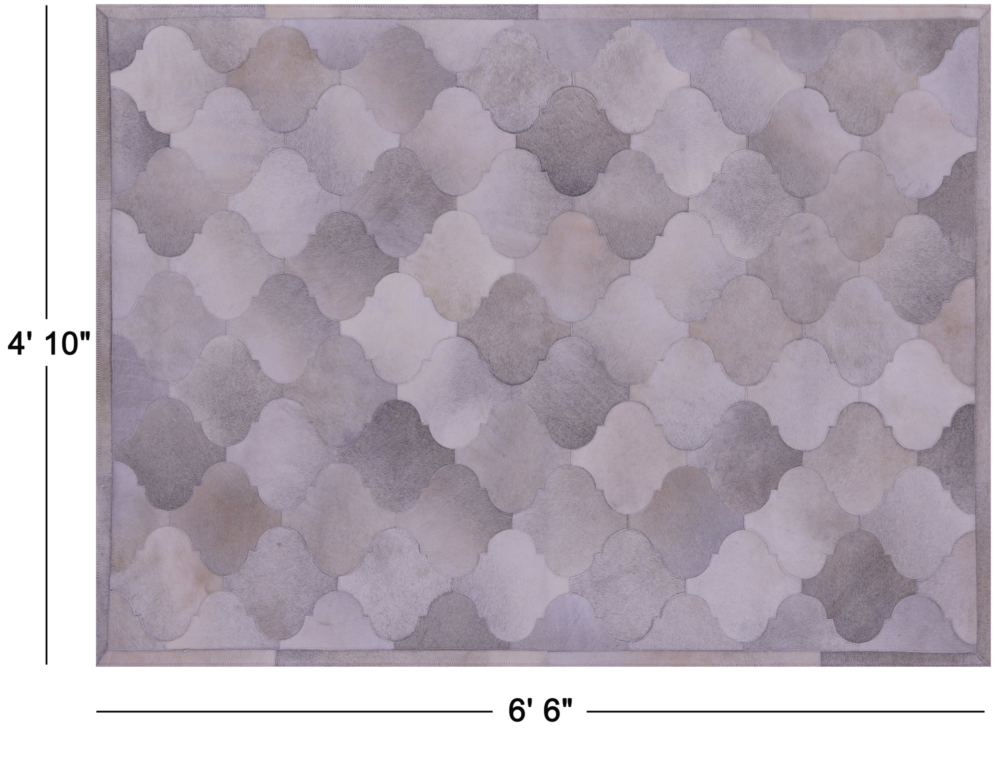 4' 10" X 6' 6" Grey & White Natural Cowhide Hand Stitched Rug - C3483