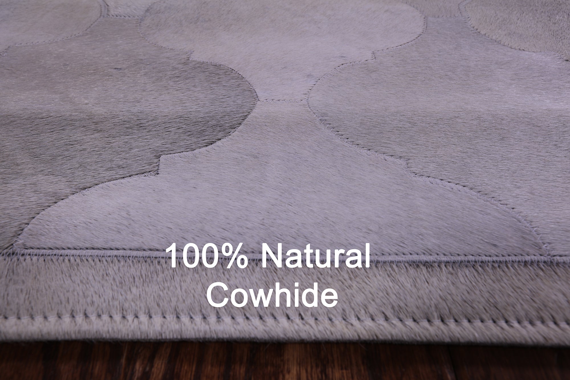 4' 10" X 6' 6" Grey & White Natural Cowhide Hand Stitched Rug - C3483 is backordered and will ship as soon as it is back in stock.
