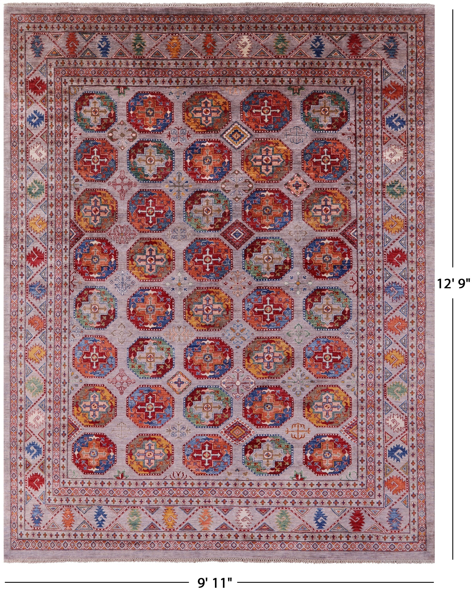 Hand-Knotted Bokhara Wool Rug 9' 11" X 12' 9" - Q7541