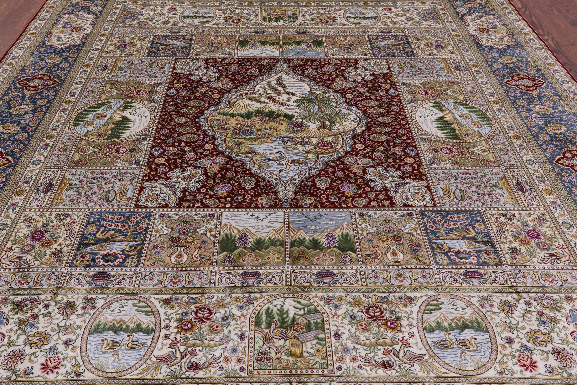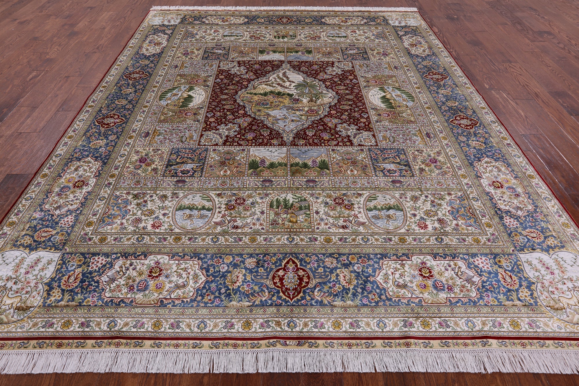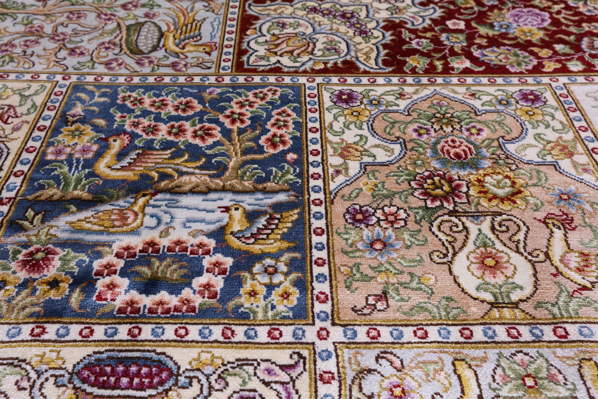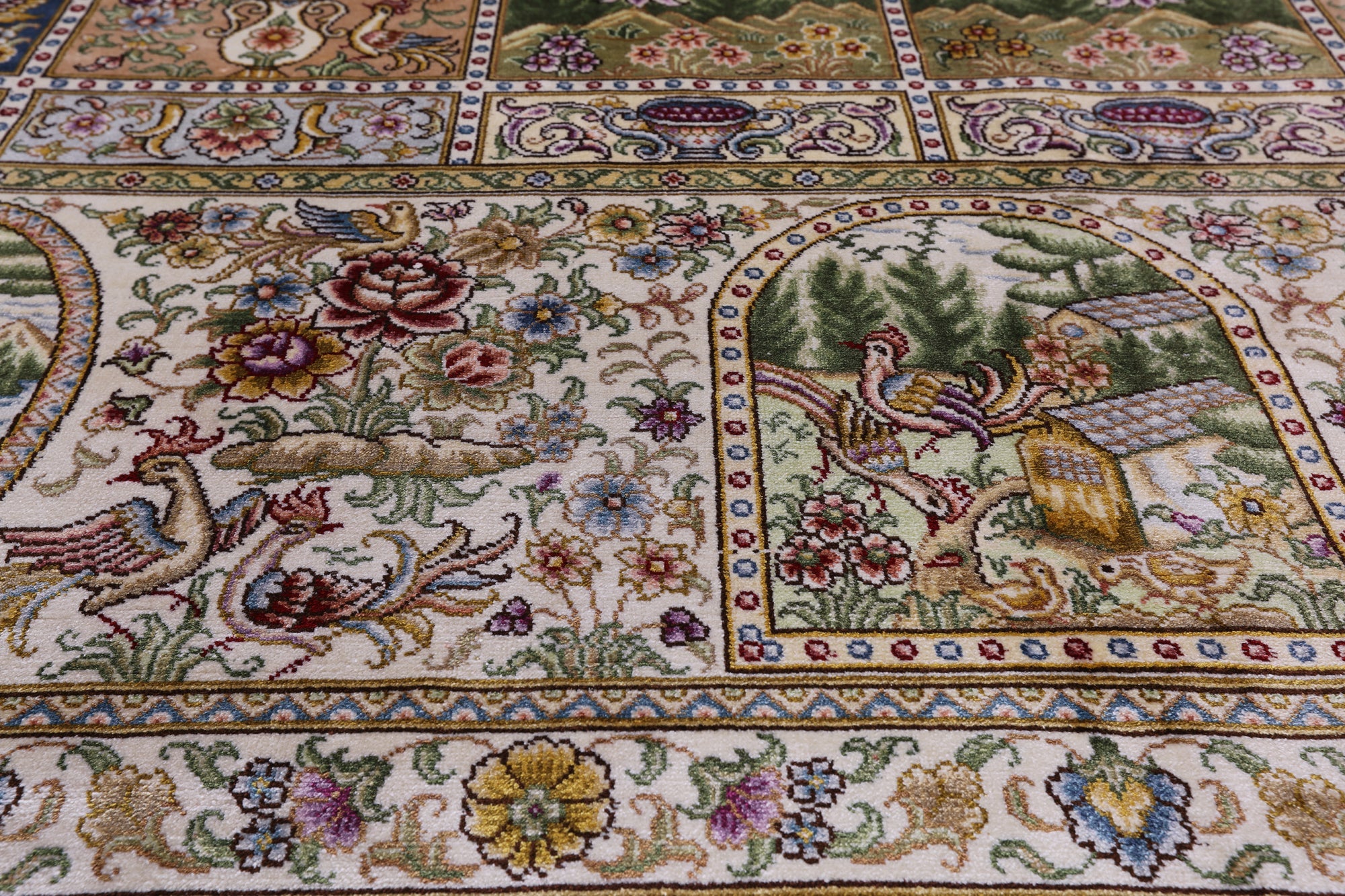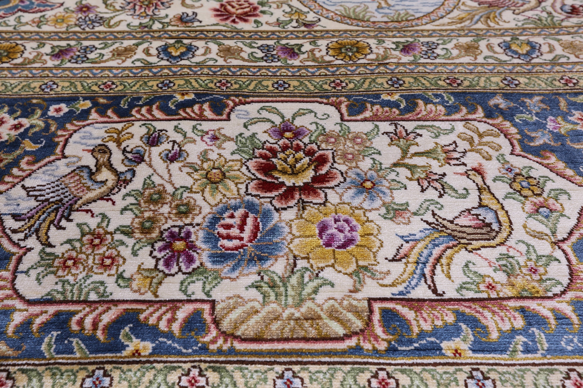 Silk Rugs are the most splendid, and often most valuable of all handmade rugs. The silk rug comes in variety of colors and sizes. Today silk rugs are made to be use in every day. All our rugs are very high quality and durable. This beautiful rugs are majestic from any angles you look at it.
